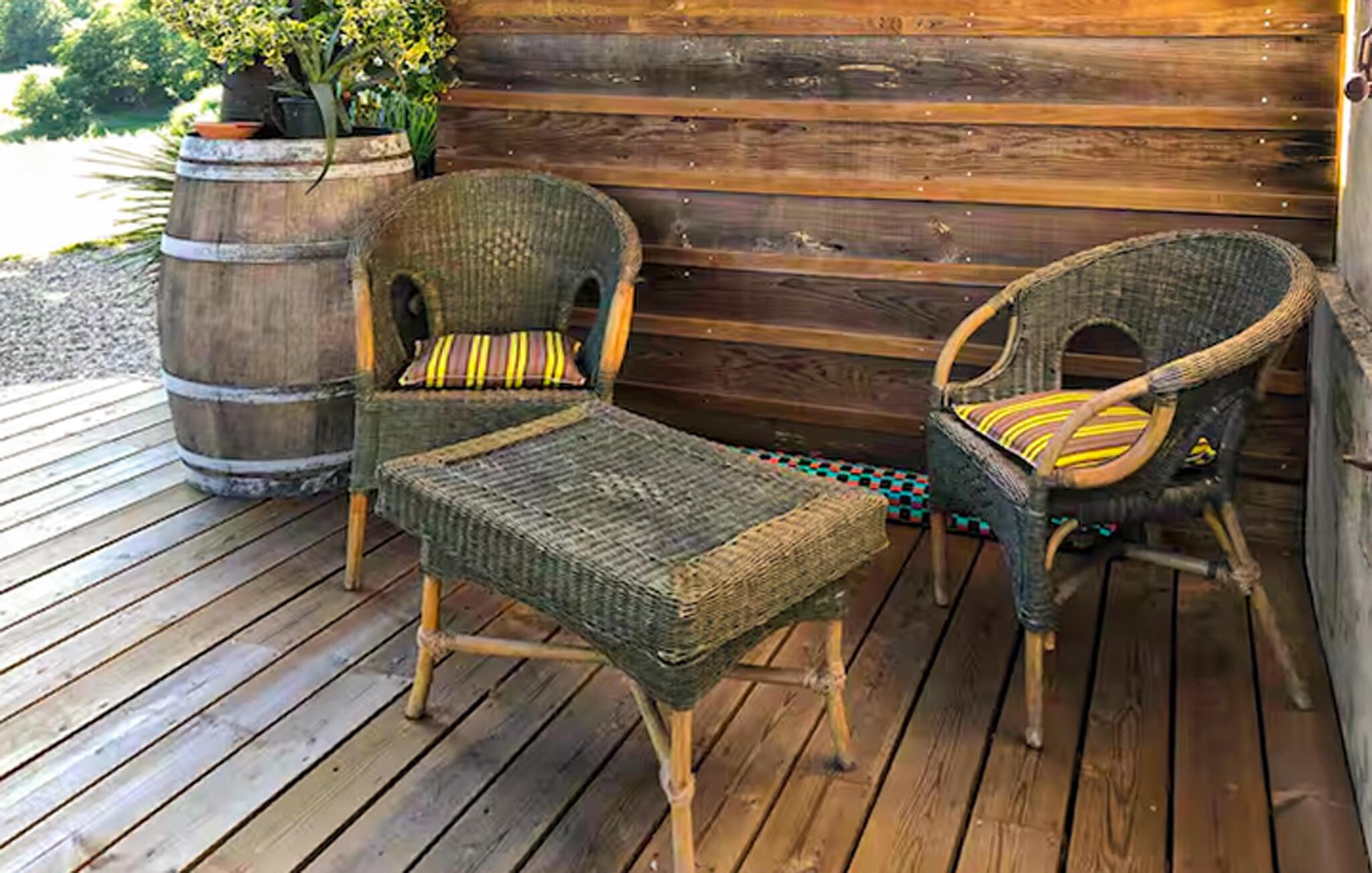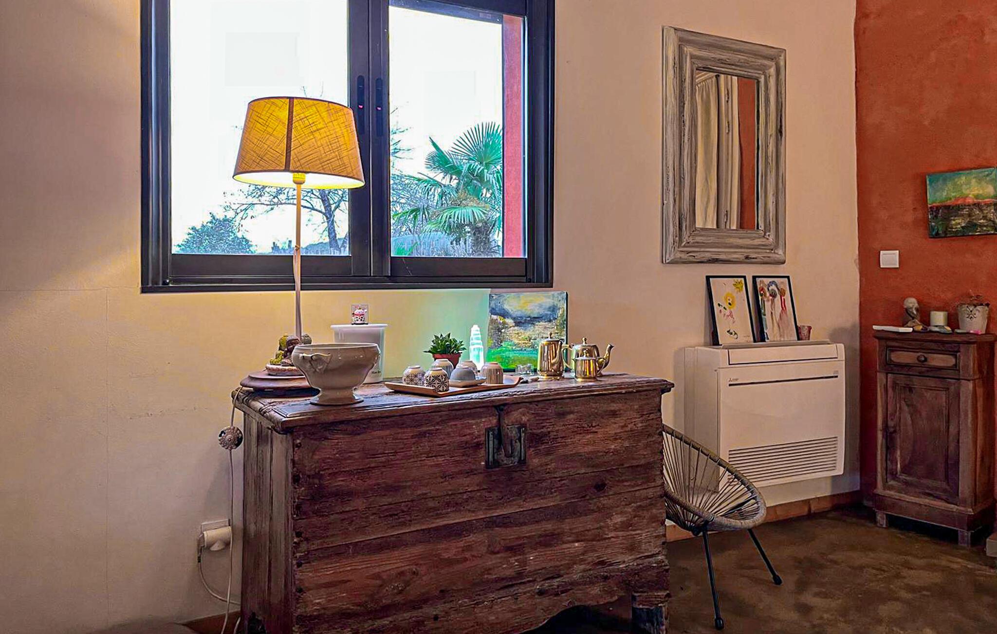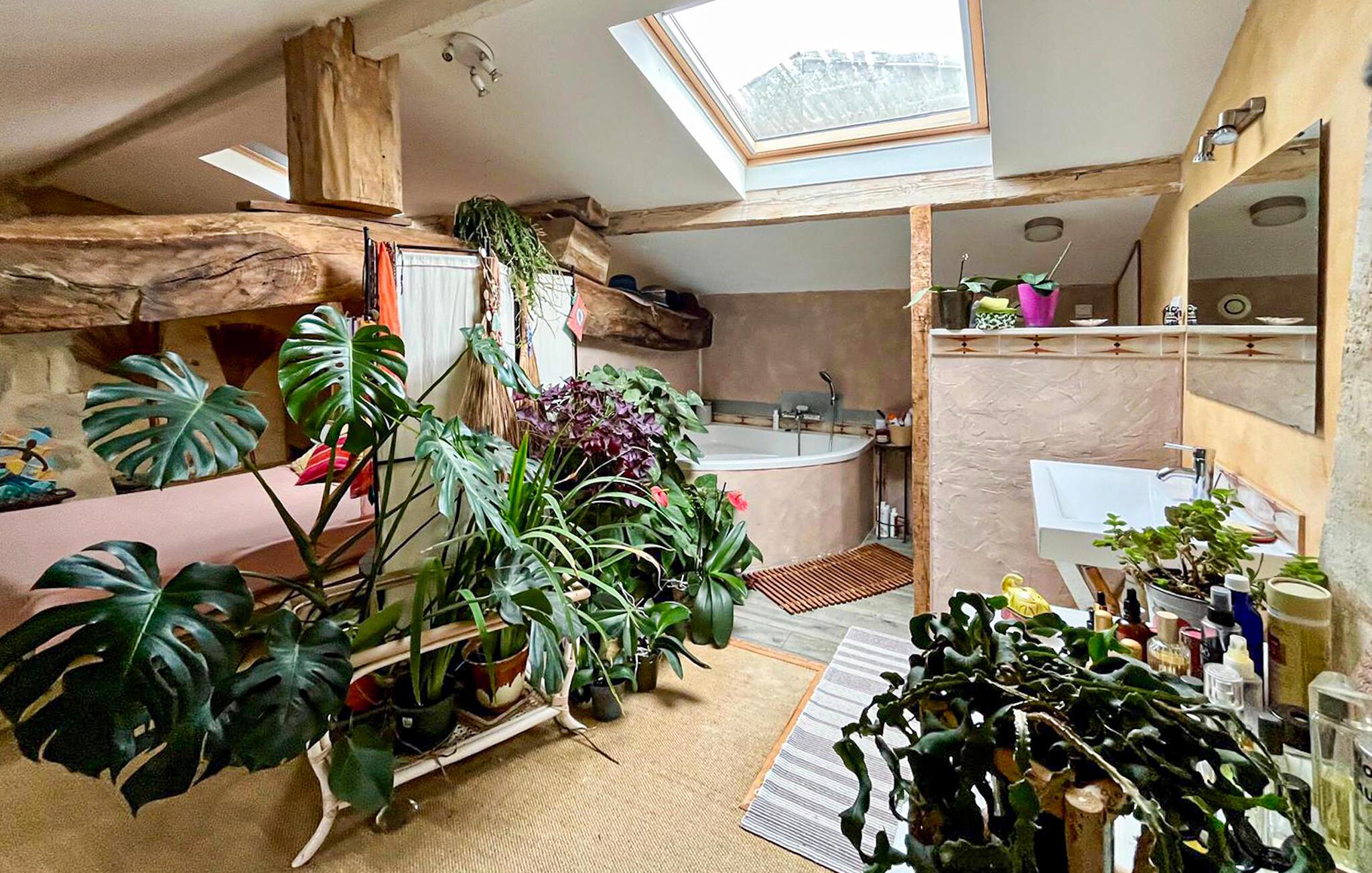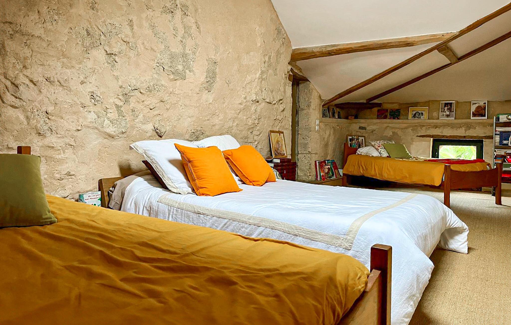 Dieses im Weinanbaugebiet Bordelais gelegene Haus verbindet historischen Charme und Komfort auf harmonische Weise. Natursteinwände, Holzbalken und ein imposanter Kamin schaffen eine Atmosphäre, die behaglich und gediegen zugleich ist. Entspannen Sie sich auf dem bequemen Sofa bei einem guten Glas Wein, hören Sie Ihre Lieblingsmusik oder folgen Sie einem spannenden Podcast. In der praktischen Küche können Sie neue Rezepte ausprobieren und gemeinsam am rustikalen Tisch essen.