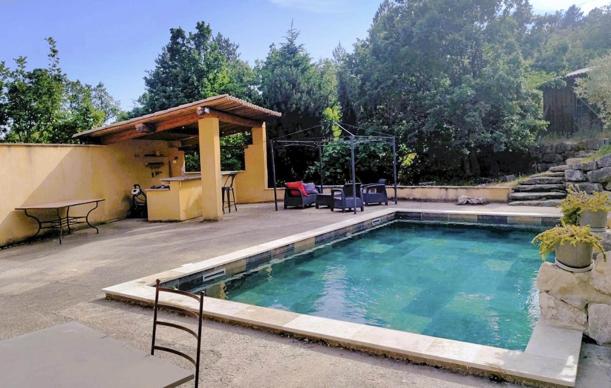 Genießen Sie erholsame Tage in diesem charmanten Ferienhaus mit Pool in idyllischer Lage.