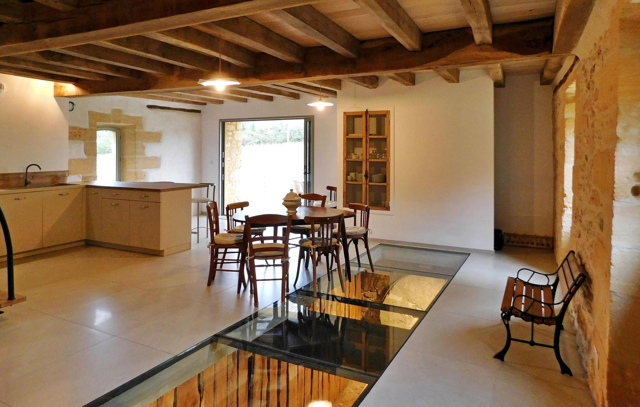 Diese kürzlich restaurierte ehemalige Mühle im Herzen der Natur in der Dordogne versprüht den Charme des Périgord mit erhaltenen Elementen wie freiliegenden Balken, einem Steinkamin und Mauern. Im Erdgeschoss befindet sich ein offener Wohnbereich mit Sitzecke, Essbereich, Küche und einem WC mit Wäschemöglichkeiten. Die erste Etage bietet klimatisierte Schlafzimmer, jedes mit eigenem Bad. Draußen gibt es einen Swimmingpool, eine Terrasse mit Sitzgelegenheiten und eine Steintreppe für den Zugang zum Haus. Bitte beachten Sie: Die Unterkunft teilt sich das Grundstück mit einer weiteren Ferienwohnung, die ebenfalls über einen privaten Pool verfügt und etwa 10 m entfernt liegt. Die Privatsphäre zwischen den beiden Mietobjekten bleibt jedoch gewahrt, da sie so positioniert sind, dass Diskretion gewährleistet ist und für jedes ein separater Parkplatz und Zugang vorhanden ist. Alle Geschäfte ca. 2,5 km entfernt im mittelalterlichen Dorf Monpazier.