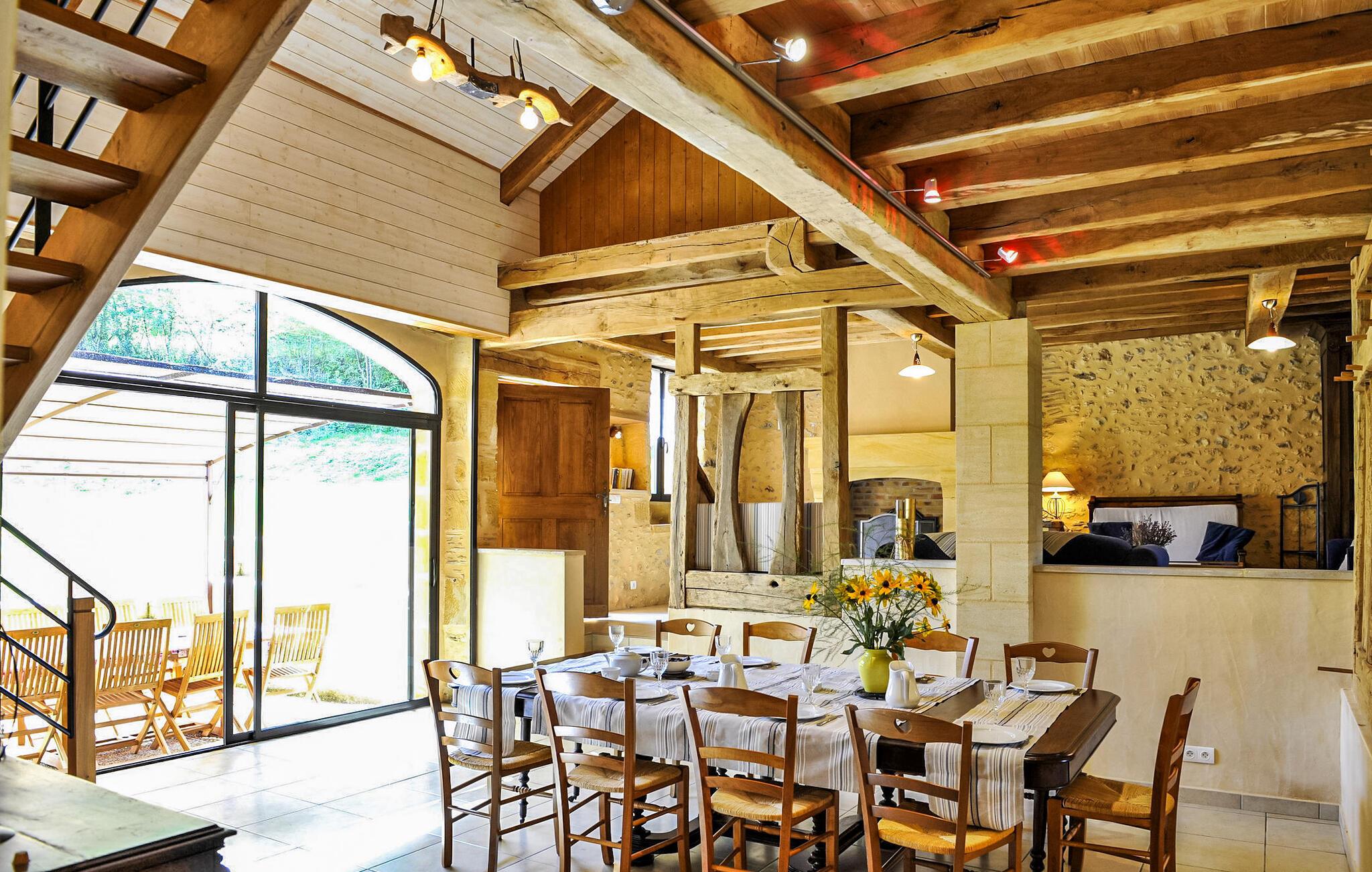 Im Herzen der Dordogne, in der Nähe von Monpazier, begrüßt Sie dieses Ferienhaus mit einem privaten Pool und einem kinderfreundlichen Garten mit Spielplatz. Dieses charmante Cottage bietet ein geschmackvoll gestaltetes Interieur mit einem geräumigen Wohnbereich mit Blick auf die Terrasse und den Pool. Im Erdgeschoss befindet sich ein barrierefreies Schlafzimmer mit eigenem Duschbad. Alle übrigen Schlafzimmer befinden sich im ersten Stock. Zu den Außenanlagen gehören ein ein Hektar großes Grundstück mit Feldern und Wäldern, Wanderwegen und einem Kinderspielplatz mit Trampolin, Schaukel und Tischtennis. Die gepflasterte Terrasse mit Pergola bietet einen entspannenden Raum mit Grill und Möbeln aus exotischem Holz. Der private, durch eine Alarmanlage gesicherte Pool misst 10 x 5 m und liegt nur 10 m vom Haus entfernt. Bitte beachten Sie, dass der Eigentümer auf demselben Grundstück, ca. 10 m entfernt, eine zweite Ferienunterkunft hat, ebenfalls mit privatem Pool. Beide Mietobjekte sind strategisch so positioniert, dass die Privatsphäre gewahrt bleibt, da es keinen Zaun zwischen ihnen gibt, und ihre Ausrichtung bewahrt die abgeschiedene Atmosphäre. Jede Vermietung verfügt über einen privaten Parkplatz und Zugang. Das Haus liegt +/- 2,5 km von Monpazier mit allen Geschäften (Bäckerei, Lebensmittelgeschäft, Restaurants) entfernt. Genießen Sie Ihren Urlaub in einem Haus, Ihrer Ferienwohnung, in der Dordogne im Quercy - Périgord.