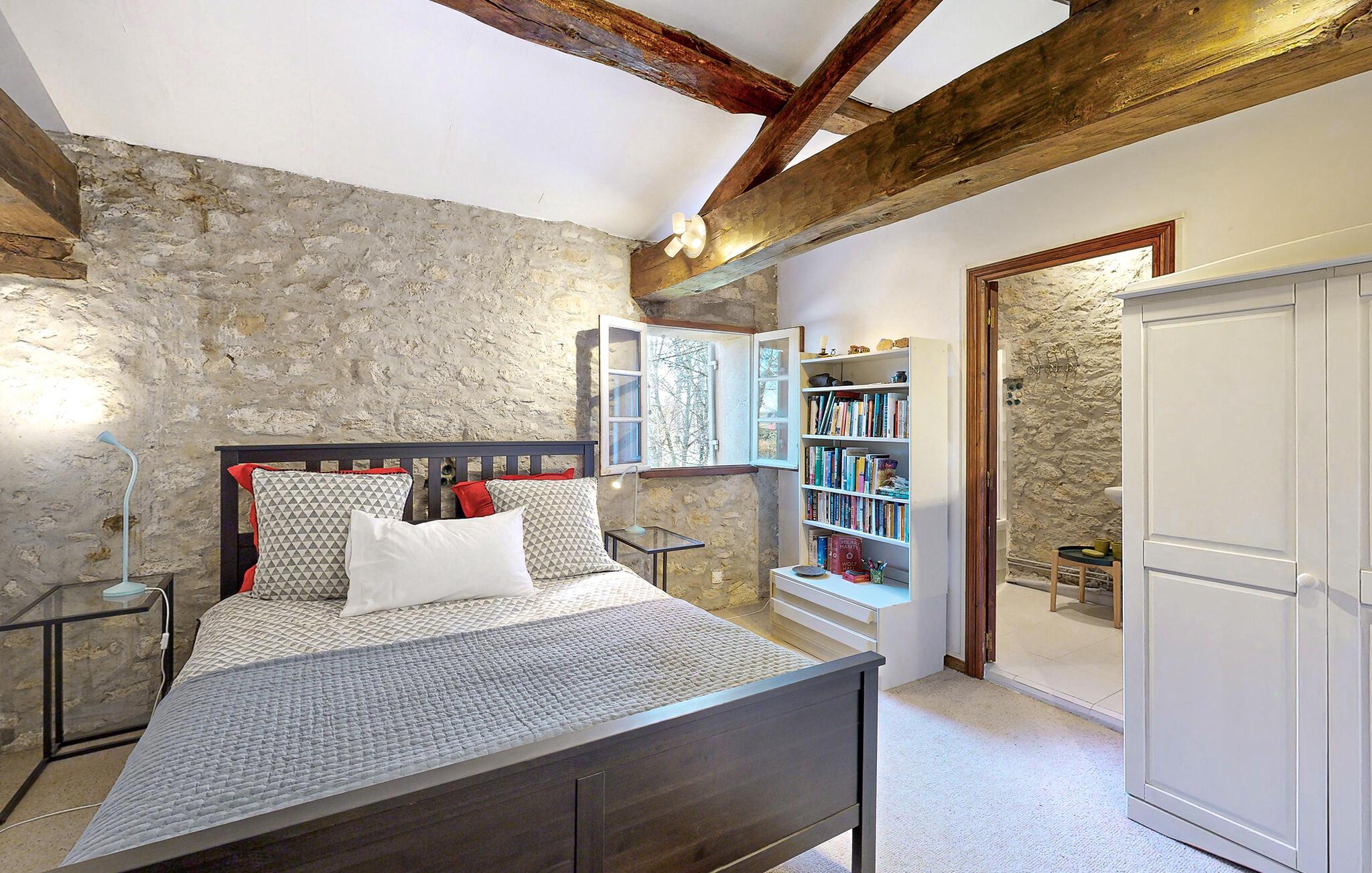 In einem ruhigen Weiler gelegen, ist dieses geschmackvoll renovierte Bauernhaus aus dem 18. Jahrhundert mit seinen Holzbalken und Steinmauern voller Charme. Das Haus ist eingebettet in einen gepflegten Garten mit Obstbäumen und alten Hecken. Auch im Inneren bietet das Haus genügend Platz für die ganze Familie, massive Eichensparren im ganzen Haus, gewölbte Decken und freiliegendes Mauerwerk sorgen für eine gemütliche Atmosphäre am Kamin.