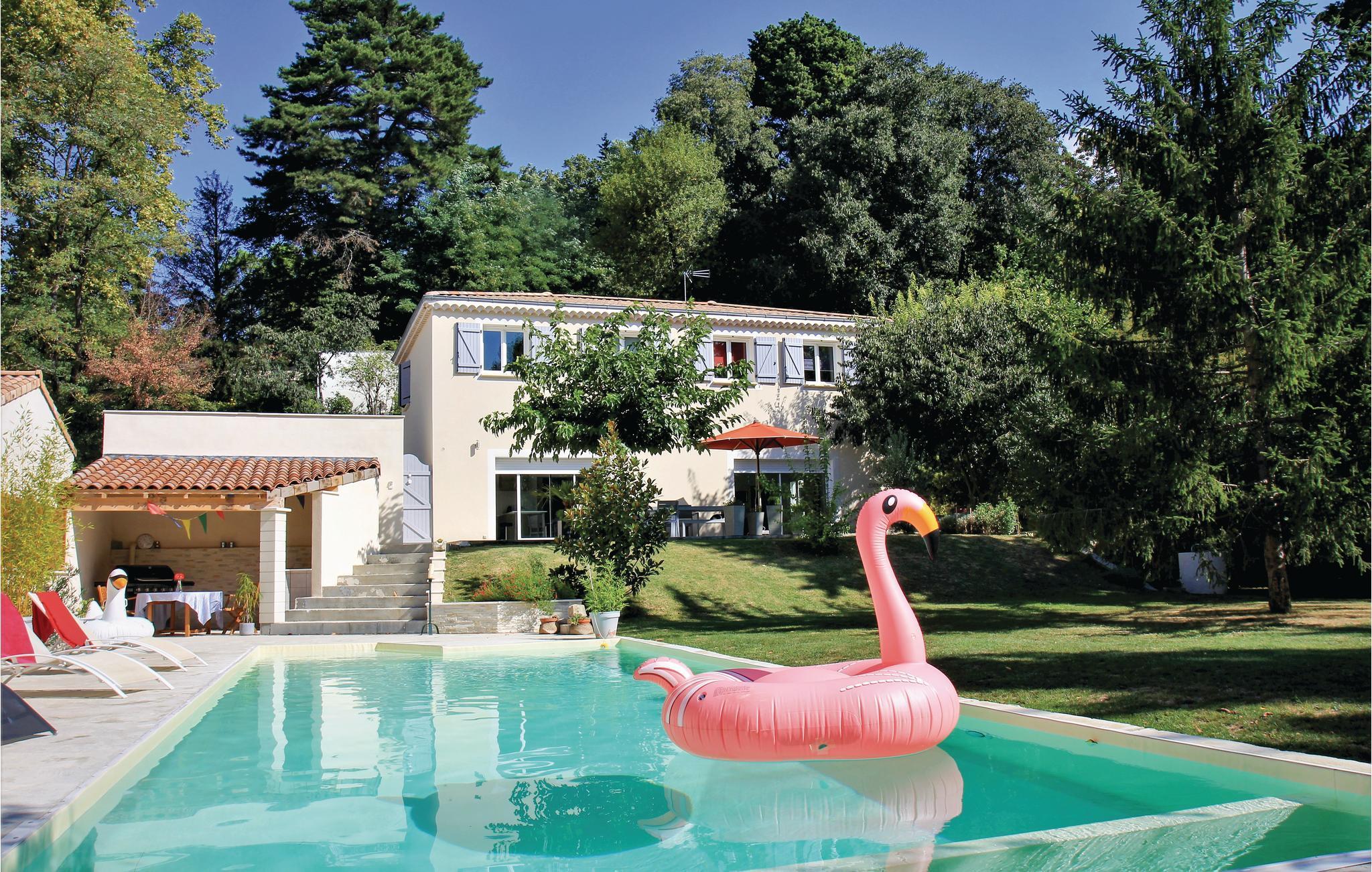 Dieses Poolhaus im provenzalischen und zeitgenössischen Stil zugleich befindet sich in Montélimar, wo es seinen Gästen einen unvergesslichen Urlaub in der sonnigen Drôme verspricht. Das ländlich und ruhig gelegene Ferienhaus steht auf einem 1.700 m² großen Gartengrundstück mit Spielplatz, Tischtennisplatte und einer weitläufigen, komfortabel möblierten Terrasse. Jahrhundertealte Bäume werfen einen Schatten, in dem es sich in den heißen Sommermonaten angenehm entspannen lässt. Drinnen erwartet Sie ein helles und gemütliches Wohnambiente, das Ihnen sofort das lang ersehnte Urlaubsgefühl vermittelt. Reversible Wärmepumpe (Kühlung im Sommer).