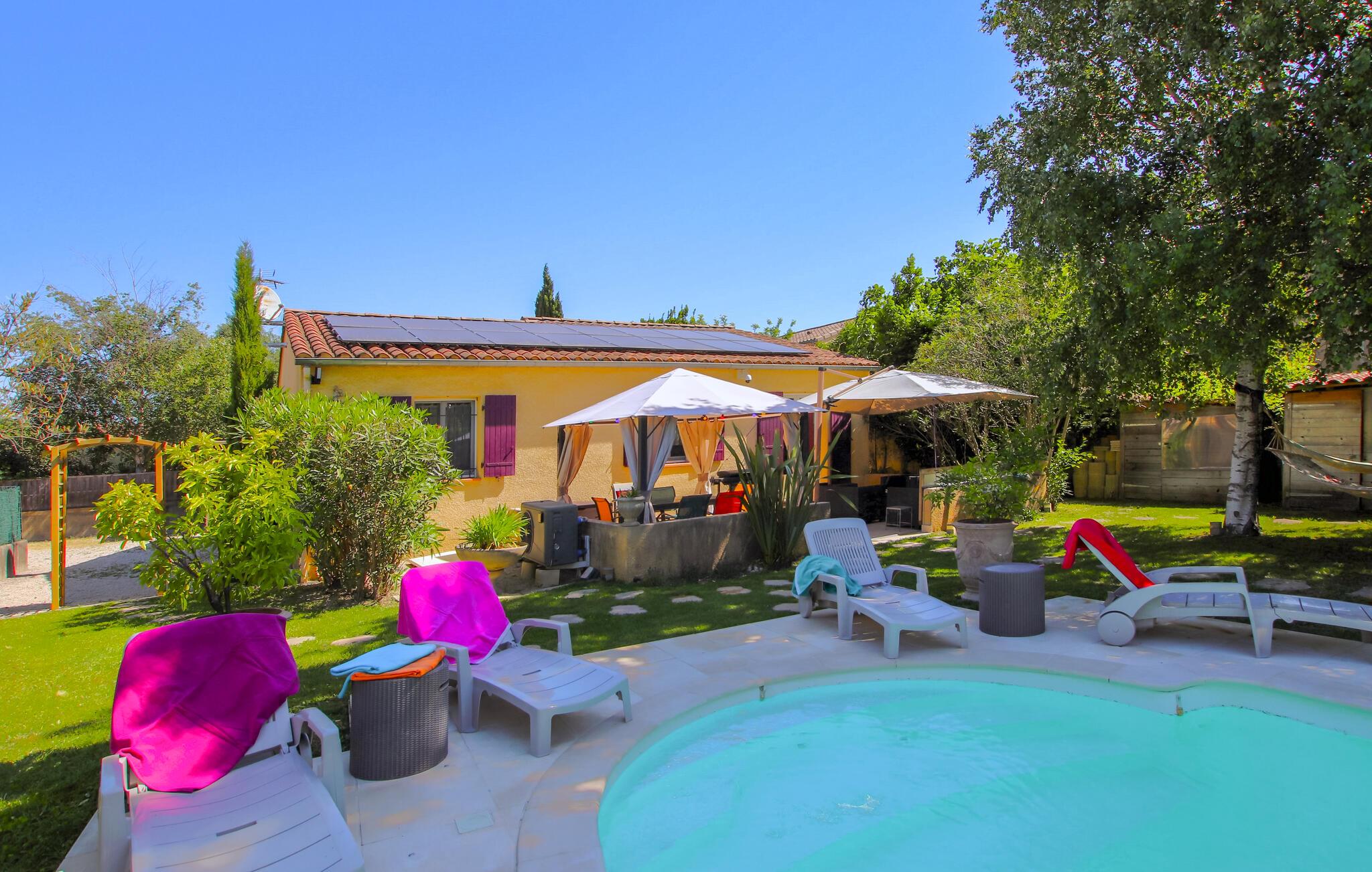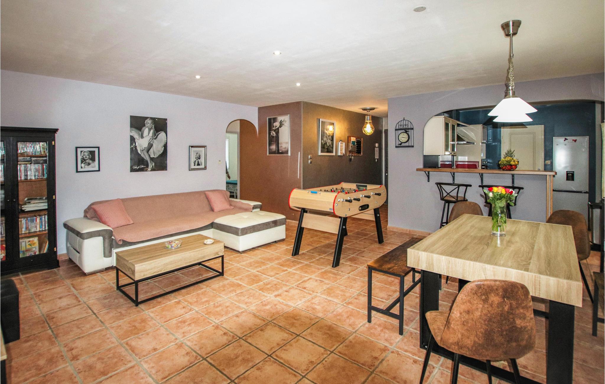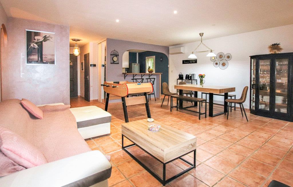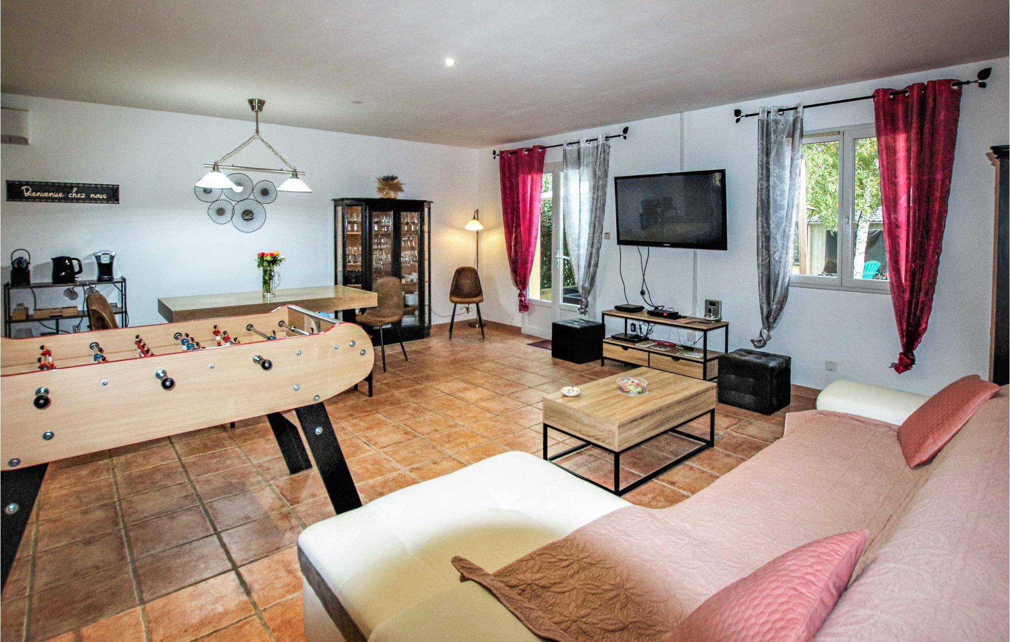 Im Süden der Drôme Provençale begrüßt Sie in Montélimar dieses tolle Ferienhaus. Im Innenraum erwarten Sie geräumige, helle Zimmer, die ein komfortables und warmes Interieur mit Details im neo-provenzalischen Stil bieten. Profitieren Sie von der modernen Austattung, verbringen Sie gesellige Stunden mit Ihren Liebsten im Wohnzimmer und vergnügen Sie sich bei einer Runde Tischfußball.