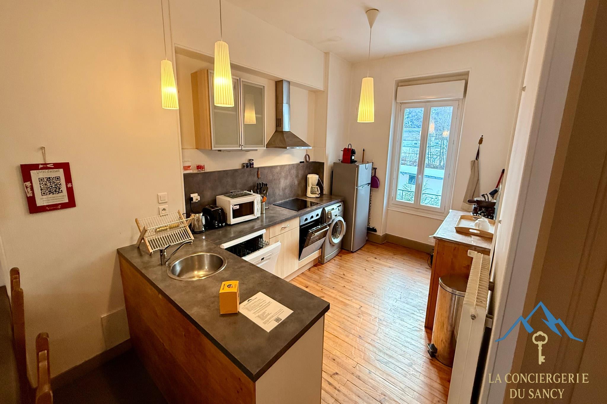 Dieses einladende Apartment in Mont-Dore ist ideal für Familien oder kleine Gruppen und bietet bequem Platz für bis zu sechs Gäste in einer praktischen und malerischen Alpenumgebung. Es liegt nur wenige Schritte vom Stadtzentrum entfernt und ist ein entspannter Ausgangspunkt für Besucher, die sowohl Outdoor-Abenteuer als auch alltäglichen Komfort im Herzen des Massif du Sancy suchen. Im Inneren verfügt das Apartment über zwei gut ausgestattete Schlafzimmer mit einem Queensize-Bett und zwei Einzelbetten sowie ein zusätzliches Schlafsofa im Wohnbereich, das sich für Gruppenaufenthalte eignet. Der helle Wohnbereich bietet eine gemütliche Sitzecke und einen Fernseher für entspannte Abende zu Hause. Die voll ausgestattete Küche verfügt über einen Kühlschrank, einen Herd, einen Backofen, eine Mikrowelle, einen Geschirrspüler, einen Toaster sowie eine Nespresso- und eine Filterkaffeemaschine, sodass Sie während Ihres Aufenthalts ganz einfach Mahlzeiten zubereiten können. Eine Waschmaschine sorgt für mehr Komfort bei längeren Aufenthalten, während das Badezimmer mit Dusche den täglichen Komfort unterstützt. Kostenloses WLAN ist ebenfalls verfügbar. Die Gäste können einen kleinen privaten Balkon mit Blick auf die umliegenden Berge und den Fluss sowie Zugang zu einem gemeinsamen Garten innerhalb der Residenz genießen. Gartenmöbel und ein Grill bieten den idealen Rahmen für entspannte Mahlzeiten oder ruhige Momente im Freien. Mit Geschäften, Thermalbädern und Verkehrsanbindungen in etwa 500 m Entfernung sowie Skipisten und Wanderwegen in unmittelbarer Nähe bietet diese Ferienwohnung das ganze Jahr über Möglichkeiten, Mont-Dore und seine natürliche Umgebung zu erkunden.