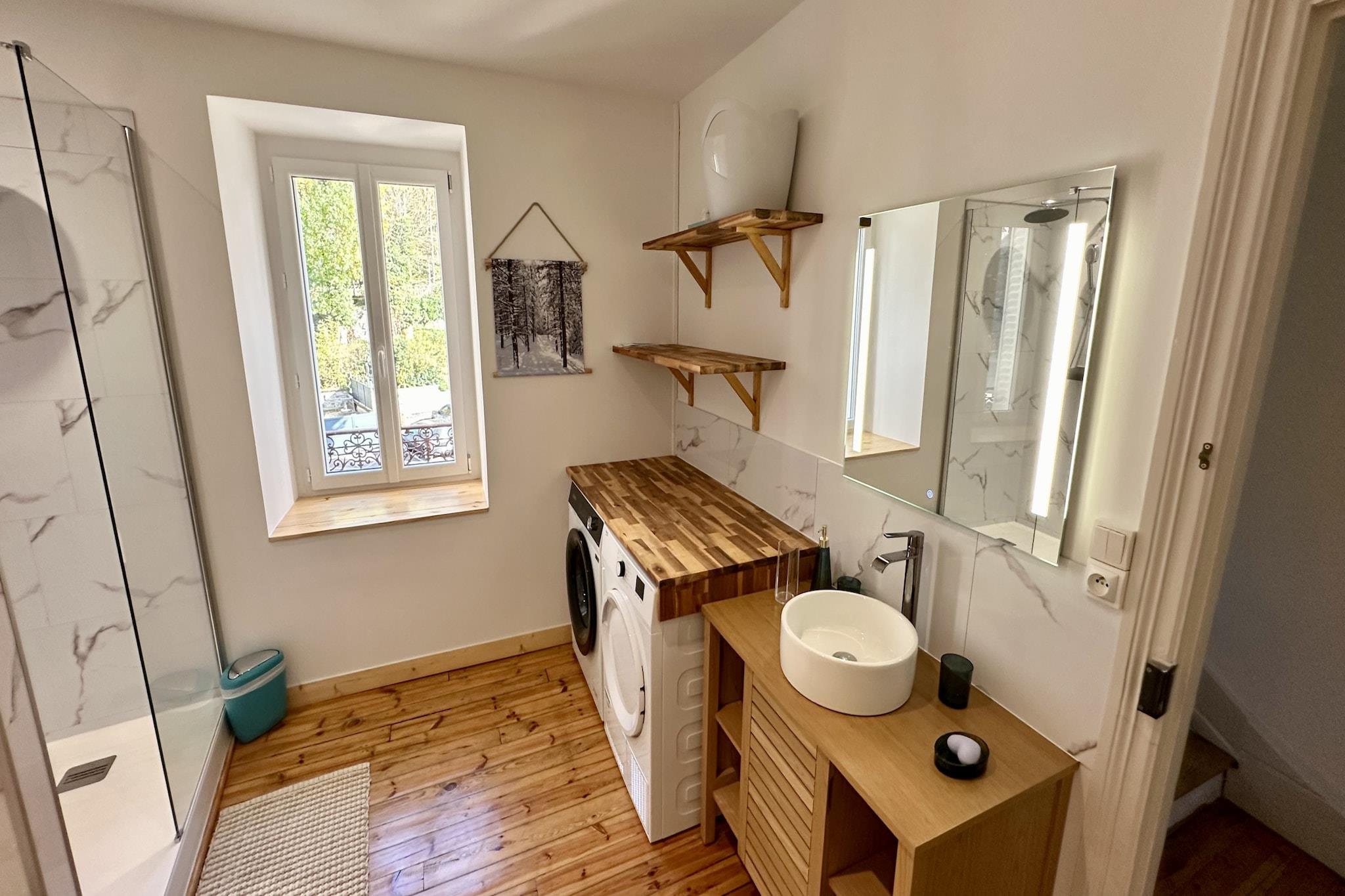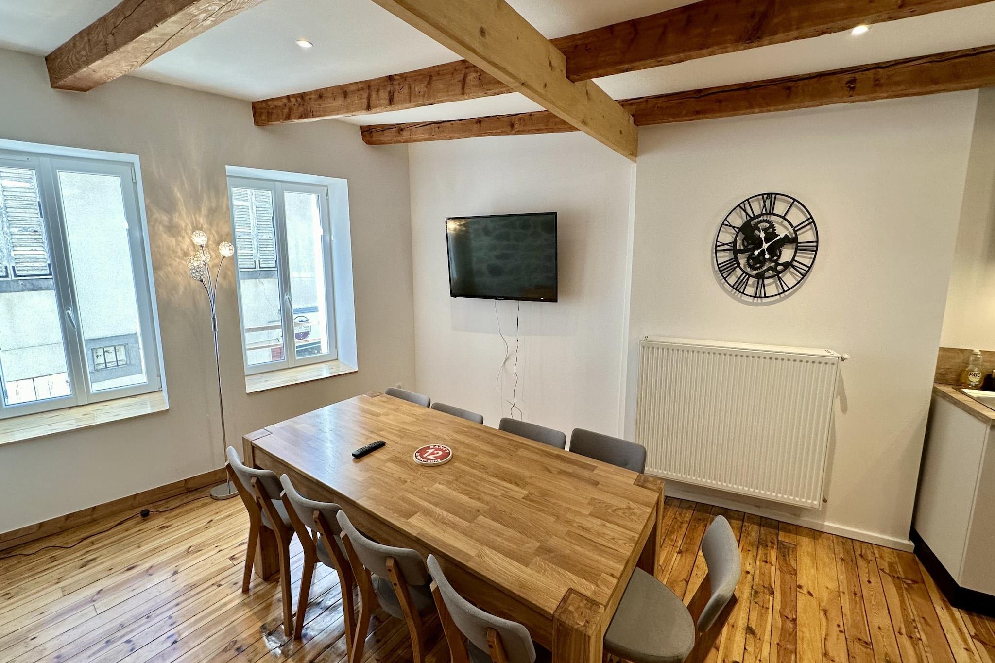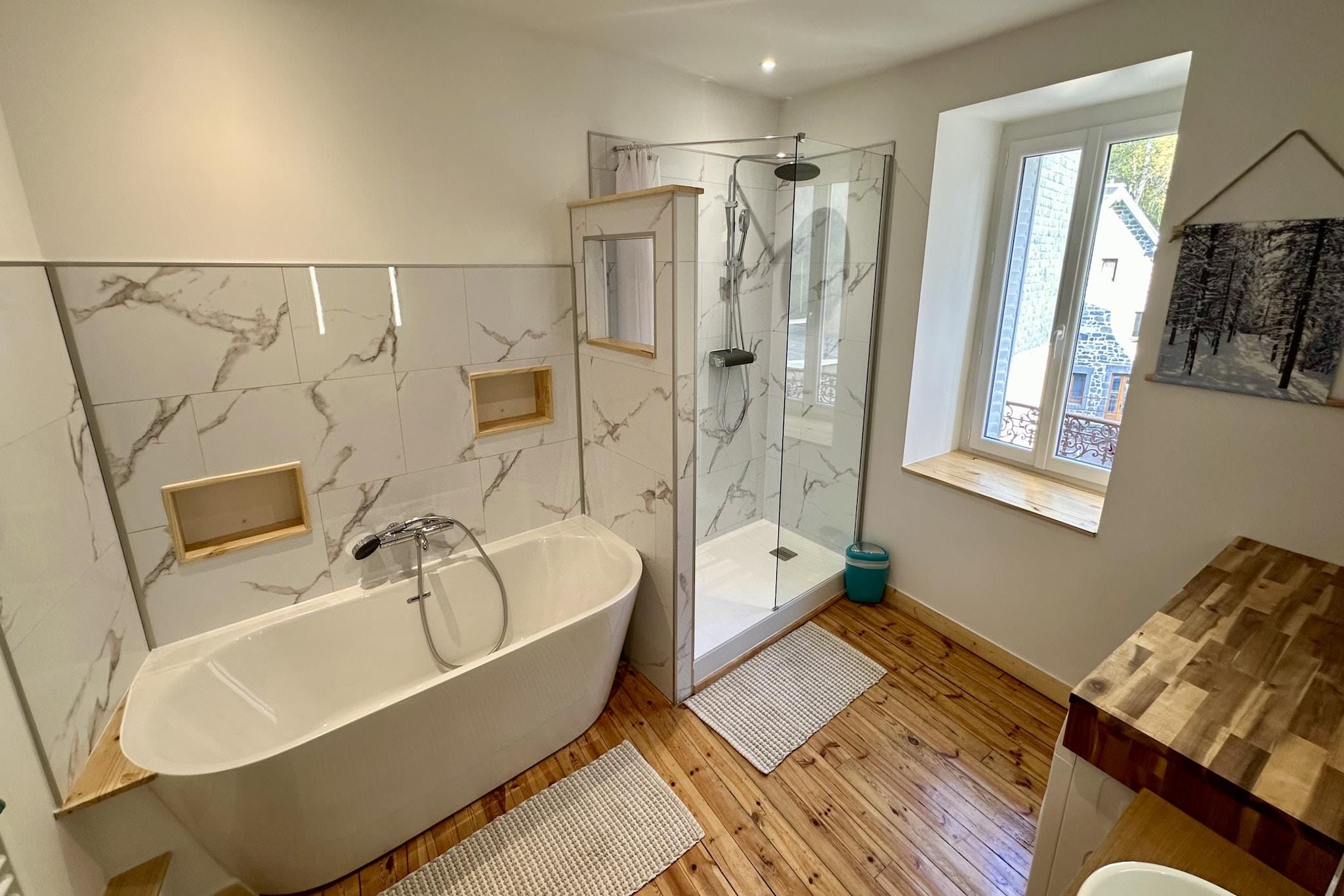 Erleben Sie das Leben in den Bergen in vollen Zügen in diesem 147 m² großen Haus – ein geräumiges und geschmackvoll eingerichtetes Refugium, ideal für große Familien oder Gruppen bis zu zehn Personen. Mitten im Herzen von Mont-Dore gelegen, bietet dieses Anwesen den seltenen Luxus großzügigen Raums mit fünf separaten Schlafzimmern und drei Badezimmern, darunter eines mit einer entspannenden Badewanne. Ob Familientreffen oder Skiurlaub mit mehreren Familien – das Haus bietet eine warme und gesellige Atmosphäre, in der jeder seinen Lieblingsplatz findet. Das Highlight des Hauses ist die riesige, 60 m² große Terrasse mit freiem Blick auf die Sancy-Berge. Ausgestattet mit Grill und bequemen Gartenmöbeln ist sie der perfekte Ort für ein sonniges Frühstück oder ein festliches Abendessen. Die moderne amerikanische Küche mit Induktionskochfeld und Geschirrspüler macht die Bewirtung einer großen Gruppe zum Kinderspiel. An modernen Annehmlichkeiten wie Highspeed-WLAN, zwei Fernseher, Waschmaschine und Trockner ist ebenfalls gedacht und sorgt für einen komfortablen und stressfreien Aufenthalt. Die Lage ist in La Fougère einfach unschlagbar; Sie wohnen nur 100 Meter von den Geschäften im Stadtzentrum und einen kurzen 500-Meter-Spaziergang von den berühmten Thermalbädern entfernt. Für Abenteuerlustige sind die Skipisten und der Golfplatz nur 3 km entfernt. Mit privaten Parkplätzen direkt am Haus und einer effizienten Wärmepumpe, die Sie zu jeder Jahreszeit behaglich warm hält, ist dieses Haus der ideale Ausgangspunkt, um die atemberaubenden Landschaften der Auvergne zu erkunden.