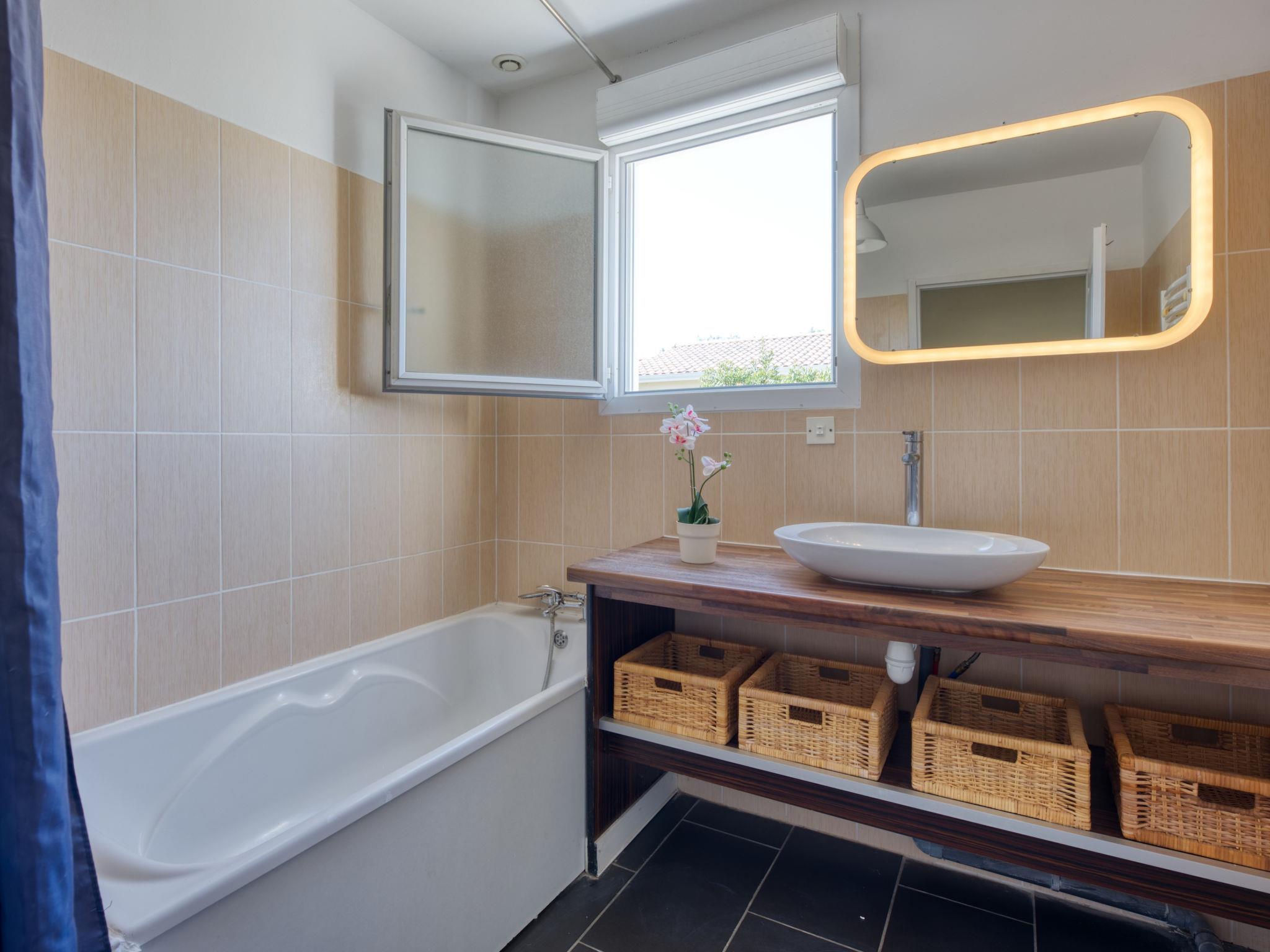 Villa "Nael". 1.5 km vom Zentrum von Montalivet-les-Bains, 18 km vom Zentrum von Soulac-sur-Mer, 21 km vom Zentrum von Lesparre-Médoc, in einem Wohnquartier, 800 m vom Meer. Zur Alleinbenutzung: Grundstück 800 m2 (eingezäunt), Schwimmbad beheizt (8 x 4 m, 150 cm tief, saisonale Verfügbarkeit: 01.Mai. - 30.Sep.). Boccia, Parkplatz beim Haus auf dem Grundstück. Einkaufsgeschäft 1.5 km, Bushaltestelle "Av. De l'Europe/Montalivet" 1.5 km, Sandstrand "Vensac-Océan" 800 m.