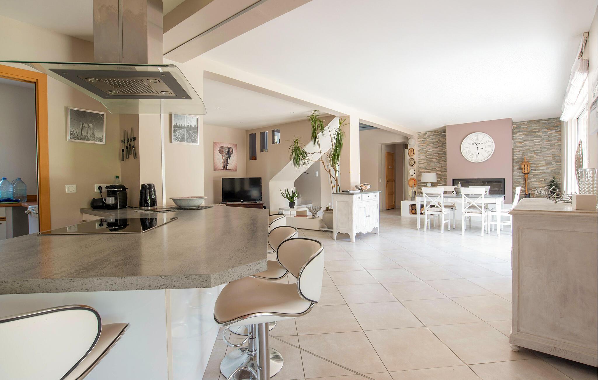Willkommen in diesem komfortabel und charmant eingerichteten Ferienhaus, das Sie mit viel Platz für gesellige Tage mit Freunden oder der Familie verwöhnt. Zaubern Sie gemeinsam köstliche Gerichte, plaudern Sie bei ausgedehnten Mahlzeiten und lassen Sie bei einem gemütlichen Abend auf der großen Sofalandschaft das Erlebte Revue passieren.
