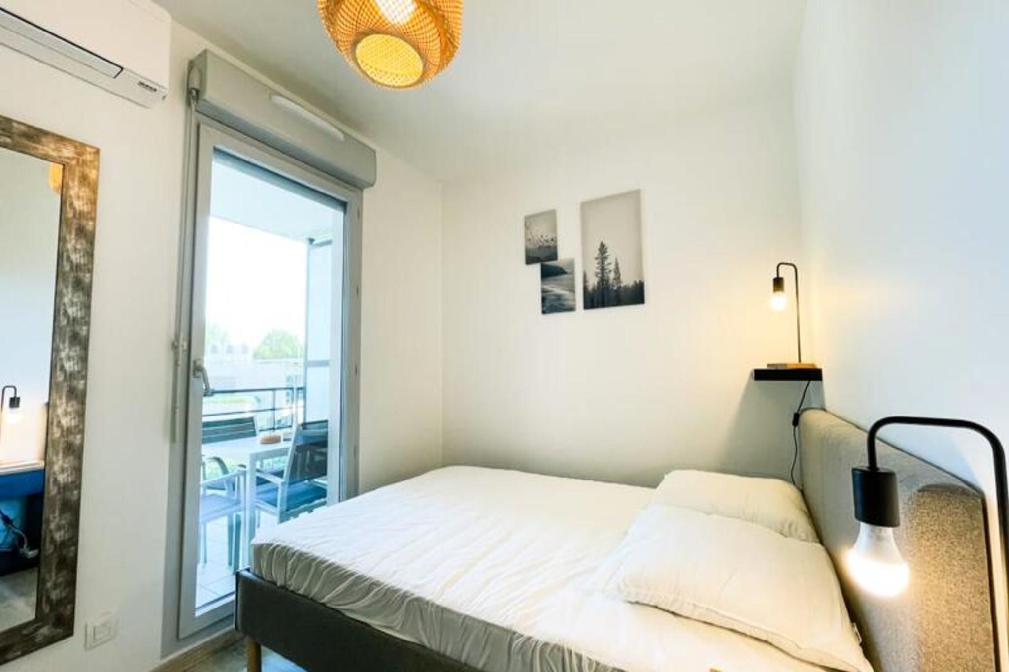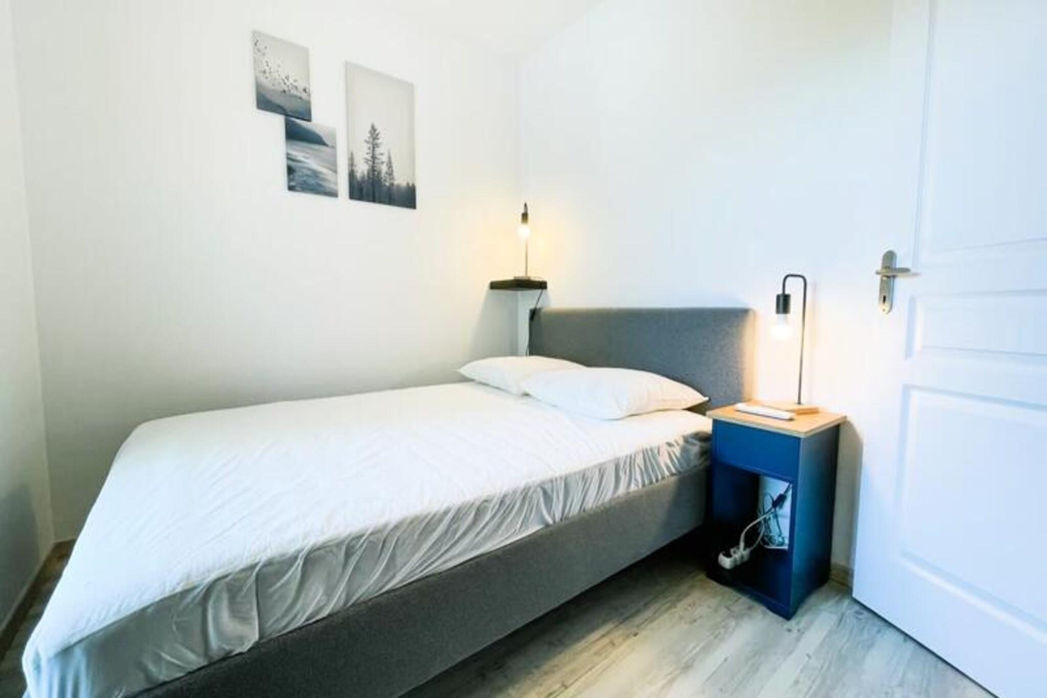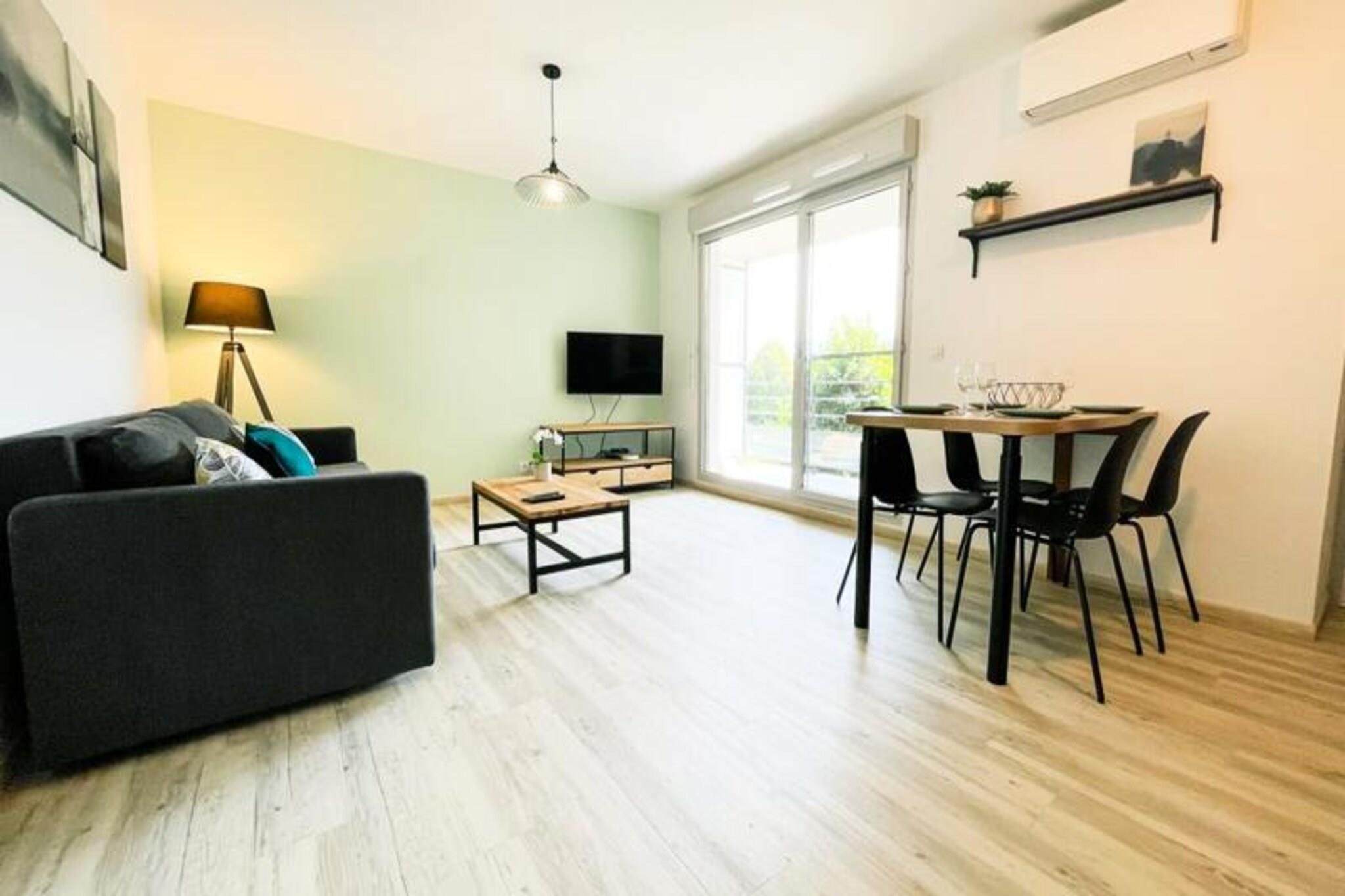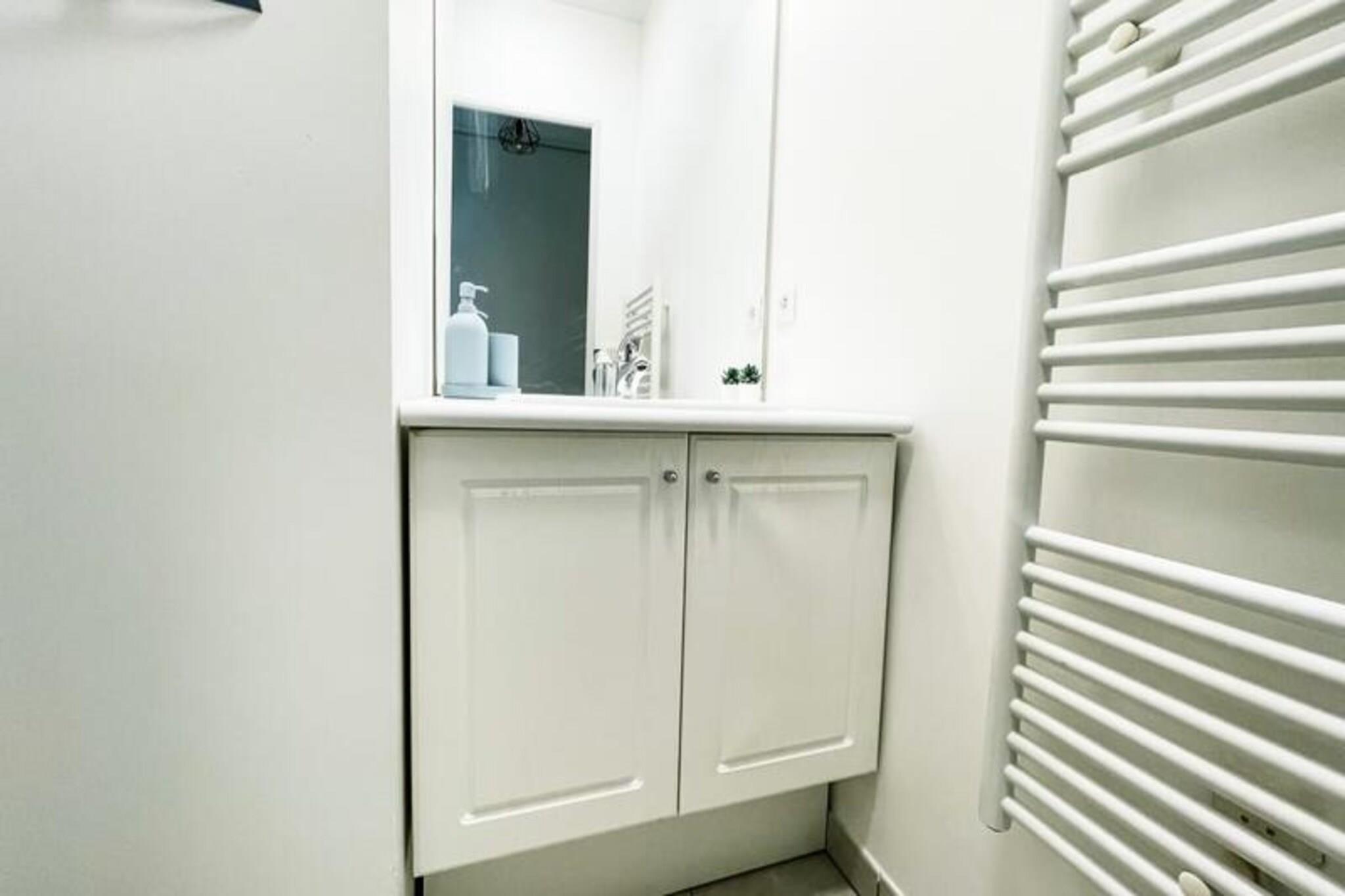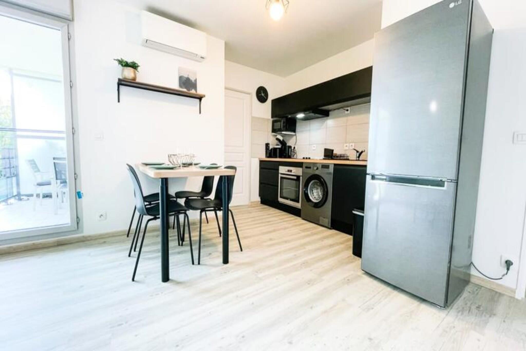Dieses komplett renovierte, klimatisierte Apartment bietet einen komfortablen und modernen Aufenthalt mit Schlafgelegenheiten für bis zu 4 Gäste. Es verfügt über ein Doppelbett im Schlafzimmer und ein Schlafsofa im Wohnbereich. Die Unterkunft ist haustierfreundlich, für Haustiere fällt eine zusätzliche Gebühr an. Gäste können den Komfort eines privaten Parkplatzes und einer großzügigen 11 m² großen Terrasse genießen, die zum Entspannen einlädt. Zu den weiteren Annehmlichkeiten gehören WLAN, ein Fernseher und eine Klimaanlage für einen komfortablen Aufenthalt. Das im Herzen von Inovallée gelegene Apartment ist ideal für Geschäftsreisende, da es in der Nähe großer Unternehmen wie Schneider und Inria Grenoble Rhône-Alpes liegt. Es liegt auch in der Nähe lokaler Restaurants, die eine große Auswahl an Speisemöglichkeiten bieten. Die öffentlichen Verkehrsmittel sind gut erreichbar, eine Bushaltestelle ist nur 2 Minuten entfernt, so dass Sie die Gegend bequem erkunden können. Egal, ob Sie beruflich oder privat hier sind, dieser Standort bietet einfachen Zugang zu den wichtigsten Zielen in Grenoble. Das Apartment verfügt über eine voll ausgestattete Küche mit Kühlschrank, Gefrierschrank, Backofen, Mikrowelle und Kaffeemaschine. Das moderne Badezimmer verfügt über eine italienische Dusche und für zusätzlichen Komfort gibt es ein separates WC. Mit hochwertiger Bettwäsche und Handtüchern für bis zu 4 Personen sorgt das Apartment für einen stressfreien Aufenthalt. Genießen Sie das stilvolle Interieur, die ruhige Atmosphäre und das funktionale Design dieses schönen Ferienhauses.