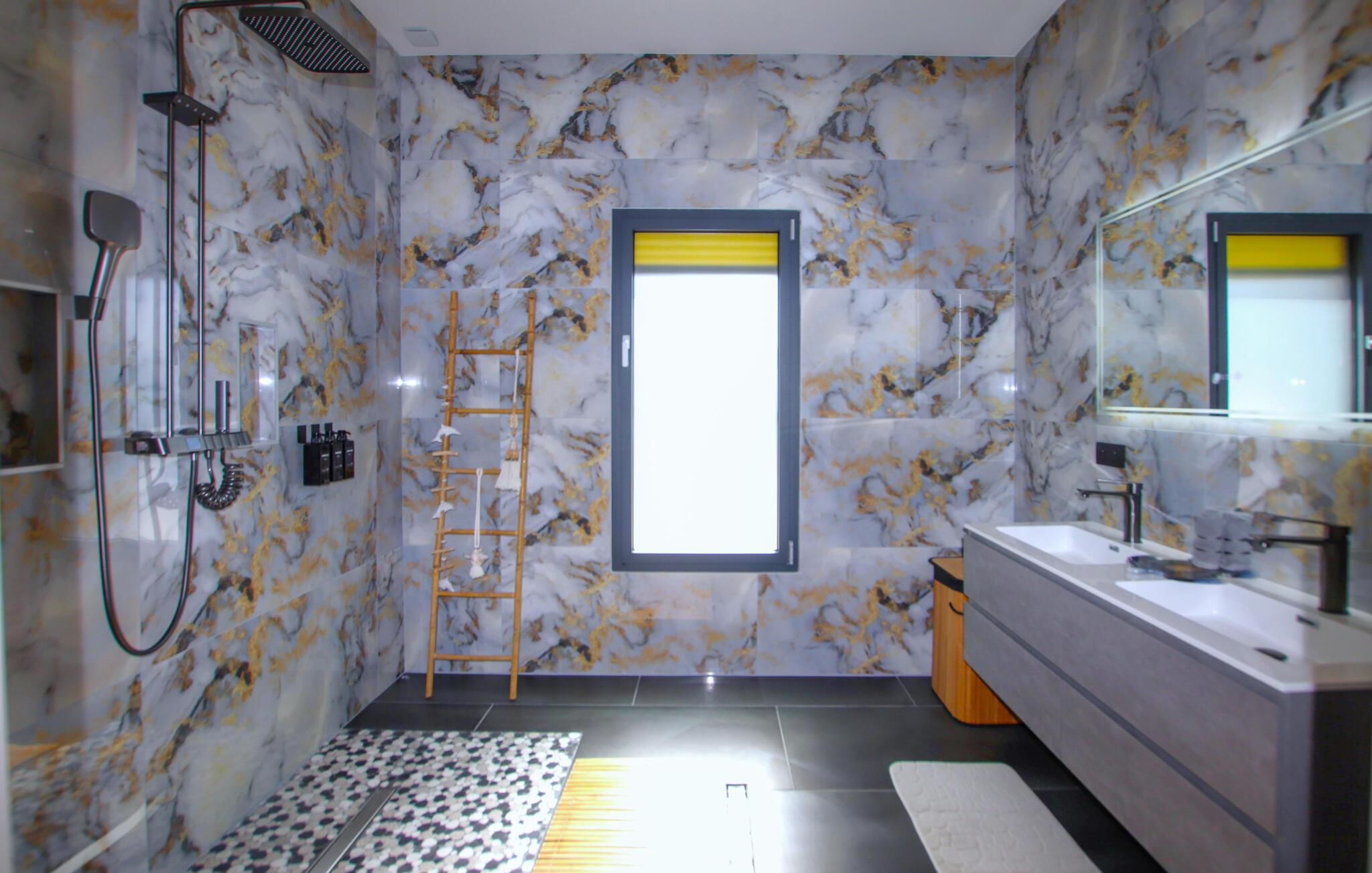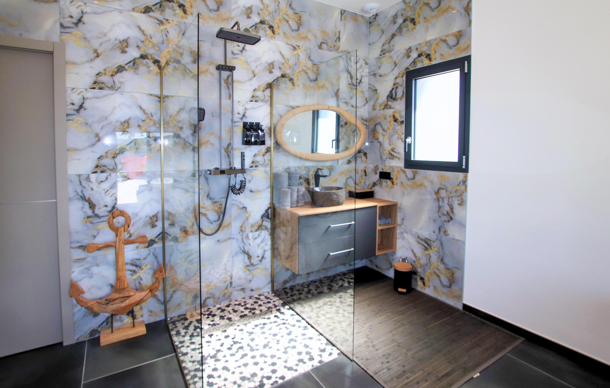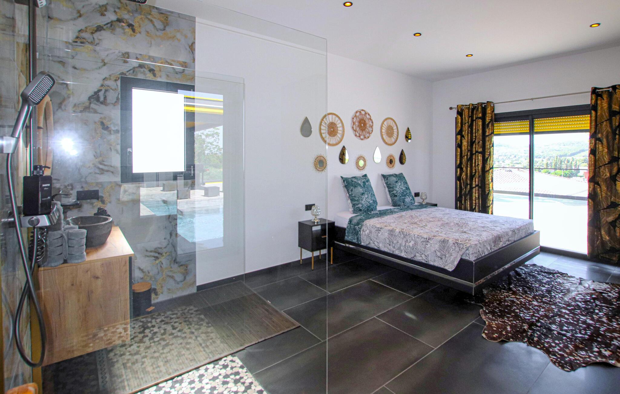 Der überdachte, nach Südosten ausgerichtete Patio bietet einen herrlichen Blick auf das Vercors-Massiv. Hier entspannen Sie auf bequemen Sonnenliegen und erfrischen sich nach Lust und Laune im herrlichen Pool. Entfachen Sie den Grill und genießen Sie stimmungsvolle Abende mit mediterranem Flair.