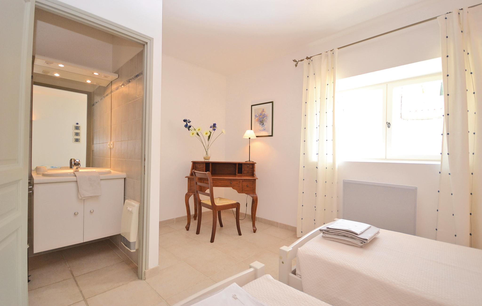 Genießen Sie die Ruhe dieser Orte und die Schönheit dieses wunderschönen Herrenhauses, das sehr gepflegt ist. Die Wohnbereiche befinden sich im ersten Stock, der über eine Außentreppe mit Holzbalken und hellen Farben, zugänglich ist. Jedes der 3 schönen Schlafzimmer verfügt über ein eigenes Bad, von dem eines eine Badewanne hat und 2 separate Toiletten. Sie genießen eine große Panoramaterrasse mit Blick auf das herrliche, mit Obstbäumen bepflanzte Land im Herzen der Lavendelfelder und der Weinberge der Eigentümer. Das Haus, von hinten terrassiert und daher ohne Nachbar, profitiert von einem herrlichen privaten und absolut sicheren Swimmingpool mit einer überdachten Terrasse. Sie eignet sich perfekt zum Sonnenbaden und bietet einen schönen Blick auf die benachbarten Weinberge.