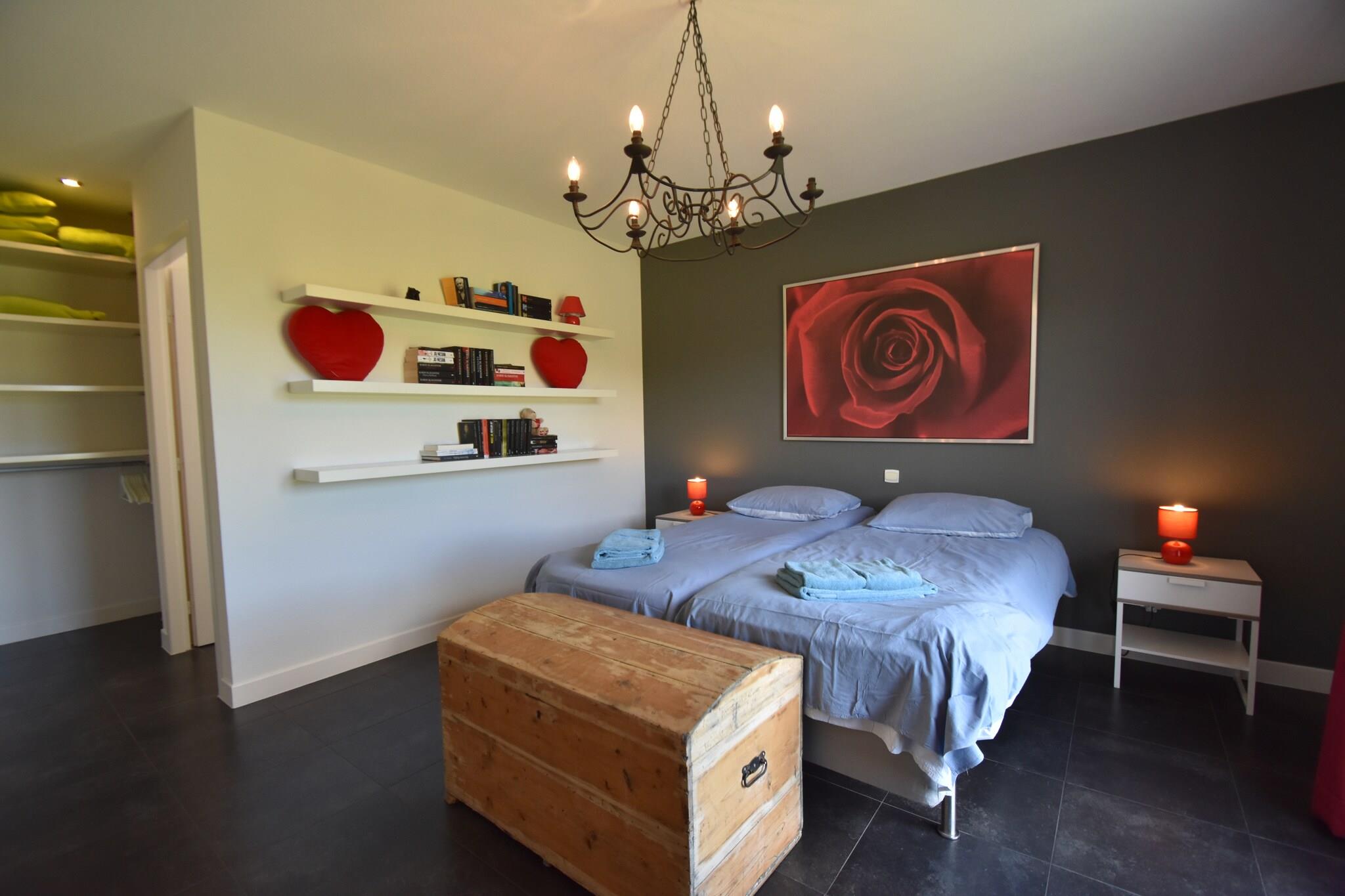 Versteckt im Herzen von Montbrun-des-Corbières verbindet diese Villa mit 4 Schlafzimmern modernen Komfort mit dem entspannten Charme der Landschaft des Languedoc. Sie bietet Platz für bis zu 8 Gäste und ist perfekt für Familien, Freunde und sogar vierbeinige Begleiter. Freuen Sie sich auf klimatisierte Innenräume, eine voll ausgestattete Küche und wahlweise sonnige oder schattige Terrassen. Draußen bietet der angelegte Garten einen glitzernden privaten Pool, einen Bouleplatz und Platz für Mahlzeiten im Freien unter dem Sternenhimmel. Die Lage der Villa lädt zu Erkundungstouren ein – zu Fuß, mit dem Fahrrad oder mit Ihrem Hund im Schlepptau. Schlendern Sie durch die malerischen Dorfgassen, wandern Sie durch die nahegelegenen Weinberge oder genießen Sie die haustierfreundlichen Wanderwege rund um den Regionalen Naturpark Narbonnaise en Méditerranée (40 km). Wasserratten können den Seestrand von Homps (12 km) besuchen oder Wassersport in Puichéric (10 km) ausprobieren. Eine Bootsfahrt auf dem Canal du Midi ist ein Muss – und Haustiere sind in vielen Mietobjekten willkommen! Entdecken Sie Homps‘ Restaurants am Wasser (11 km) mit frischen mediterranen Meeresfrüchten oder genießen Sie Weinproben in den nahegelegenen Weingütern. Holen Sie sich frisches Brot in der Dorfbäckerei (1 km) und bereiten Sie in der Villa ein Grillfest zu. Da Carcassonne nur 29 km entfernt ist, können Sie Ihre Entspannung am Pool problemlos mit Burgbesichtigungen, Marktbummeln und lebendiger Cafékultur verbinden.