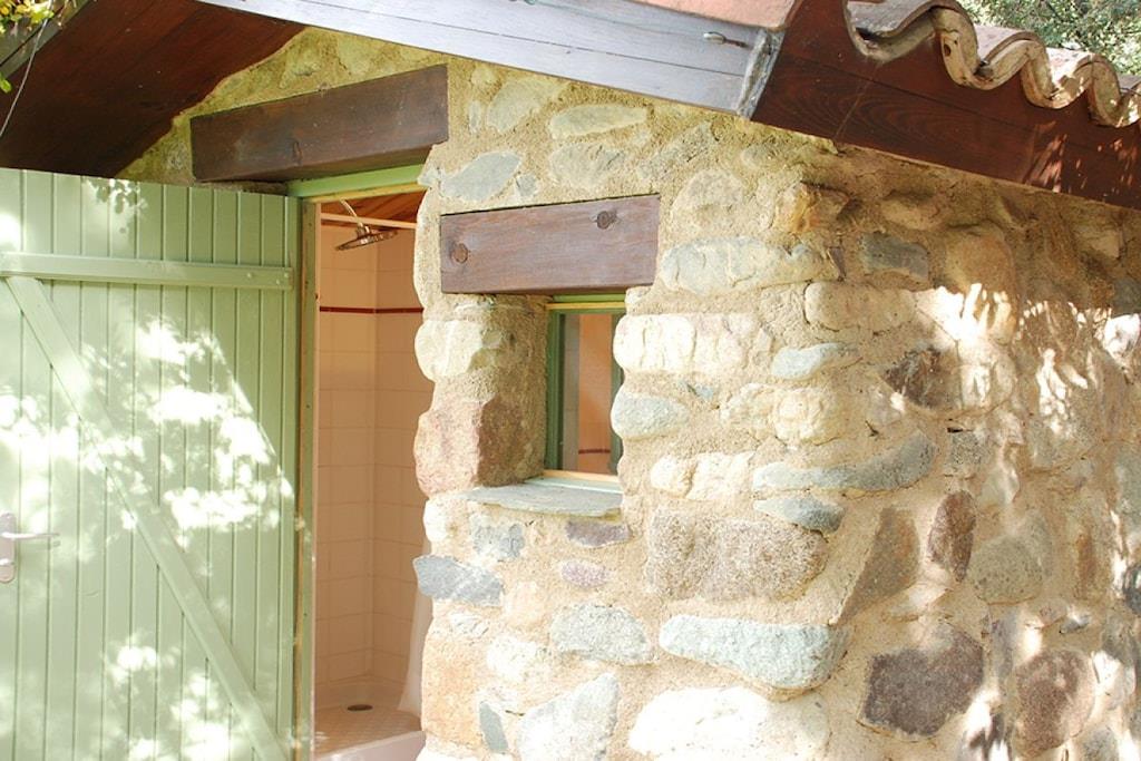 Das Chalet liegt unter alten Eichen und Mimosen auf einer Mandelbaumwiese. Es ist für 4 Personen geeignet und hat eine hochwertige Ausstattung. Auf dem gesamten Grundstück gibt es noch die alte Olivenmühle am Bach und den Bio Traiteur, wenn Sie mal keine Lust aufs Kochen haben.