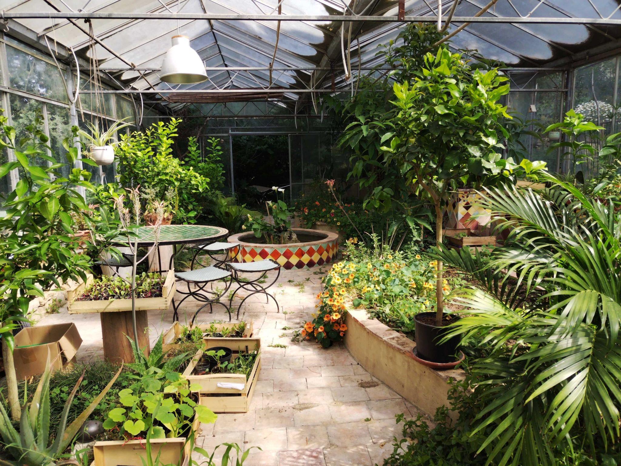 Die Außenanlagen sind sehr schön: Glasgewächshaus mit tropischen Pflanzen, kleiner Pool im Stil eines Spas, Schaukeln, Tischtennisplatte, mehrere Spiele. Sehr natürliche Umgebung, 5 Minuten vom Dorf mit allen Annehmlichkeiten entfernt.
