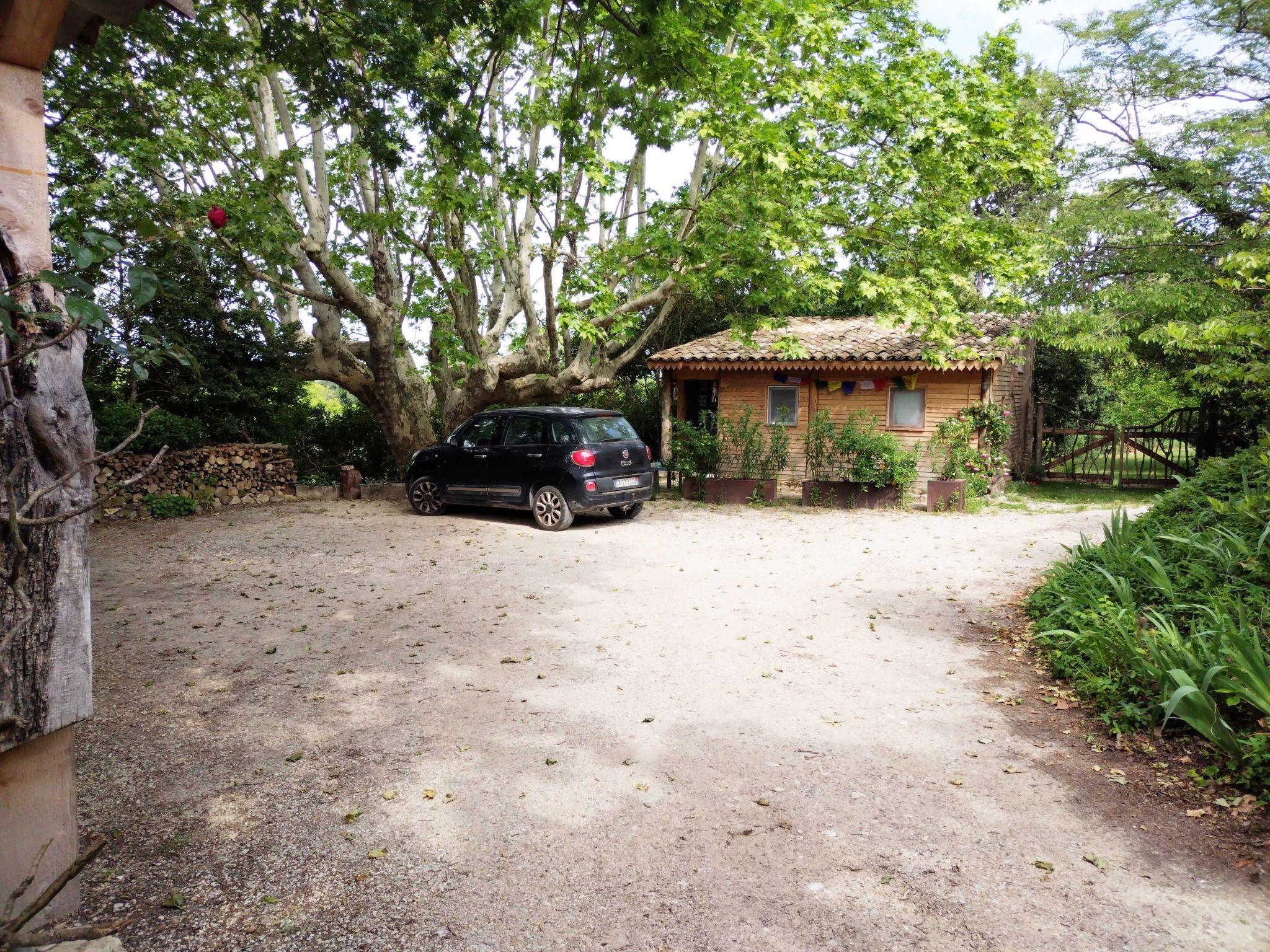Parken ist einfach und schattig direkt auf dem Privatparkplatz des Anwesens.