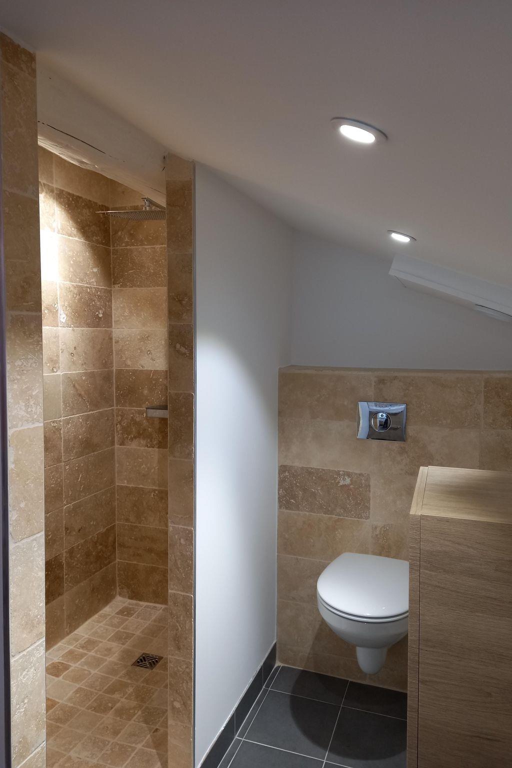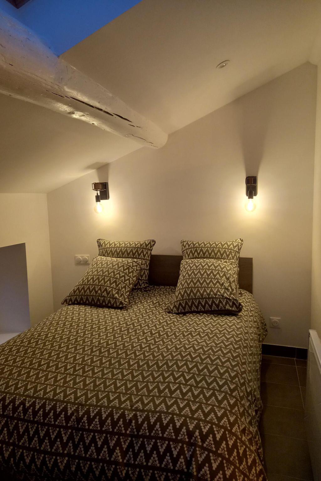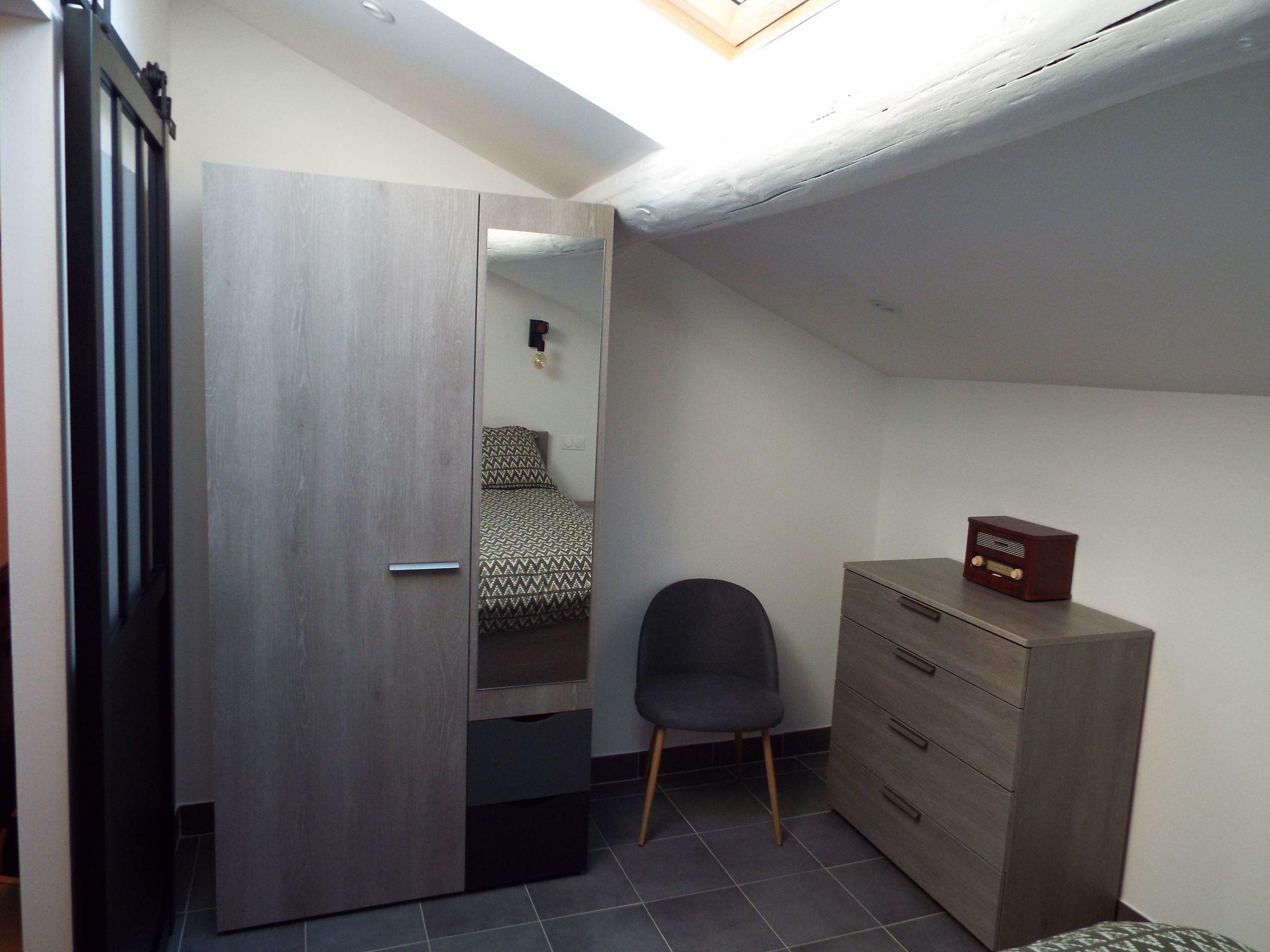 Teil der Moulin de Tartay ist ein 45 m2 großes Ferienhaus unter dem Dach, das über ein Schlafzimmer, ein Badezimmer mit italienischer Dusche und eine separate Toilette verfügt.