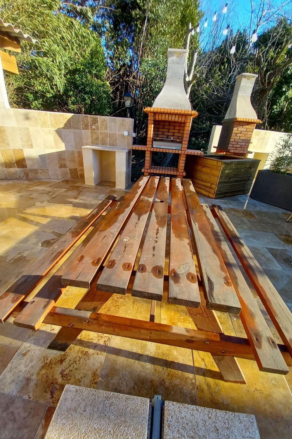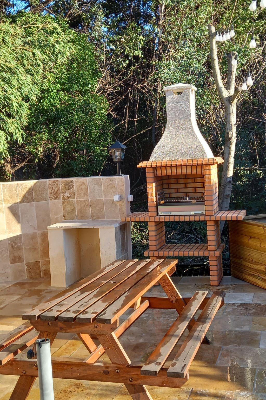 1 private Terrasse für diese Unterkunft mit Grill, Tisch und Stühlen, Gartenmöbeln und eigenem Kühlschrank.