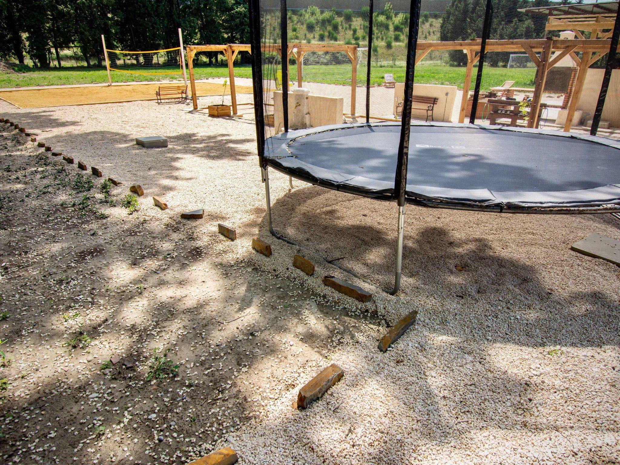 Der Garten besteht aus Gartenmöbeln, einem beheizten Pool (7 x 3 x 1,5 m tief, unbeaufsichtigt, geöffnet von April bis September), der durch einen schmiedeeisernen Zaun und einen Schutzvorhang nach C. E.-Norm geschützt ist. (von jedem Gast und für jeden Aufenthalt wird eine Haftungsfreistellung verlangt), die aus Sicherheitsgründen von 8 bis 20 Uhr geöffnet ist, eine Schaukel in Form eines Klettergerüstes unter der Verantwortung der Eltern (geöffnet von April bis Oktober), ein Trampolin, das auf eine Person beschränkt ist und weniger als 90 kg wiegt (geöffnet von April bis Oktober),