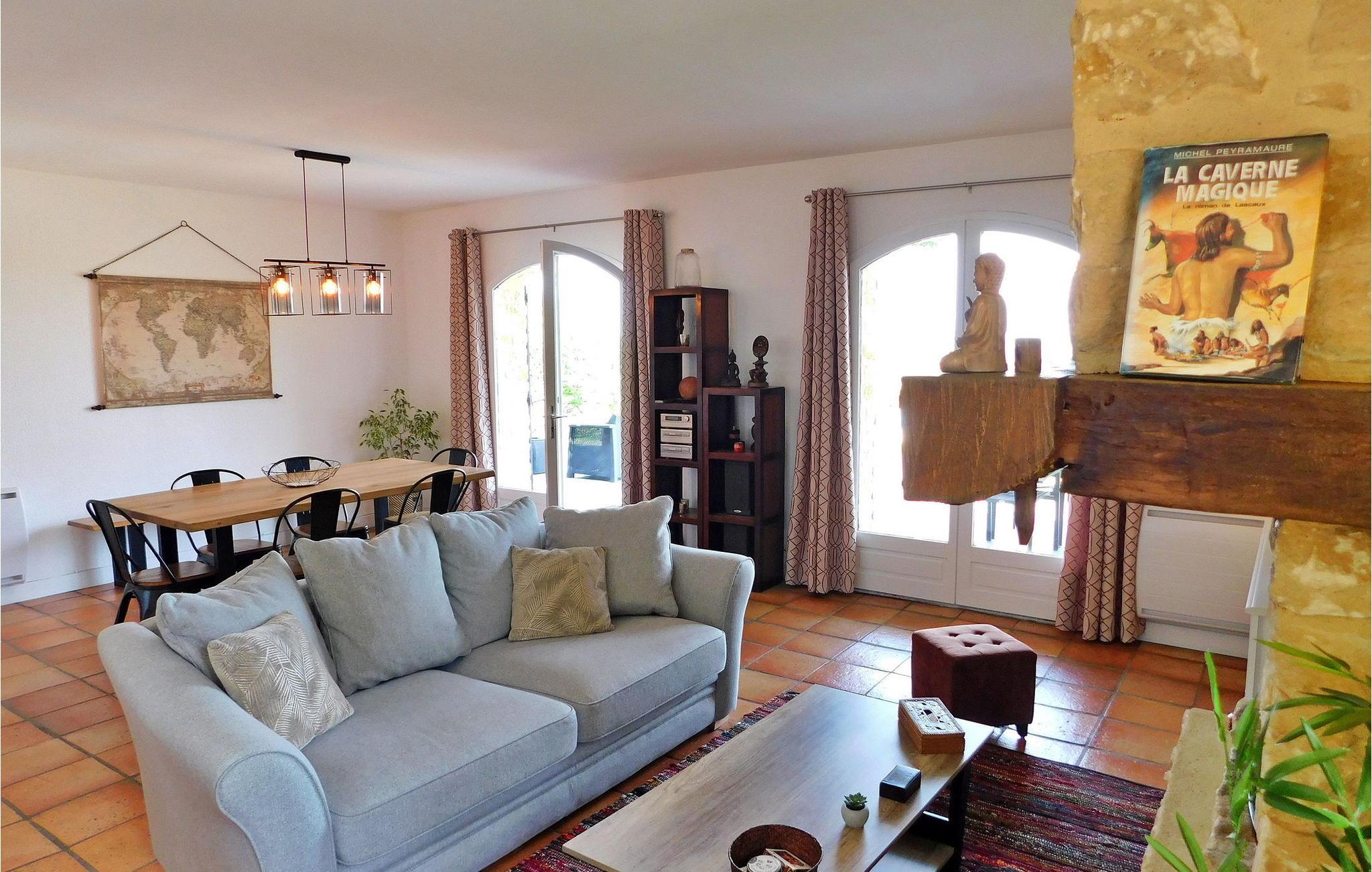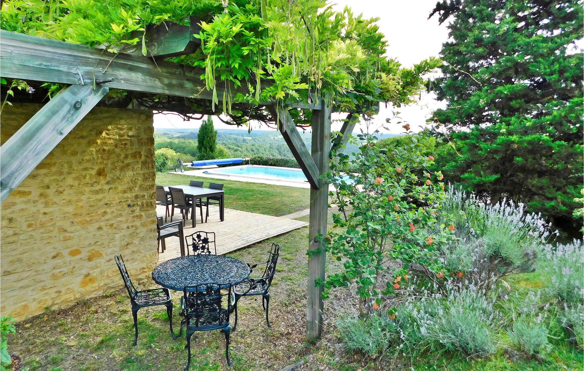 Dieses charmante Landhaus in der Dordogne verfügt über ein geschmackvoll eingerichtetes Interieur und einen bezaubernden Blick auf die Landschaft vom Poolbereich aus. Eingebettet zwischen Montignac und Les Eyzies bietet es Ruhe und liegt gleichzeitig in der Nähe von nahegelegenen Geschäften. Das Haus verfügt über eine gut ausgestattete Küche, einen Essbereich und einen komfortablen Wohnbereich. Es verfügt über drei Schlafzimmer und zusätzliche Schlafgelegenheiten im offenen Zwischengeschoss. Der Außenbereich verfügt über ein bewaldetes Gelände mit verschiedenen Sitzbereichen und einen privaten beheizten Pool (4 x 11 m), der mit einer Alarmanlage gesichert ist. Die Terrasse bietet Gartenmöbel und eine mit Glyzinien geschmückte Pergola zum Entspannen und malerischen Blick auf die Landschaft. Das Haus liegt auf dem Land, nicht isoliert, zwischen Montignac und Les Eyzies, im Périgord Noir in der Nähe von Sarlat und Plazac in der Dordogne. Die nächsten Einkaufsmöglichkeiten sind 1 km entfernt.