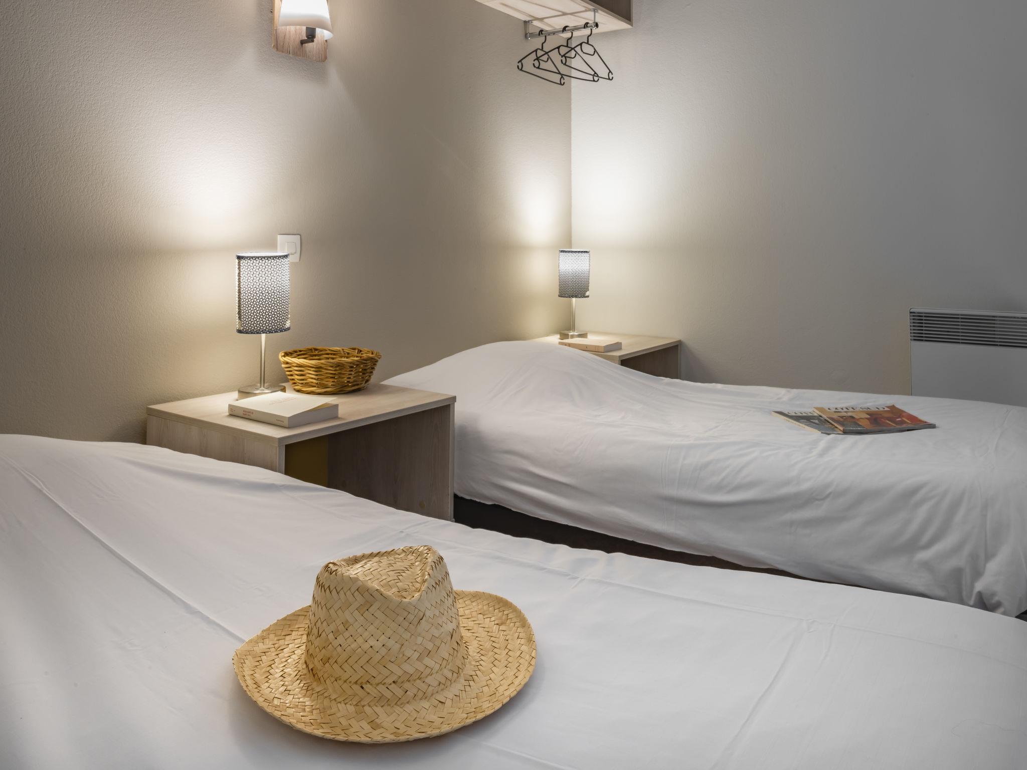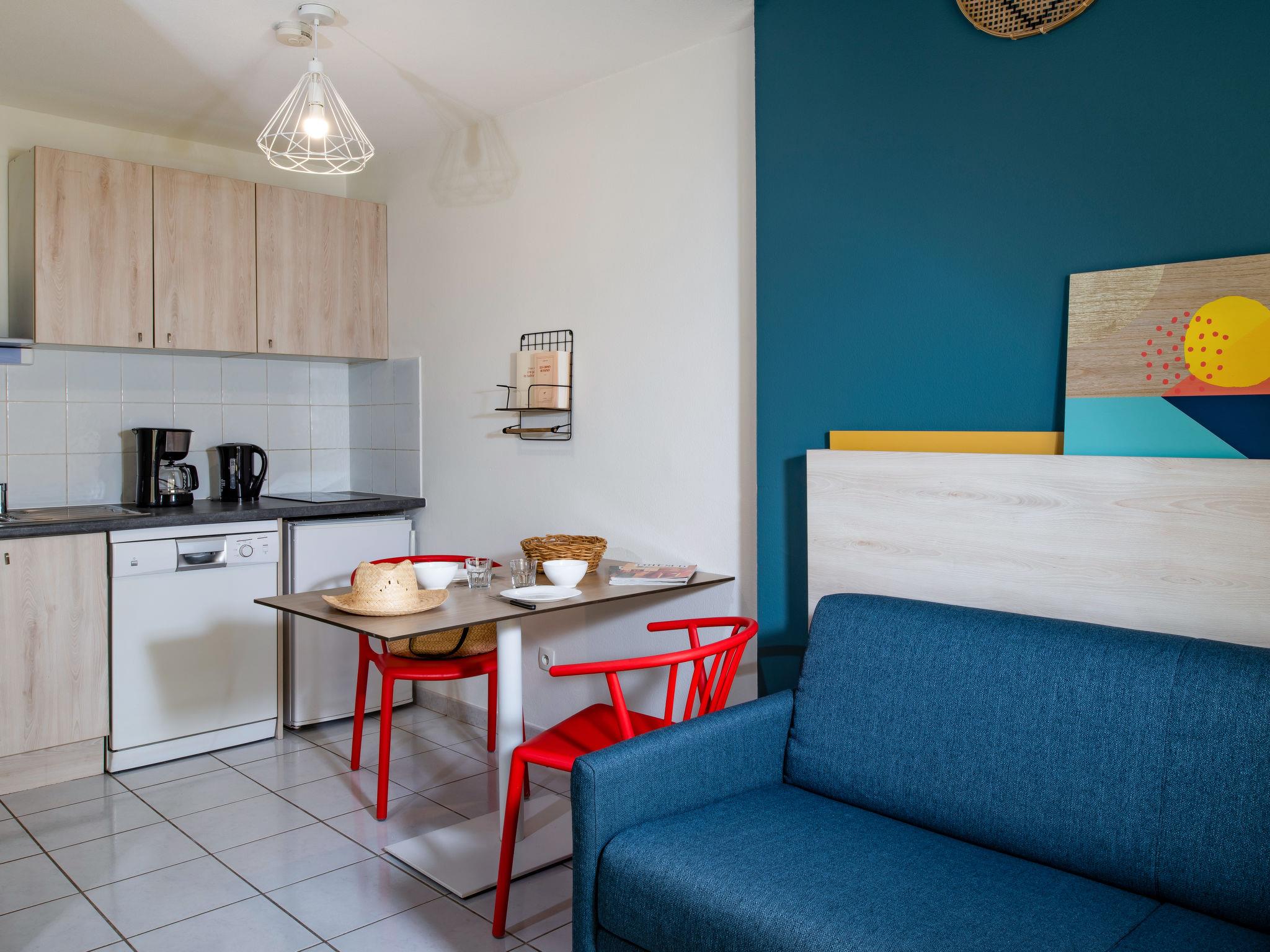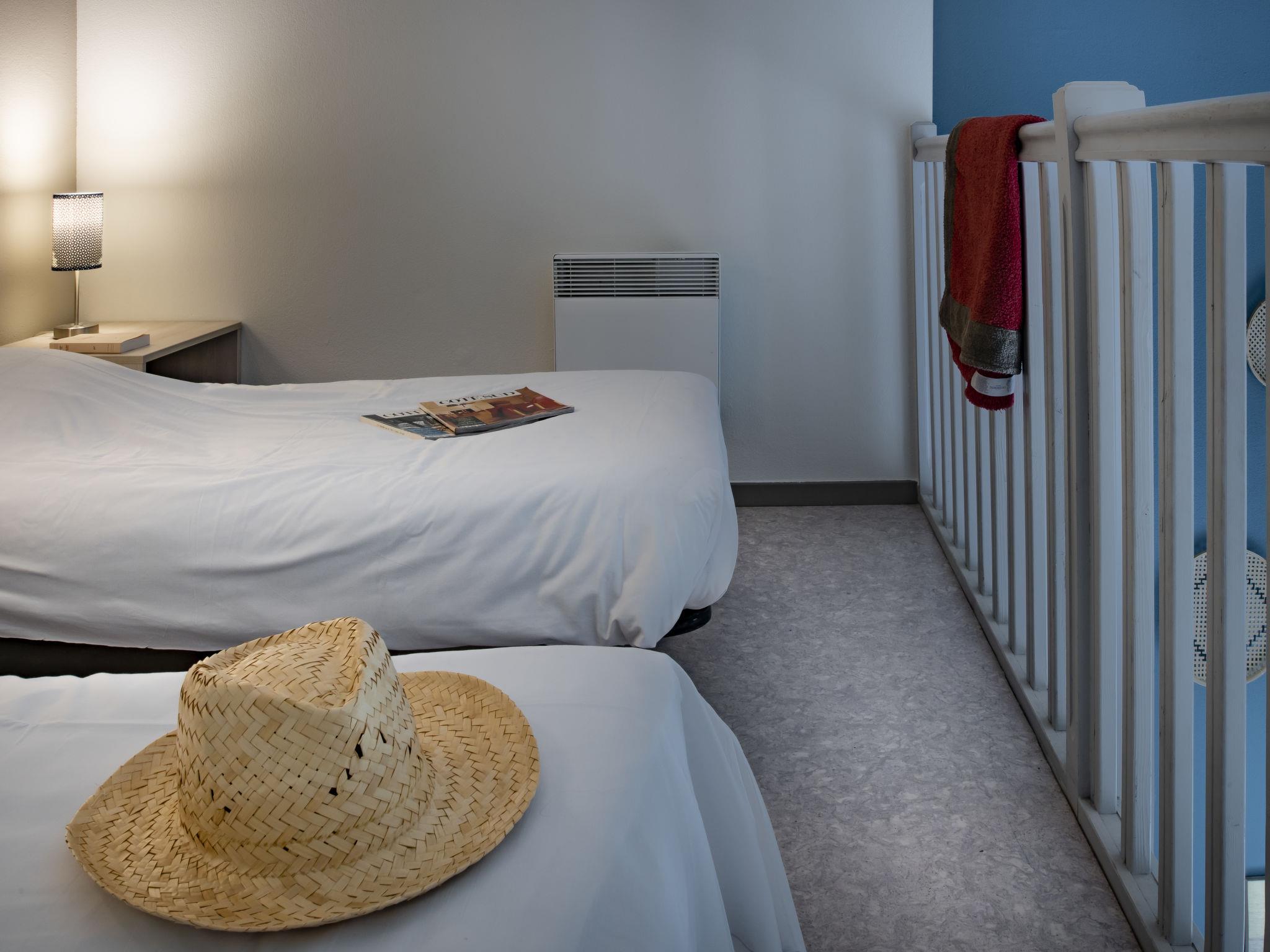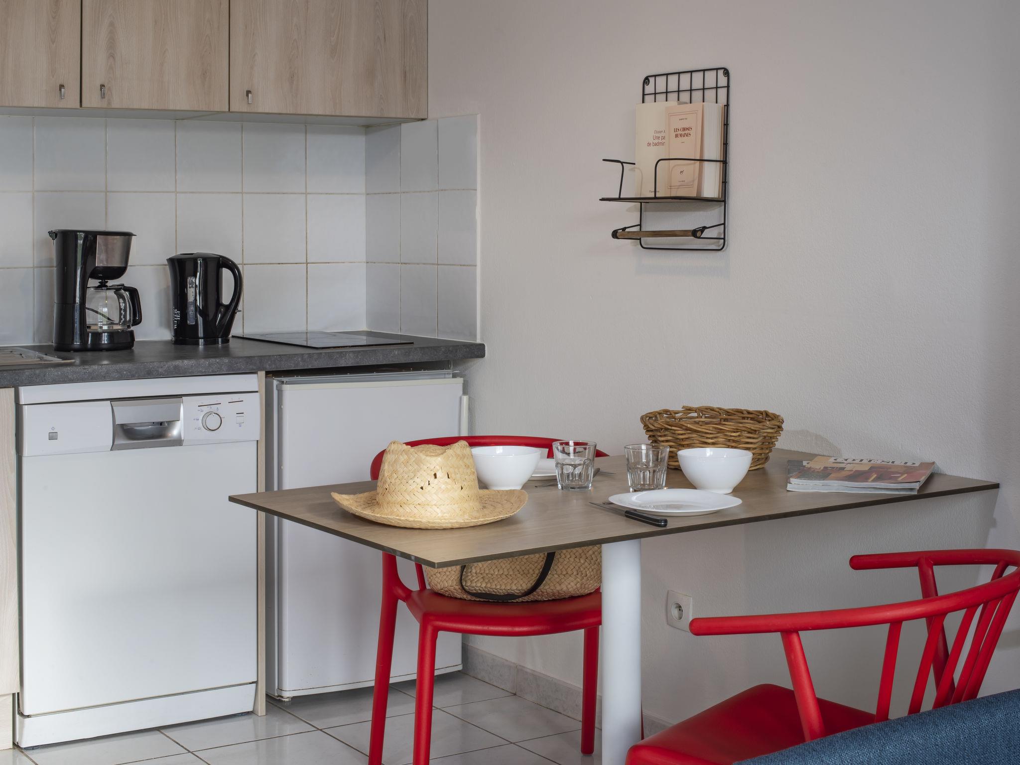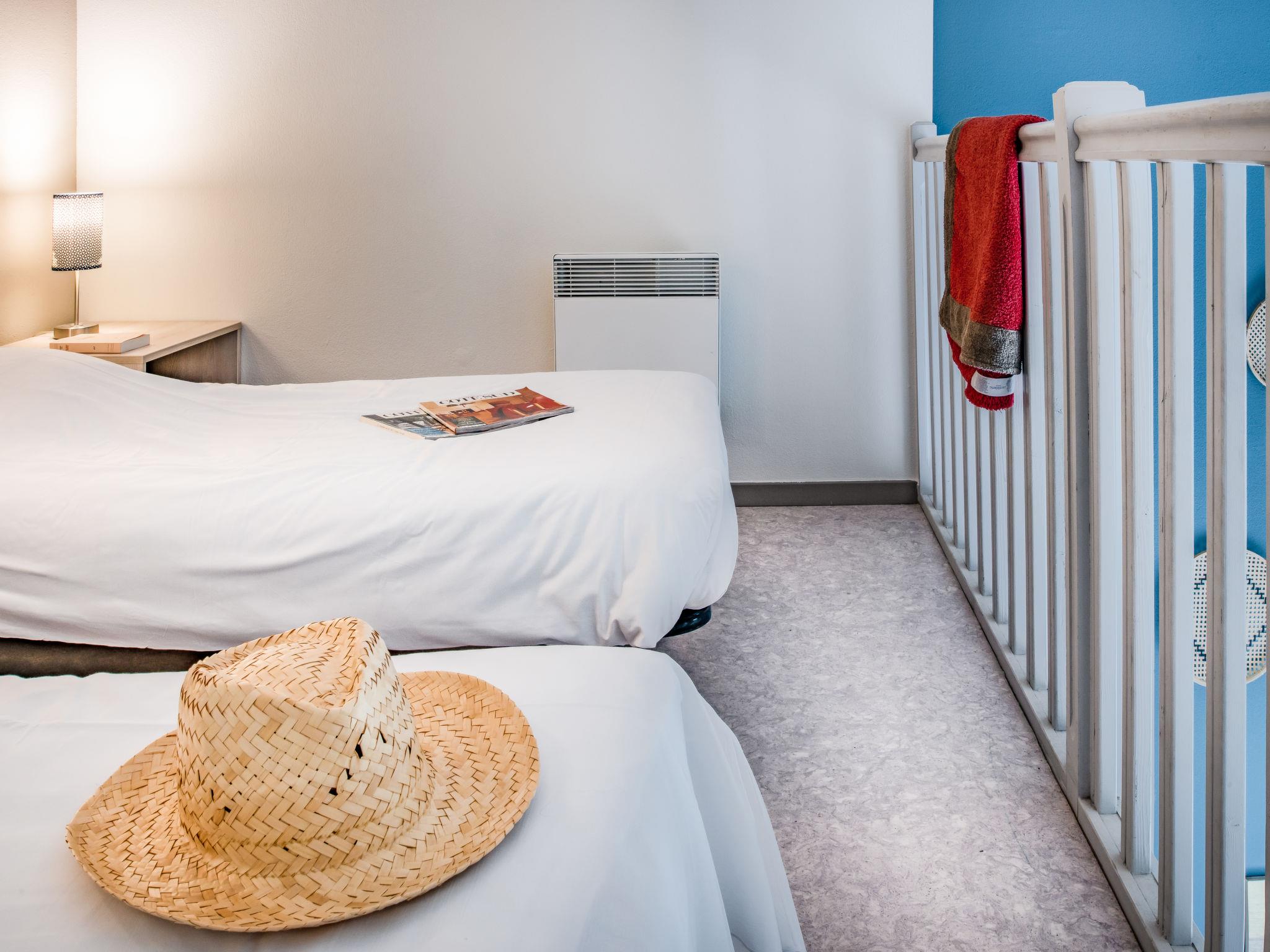 "Domaine du Golf", 1-Zimmer-Reihenhaus 32 m2 auf 2 Stockwerken. Objekt geeignet für 2 Erwachsene + 2 Kinder. Hell, renoviert im Jahre 2019, modern und stilvoll eingerichtet: Wohn-/Schlafzimmer mit 1 Doppeldiwanbett (140 cm, Länge 190 cm), Esstisch, TV und Klimaanlage. Ausgang zur Terrasse. Kochnische (2 Kochplatten, Geschirrspüler, Mikrowelle, elektrische Kaffeemaschine). Dusche/WC. Obergeschoss: offene Galerie mit 2 Betten. E-Heizung. Terrasse. Terrassenmöbel. Zur Verfügung: Internet (WLAN, gratis). Bitte beachten: Maximal 1 Haustier/Hund erlaubt. Rauchmelder. Anstelle eines abgeschlossenen Schlafzimmers befinden sich manche Schlafplätze in einem offenen Bereich (Galerie, Nische etc.).