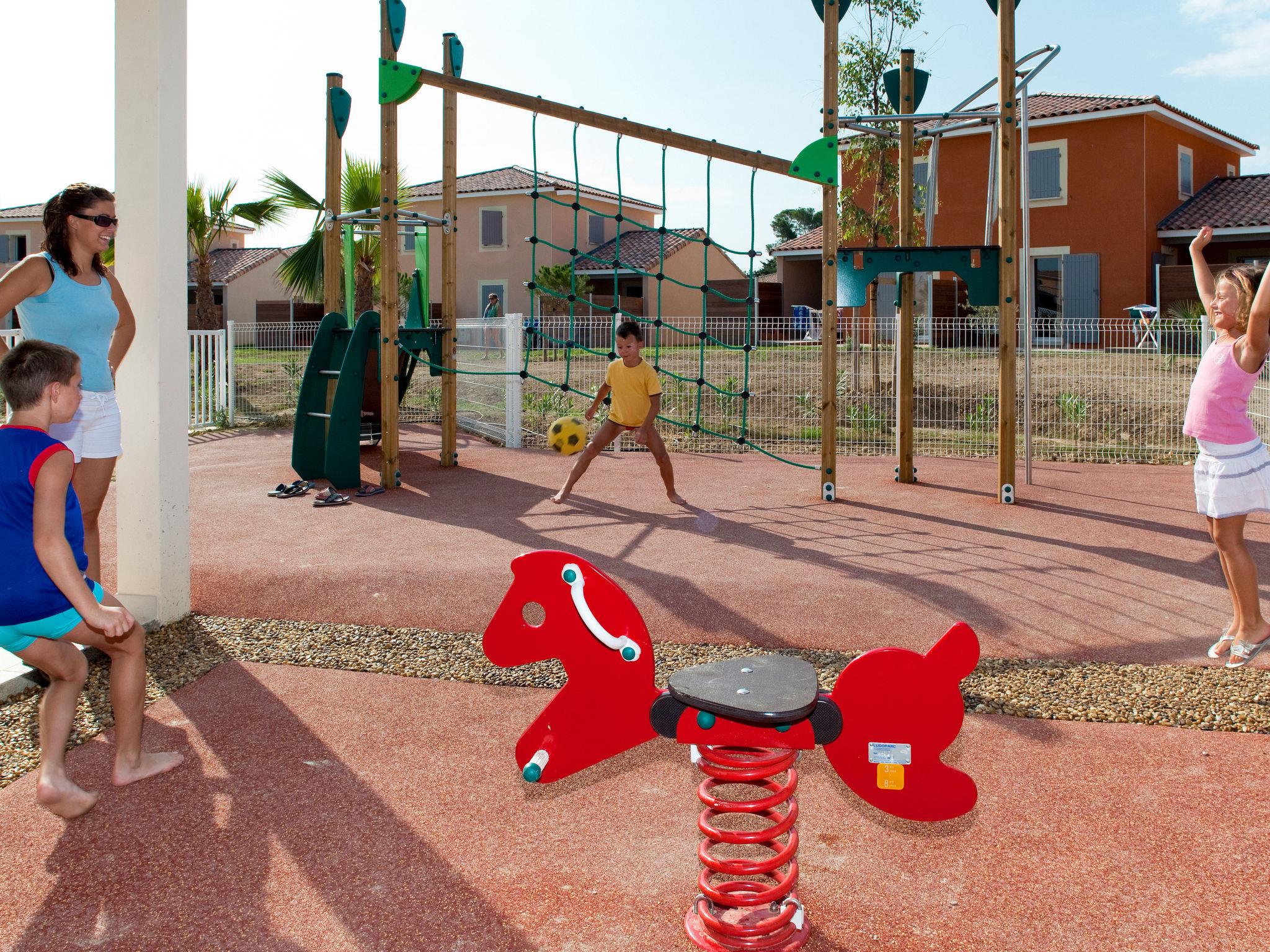 Kinderfreundliche, moderne Ferienanlage "Domaine du Golf". 220 Häuser im Ferienresort. 18 km vom Zentrum von Montpellier, 2.5 km vom Zentrum von Fabrègues, 16 km vom Zentrum von Palavas-les-Flots, 12 km vom Meer, im Grünen, am Golfplatz. Zur Mitbenutzung: schöner, gepflegter Garten 11 ha (eingezäunt) mit Rasen und Pflanzen, Schwimmbad eingezäunt (550 m2, 30 - 160 cm tief, saisonale Verfügbarkeit: 15.Apr. - 30.Sep.). Ungleichmässige Schwimmbadform, Tischtennis, Boccia, Terrasse, Gartenmöbel, Kinderspielplatz. In der Anlage: Empfang, Bistro, Fitnessraum, Waschmaschine, Wäschetrockner (zur Mitbenutzung, extra). Brötchenservice. Fussweg bis zum Haus. Zentralparkplätze. Supermarkt 2 km, Restaurant 2 km, Sandstrand "Frontignan-Plage" 12 km. Golfplatz (6 Loch) 100 m. Bitte beachten: autofreie Ferienanlage. Animation in der Saison. Das Foto ist nur ein Hausbeispiel. Die Mietobjekte können sich in Wohnfläche, Raumaufteilung, Ausstattung und Einrichtung unterscheiden.