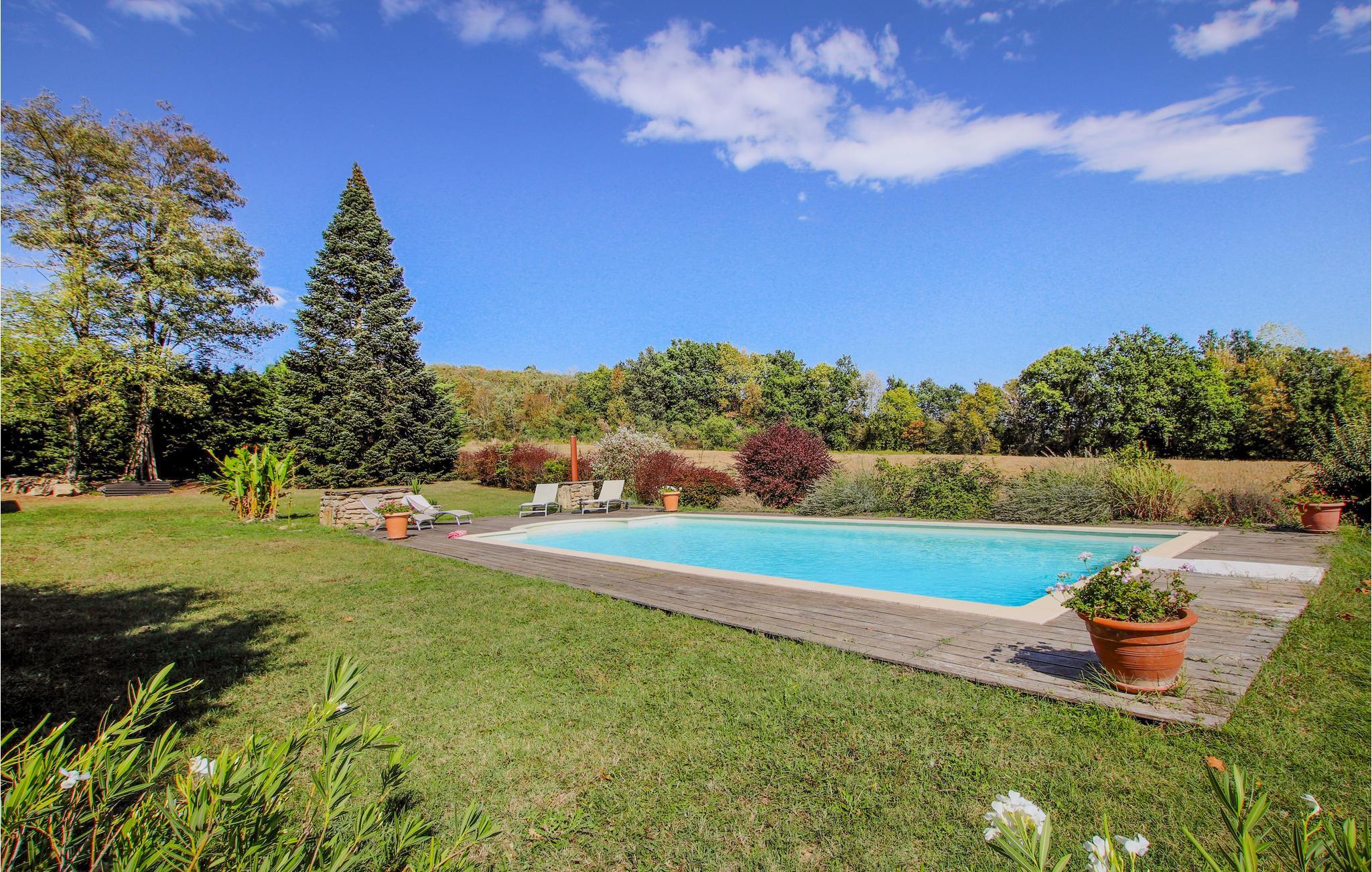 Genießen Sie den hinreißenden romantischen Park, einen schönen privaten Außenbereich, der zu unterhaltsamen Stunden im Freien einlädt. Schwimmen Sie morgens im Pool und machen Sie es sich in den Gartenmöbeln bequem, um einen Kaffee zu trinken, während Ihre Kinder sich auf dem weitläufigen Gelände vergnügen. Die charmante Holzterrasse ist der ideale Ort für ein Abendessen am Grill.