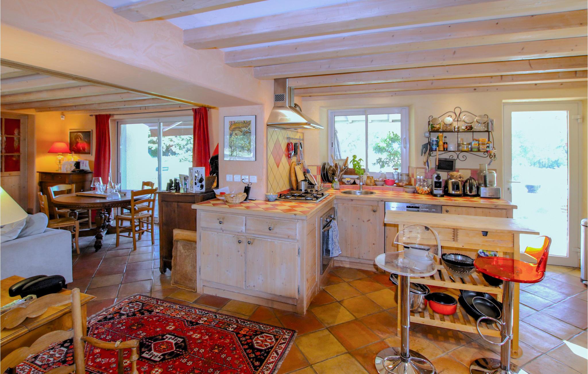 Im Inneren entdecken Sie einen großen, gemütlichen und komfortablen Raum, der mit hochwertigen Materialien ausgestattet ist. Verbringen Sie entspannte Momente im sehr großen Wohnzimmer mit Zugang zur schönen Terrasse und kochen Sie leckere Gerichte in der schönen provenzalischen Küche. Die hellen und schön eingerichteten Zimmer sind auf Wohlbefinden ausgelegt und bieten den idealen Rahmen für einen erholsamen Urlaub mit der Familie.
