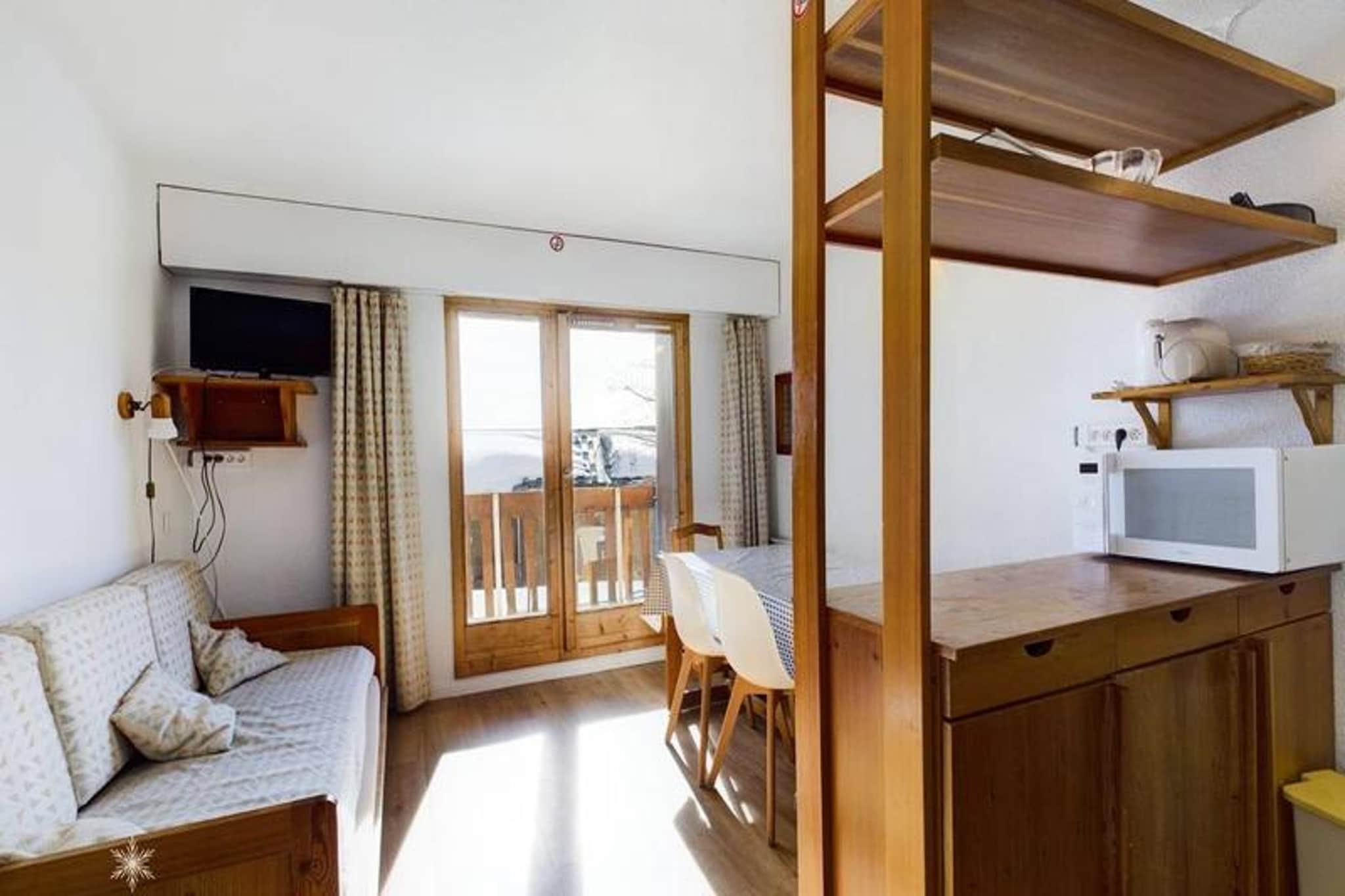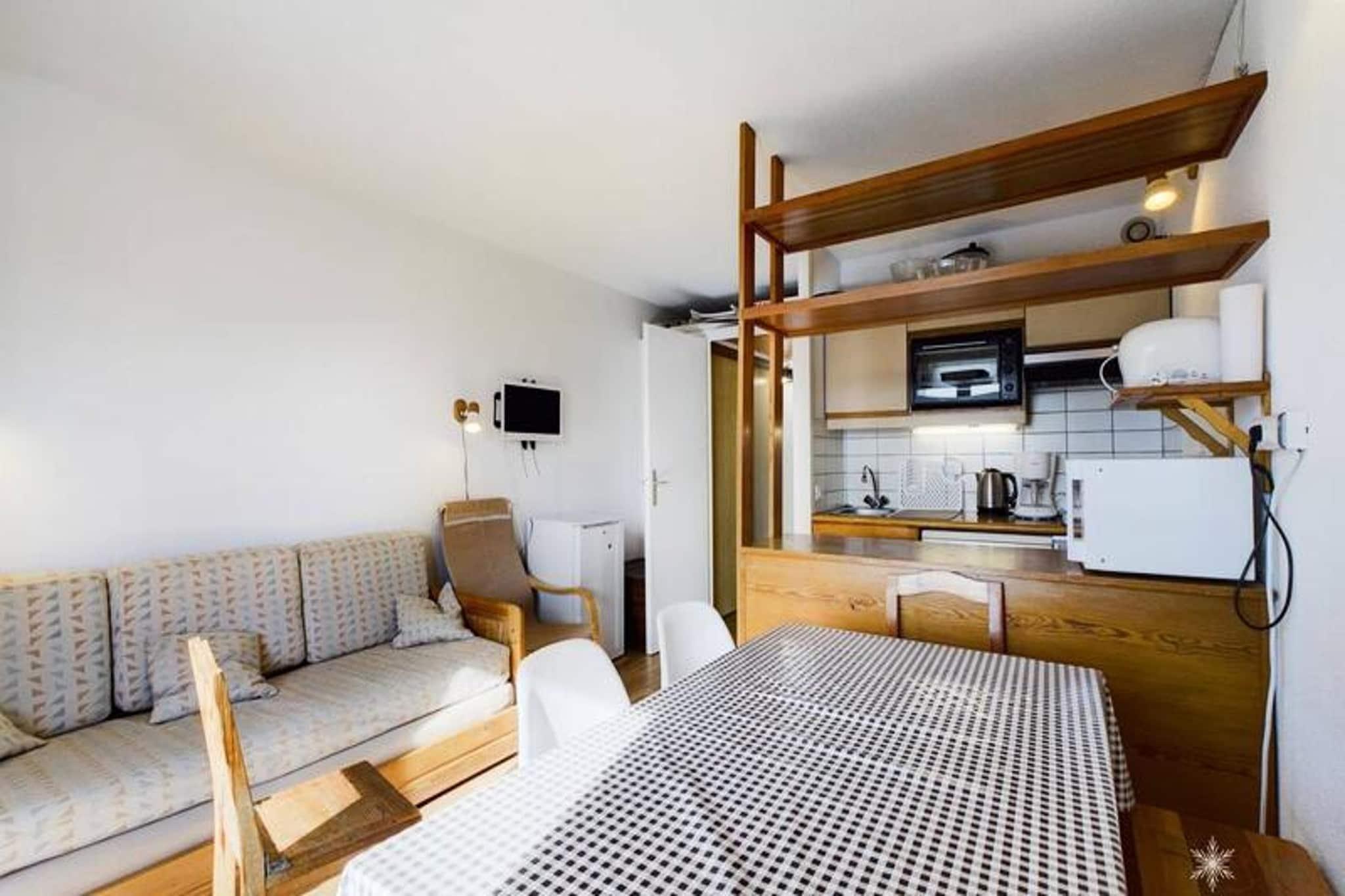 Diese gem?tliche, 29 m² gro?e Studioh?tte liegt auf der Gartenebene einer ruhigen Residenz und bietet Platz f?r bis zu 6 G?ste. Der Raum umfasst ein Wohnzimmer mit einem Schlafsofa f?r zwei Personen, eine Kabine mit zwei Etagenbetten und einen Eingang mit einem zus?tzlichen Etagenbett. Ein Badezimmer mit separater Toilette sorgt f?r zus?tzlichen Komfort. Die S?dwestausrichtung und der Balkon bieten eine bezaubernde Aussicht, ideal zum Entspannen nach einem Tag auf der Piste. Da die Wohnung nicht haustierfreundlich ist und ?ber keinen Teppich verf?gt, ist sie eine saubere und allergikerfreundliche Option. Das Apartment liegt im Zentrum des Resorts, nur 200 Meter von den Skiliften entfernt und bietet schnellen Zugang zu den Pisten. Die G?ste werden den Komfort der nahegelegenen Gesch?fte, Caf?s und lokalen M?rkte genie?en, die alles bieten, was sie f?r einen komfortablen Aufenthalt ben?tigen. Ob Sie im Winter Skifahren gehen oder im Sommer die malerischen Wanderwege erkunden, die Lage bietet einfachen Zugang zu einer Vielzahl von Aktivit?ten und die lebendige Atmosph?re des Resorts. Die K?chenzeile ist mit zwei elektrischen Kochplatten, einem Minibackofen, einer Mikrowelle, einem K?hlschrank und einem Geschirrsp?ler ausgestattet und erm?glicht so eine einfache Zubereitung von Mahlzeiten. Ein Flachbildfernseher mit TNT sorgt f?r zus?tzliche Unterhaltungsm?glichkeiten. Bitte beachten Sie, dass die Endreinigung, Bettw?sche und Handt?cher nicht im Preis inbegriffen sind und vor Ort gegen eine zus?tzliche Geb?hr anfallen. Eine reizvolle Kombination aus Komfort und Charme macht dieses Apartment zu einer ausgezeichneten Wahl f?r Ihren Urlaub in den Bergen.