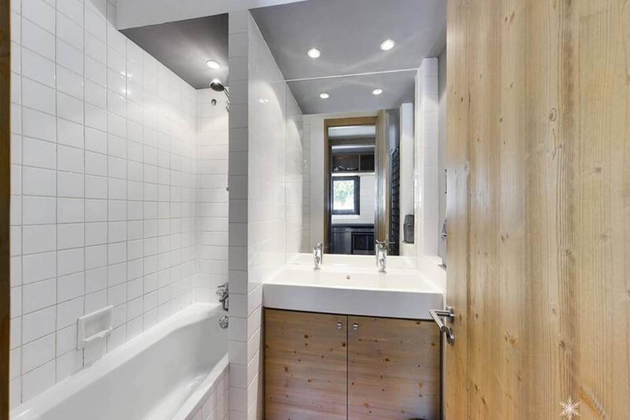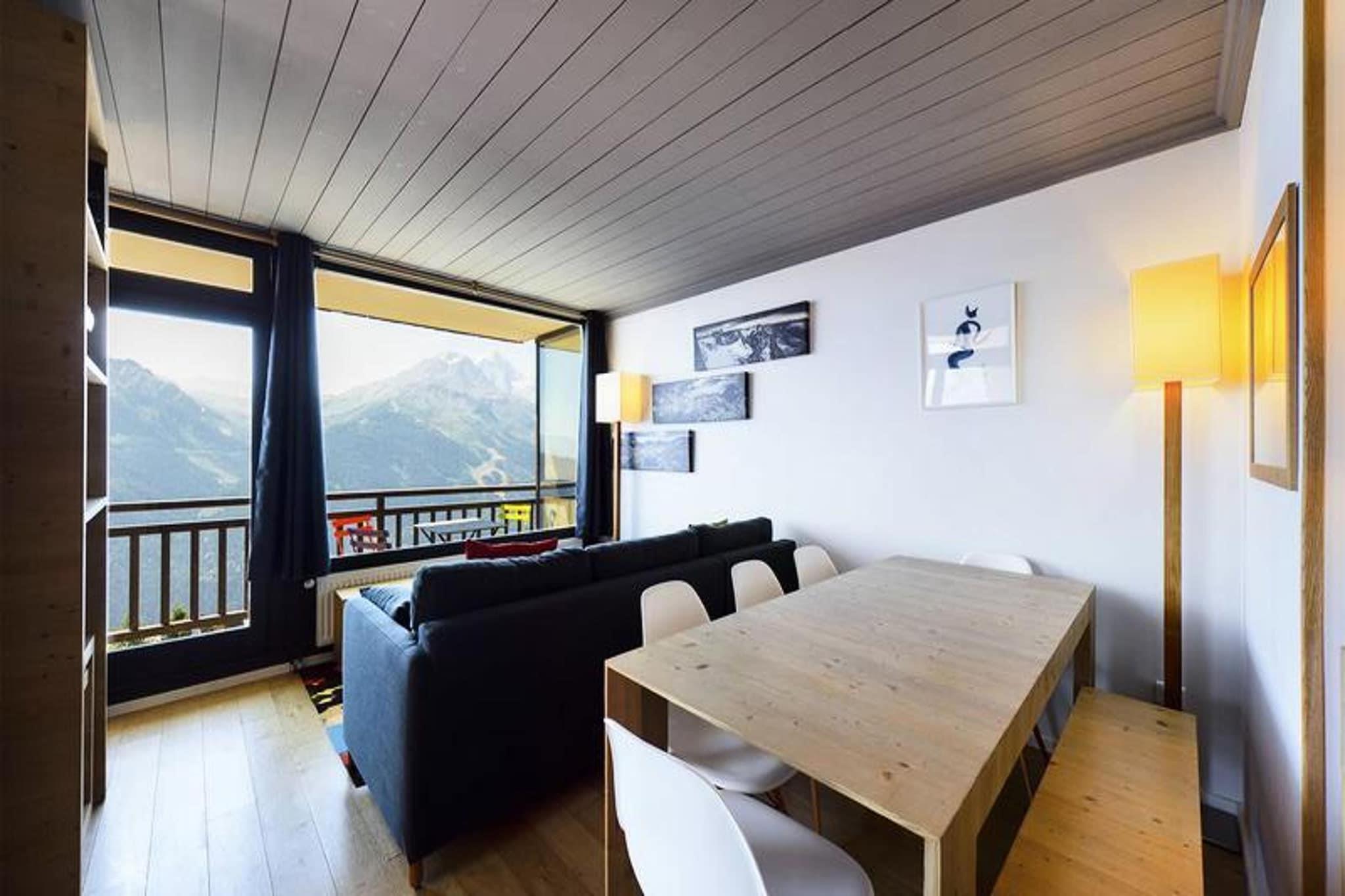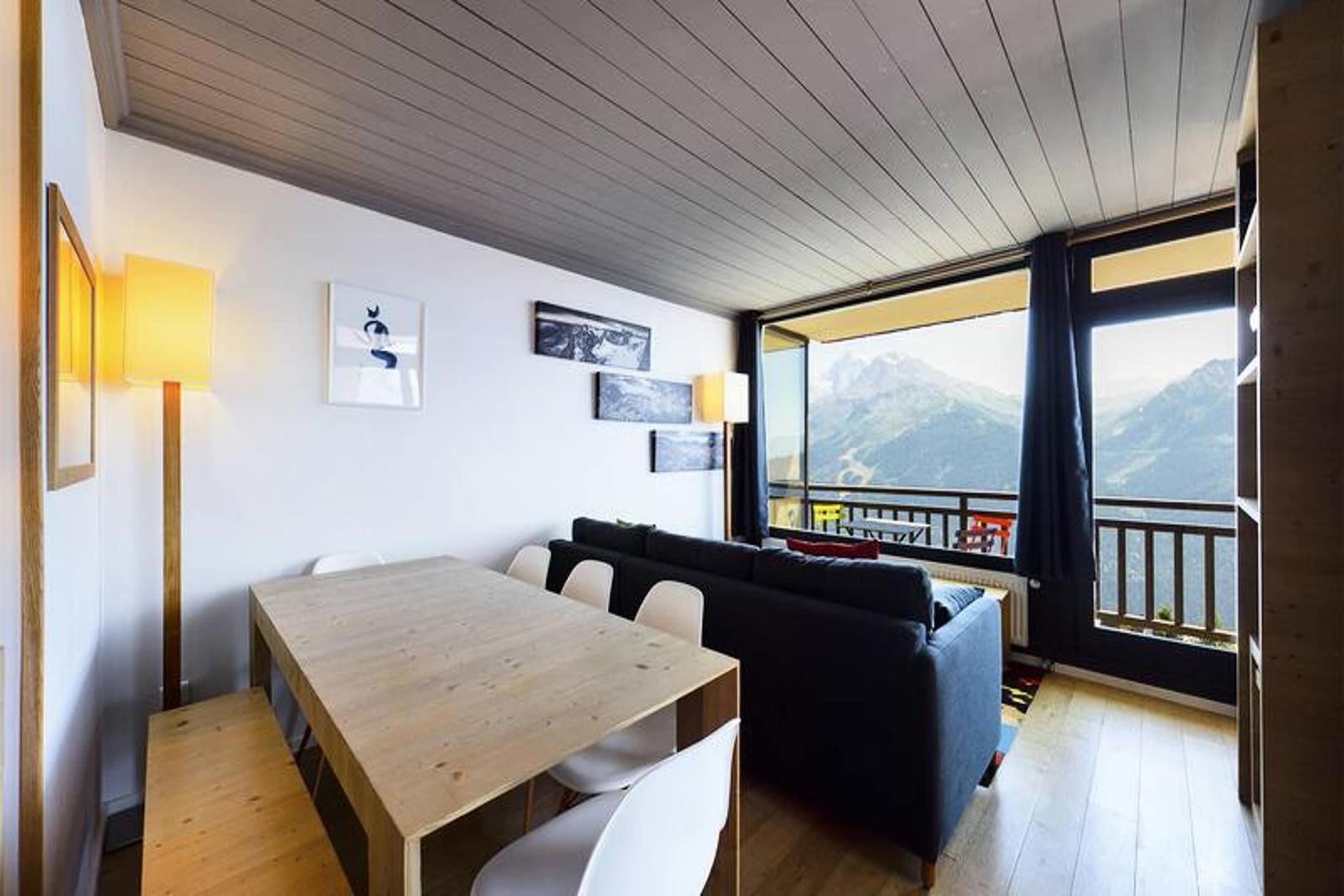 This spacious 3-room apartment, located on the top floor of a cozy residence, offers a comfortable retreat for families or small groups. It features two bedrooms, one with a double bed and the other with two sets of bunk beds. The living room is bright and airy, with double south and west-facing windows that open to two balconies, perfect for enjoying the scenic surroundings. A double convertible sofa provides additional sleeping space, and shoe warmers are available to keep your footwear cozy. The apartment is pet-friendly, allowing you to bring your furry companions. Ski locker and outdoor parking space are also provided for convenience. Conveniently located just 150 meters from the slopes, the residence is also in the heart of the village, offering easy access to shops, cafes, and local markets. Whether you want to enjoy après-ski drinks at a nearby café or explore the village's charming boutiques, everything is within walking distance. The prime location also makes it simple to take in the local culture and vibrant atmosphere, ensuring a delightful experience both on and off the slopes. The apartment is equipped with a fully functional kitchen, including a dishwasher, oven, microwave, induction hob, raclette machine, and fondue set for a cozy meal in. A Nespresso machine and filter coffee maker are available for your convenience. The bathroom has a bathtub, and there is a separate WC. For added comfort, the residence offers free Wi-Fi, and while end-of-stay cleaning and linens are not included in the rental price, they can be arranged for an additional fee.