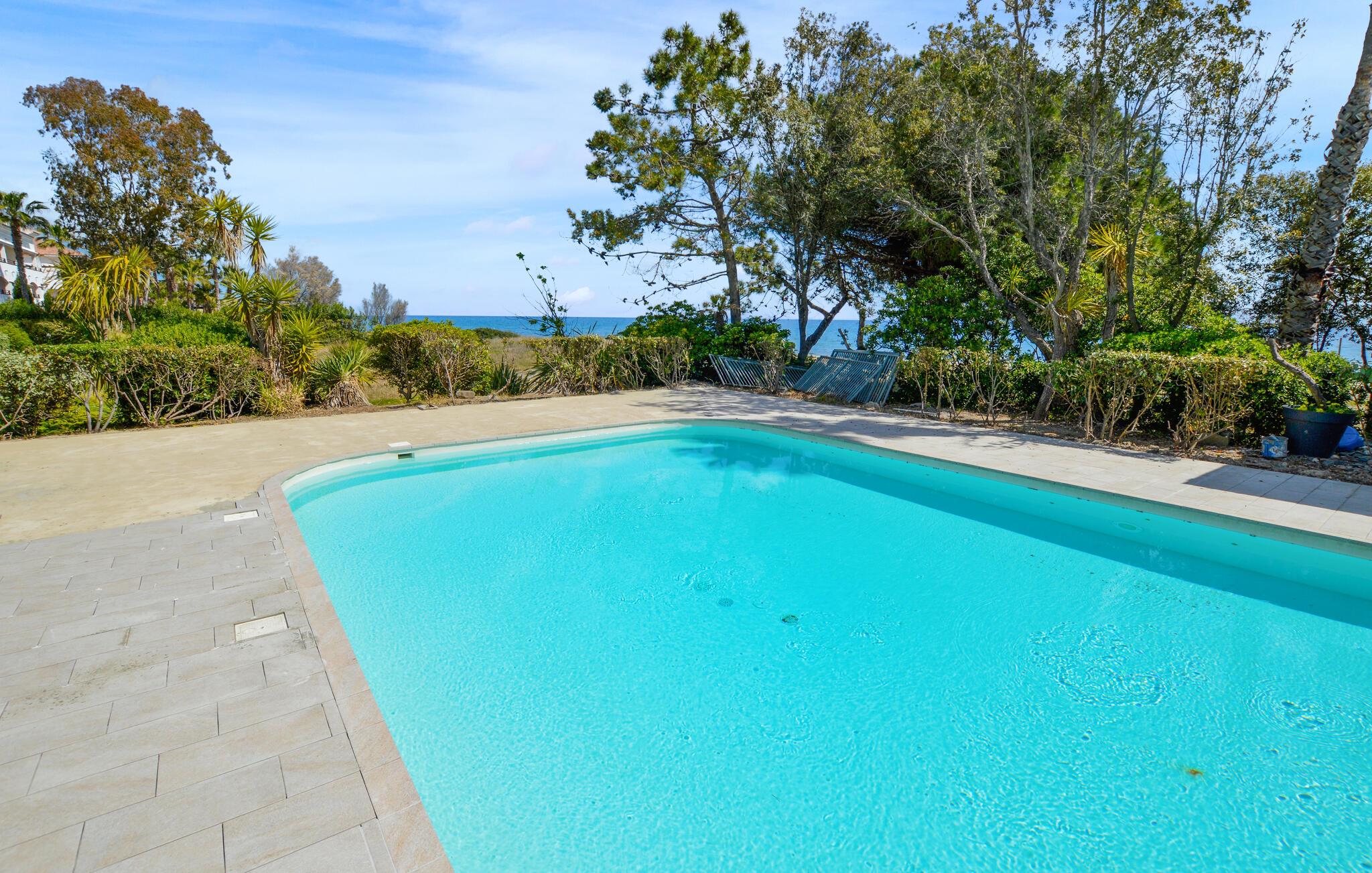 Genießen Sie eine sonnige Auszeit in dieser charmanten Ferienwohnung mit gemeinschaftlichem Pool am Strand.