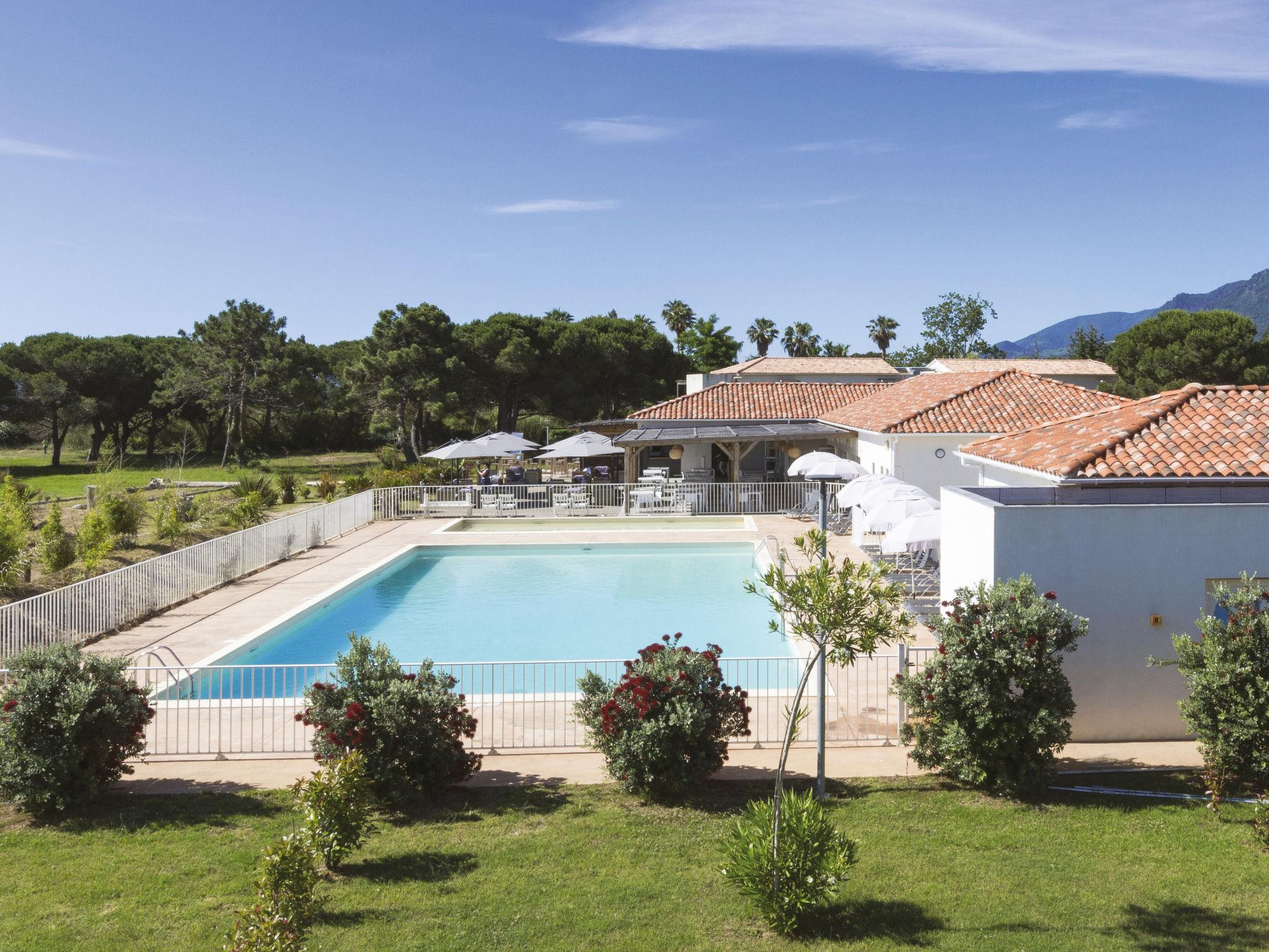 Ferienanlage "Acqua Bella/Acqua Linda", auf 2 Stockwerken. 33 Häuser im Ferienresort. 273 Wohnungen in der Residenz. Im Weiler L'Avillanella, 3 km vom Zentrum von Moriani-Plage, am Ortsrand, 8 km vom Zentrum von Folelli, 38 km vom Zentrum von Bastia, in einem Wohnquartier, 150 m vom Meer, 150 m vom Strand, direkter Zugang zum Strand. Zur Mitbenutzung: grosser Garten mit Rasen und Pflanzen, 2 Schwimmbäder eingezäunt (20 x 12 m, saisonale Verfügbarkeit: 15.Apr. - 15.Sep.). Kinderbecken, Boccia, Kinderspielplatz. In der Anlage: Empfang, Restaurant, Wireless LAN, Waschmaschine (zur Mitbenutzung, extra). Parkplatz. Einkaufsgeschäft 6.7 km, Supermarkt 3 km, Bushaltestelle "Moriani, Office de Tourisme" 2.5 km, Sandstrand 150 m. Golfplatz 21 km. Nahe gelegene Sehenswürdigkeiten: Village pittoresque de Poggio Mezzana, Randonnées, Parapente, Canyoning, Activités nautiques. Bitte beachten: Das Foto ist nur ein Hausbeispiel. Die Mietobjekte können sich in Wohnfläche, Raumaufteilung, Ausstattung und Einrichtung unterscheiden. WLAN nur an der Rezeption.