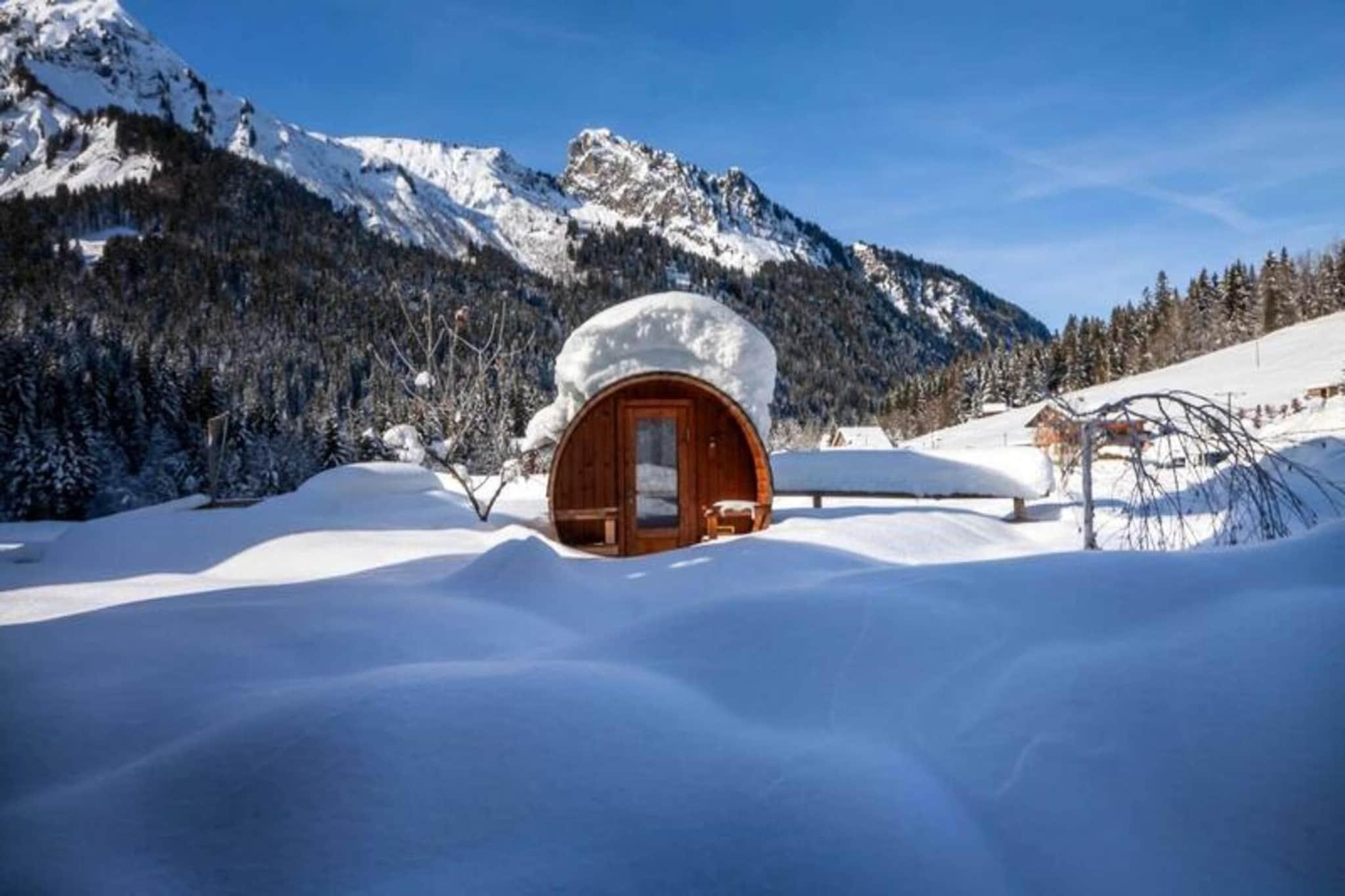 Dank der großzügigen Raumaufteilung bietet das Anwesen bequem Platz für bis zu acht Gäste auf drei Etagen. Das Chalet verfügt über vier Schlafzimmer, die jeweils mit zwei Einzelbetten ausgestattet sind, und drei gut ausgestattete Badezimmer mit Duschen und Toiletten. Das einladende Wohnzimmer verfügt über einen gemütlichen Wohnbereich mit Holzofen und Zugang zu einem Balkon mit malerischem Bergblick. Zu den weiteren Annehmlichkeiten gehören eine Garage für Skier und Fahrräder, ein Waschraum mit Waschmaschine und Trockner sowie ein Garten mit Sauna, Esstisch im Freien und Grill. Die Unterkunft bietet Hochgeschwindigkeits-Glasfaser-WLAN und grundlegende Dienstleistungen wie Bettwäsche- und Handtuchsets sowie die Endreinigung sind im Preis inbegriffen. Eingebettet im ruhigen und sonnenverwöhnten Vallée de la Manche genießt das Chalet eine ruhige Lage mit atemberaubendem Bergblick. Es liegt verkehrsgünstig neben einer Haltestelle des kostenlosen Shuttles und bietet einfachen Zugang zu den Skipisten des Resorts und den nahe gelegenen Sehenswürdigkeiten. Zwei örtliche Restaurants sind zu Fuß erreichbar und bieten den Gästen kulinarische Möglichkeiten. Das Gebiet ist Teil des Sommer-Multipass-Programms, das den Zugang zu einer Reihe von Outdoor-Aktivitäten wie Wandern und Radfahren ermöglicht. Zu den nächstgelegenen Verkehrsverbindungen gehören örtliche Busverbindungen und Zugang zu den wichtigsten Annehmlichkeiten des Resorts. Die Küche des Chalets ist komplett mit modernen Geräten ausgestattet, darunter ein Backofen, ein Herd und alle notwendigen Utensilien, um Mahlzeiten problemlos zuzubereiten. Gäste können das offene Design genießen, das die Küche nahtlos mit dem Wohn- und Essbereich verbindet. Das Heizsystem der Unterkunft sorgt das ganze Jahr über für einen komfortablen Aufenthalt und der dazugehörige Garten mit Sauna und Grill bietet den perfekten Ort zum Entspannen nach einem Tag voller Erkundungen in den Bergen.