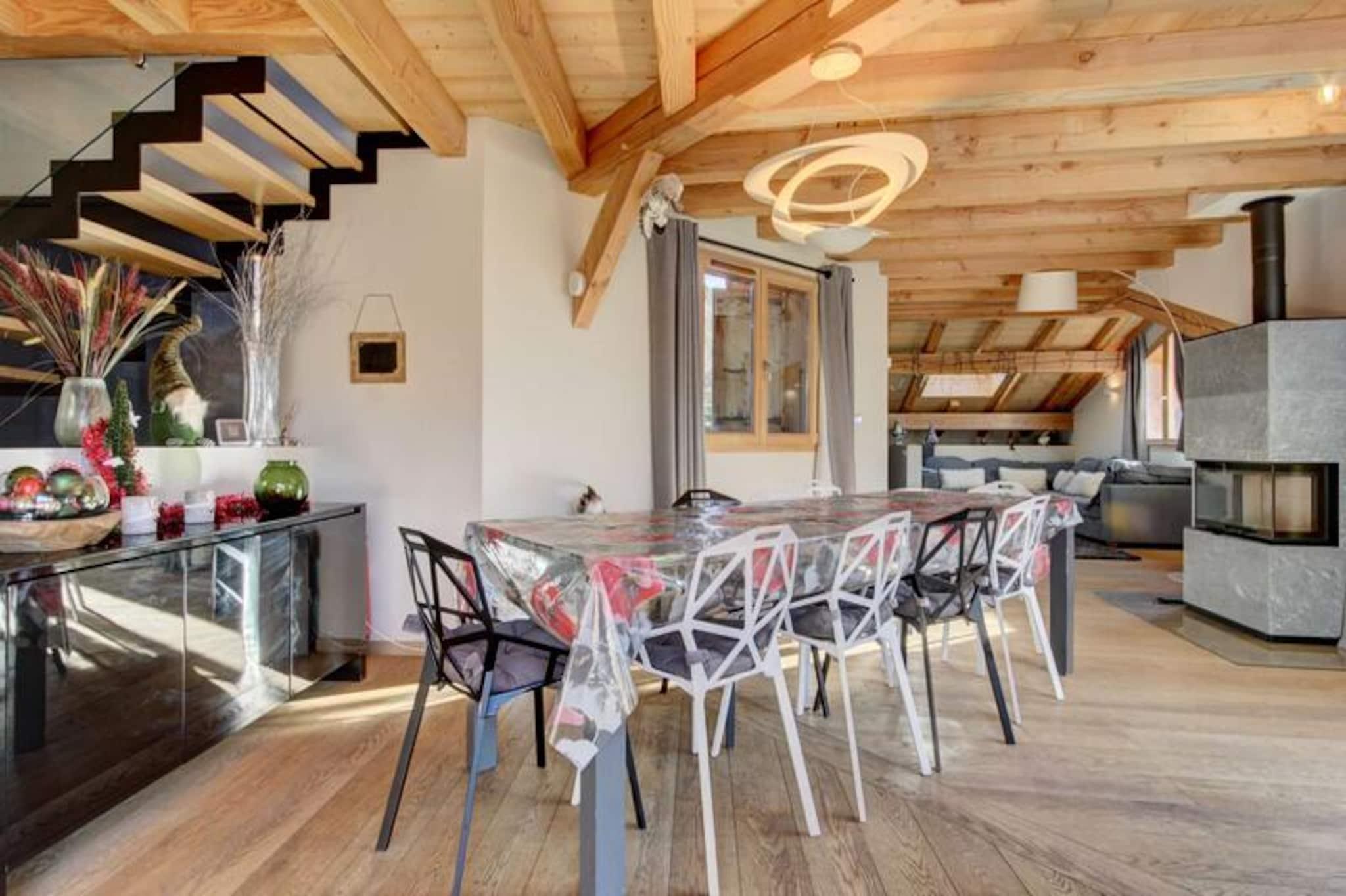 Im malerischen Alpendorf Morzine lädt Sie dieses außergewöhnliche 4-Sterne-Chalet ein, die perfekte Verbindung von Luxus und alpinem Charme zu erleben. Dank seiner erstklassigen Lage, nur wenige Schritte vom lebhaften Ortskern entfernt, genießen Sie atemberaubende Panoramablicke auf die umliegenden Gipfel und den quirligen Ferienort. Ob Winter oder Sommer – dieses Chalet bietet Ihnen einen unvergesslichen Rückzugsort im Herzen der französischen Alpen. \n\nDas durchdacht gestaltete Chalet erstreckt sich über mehrere Ebenen und bietet Komfort und Privatsphäre für bis zu zehn Gäste. Im Erdgeschoss befinden sich ein geräumiger Ski- und Mountainbike-Abstellraum, eine einladende Eingangshalle und vier stilvoll eingerichtete Schlafzimmer mit flexiblen Schlafmöglichkeiten. Das erste Obergeschoss bildet das Herzstück des Hauses: ein heller, offener Wohnbereich mit amerikanischer Küche, ein gemütliches Wohnzimmer mit Flachbildfernseher und Zugang zu einer sonnigen Terrasse, von der aus Sie die atemberaubende Alpenkulisse genießen können. Das Dachgeschoss beherbergt die luxuriöse Master-Suite mit eigenem Badezimmer, ausgestattet mit Dusche, Badewanne und WC. Für ultimative Entspannung bietet das Untergeschoss einen Fitnessraum, einen Swim-Spa, eine Sauna und eine Lounge mit Billardtisch und Bar. \n\nDie zentrale Lage von Morzine macht es im Winter zum idealen Ausgangspunkt für Ausflüge in das weitläufige Skigebiet Portes du Soleil und im Sommer zu einem Paradies für Outdoor-Fans. Erkunden Sie die nahegelegenen Wander- und Radwege oder nutzen Sie den Summer Multipass für unbegrenzten Zugang zu lokalen Aktivitäten. Nach einem erlebnisreichen Tag können Sie im Chalet in der Sauna entspannen oder auf der Terrasse einen Drink genießen, während die Sonne über den Bergen untergeht. Bettwäsche und Endreinigung sind inklusive – so ist ein reibungsloser und stressfreier Urlaub garantiert. \n\nOb Sie aufregende alpine Abenteuer oder eine ruhige Auszeit suchen, dieses Chalet ist die perfekte Wahl für unvergessliche Momente im Herzen der französischen Alpen.