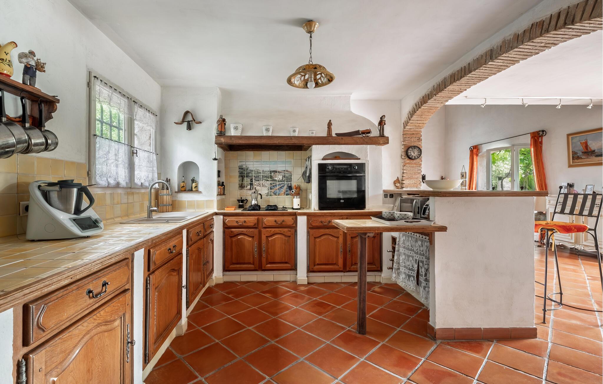 Willkommen in diesem großzügigen Urlaubsdomizil, in dem massive Holzbalken und eine liebevolle Dekoration eine gemütliche und freundliche Atmosphäre schaffen. Experimentieren Sie in der geräumigen Küche mit Kräutern der Provence und zelebrieren Sie die gemeinsame Zeit mit der Familie bei fröhlichen Mahlzeiten im offenen Wohnbereich.