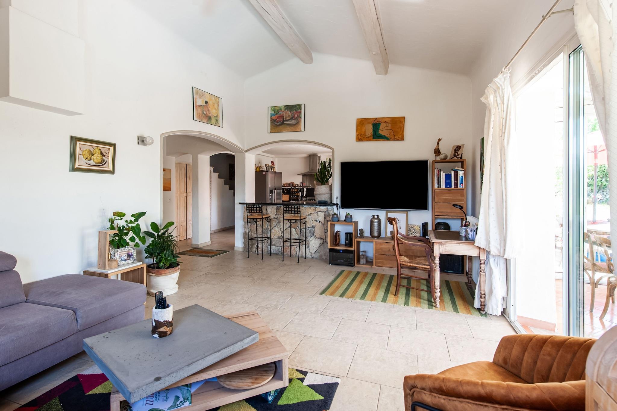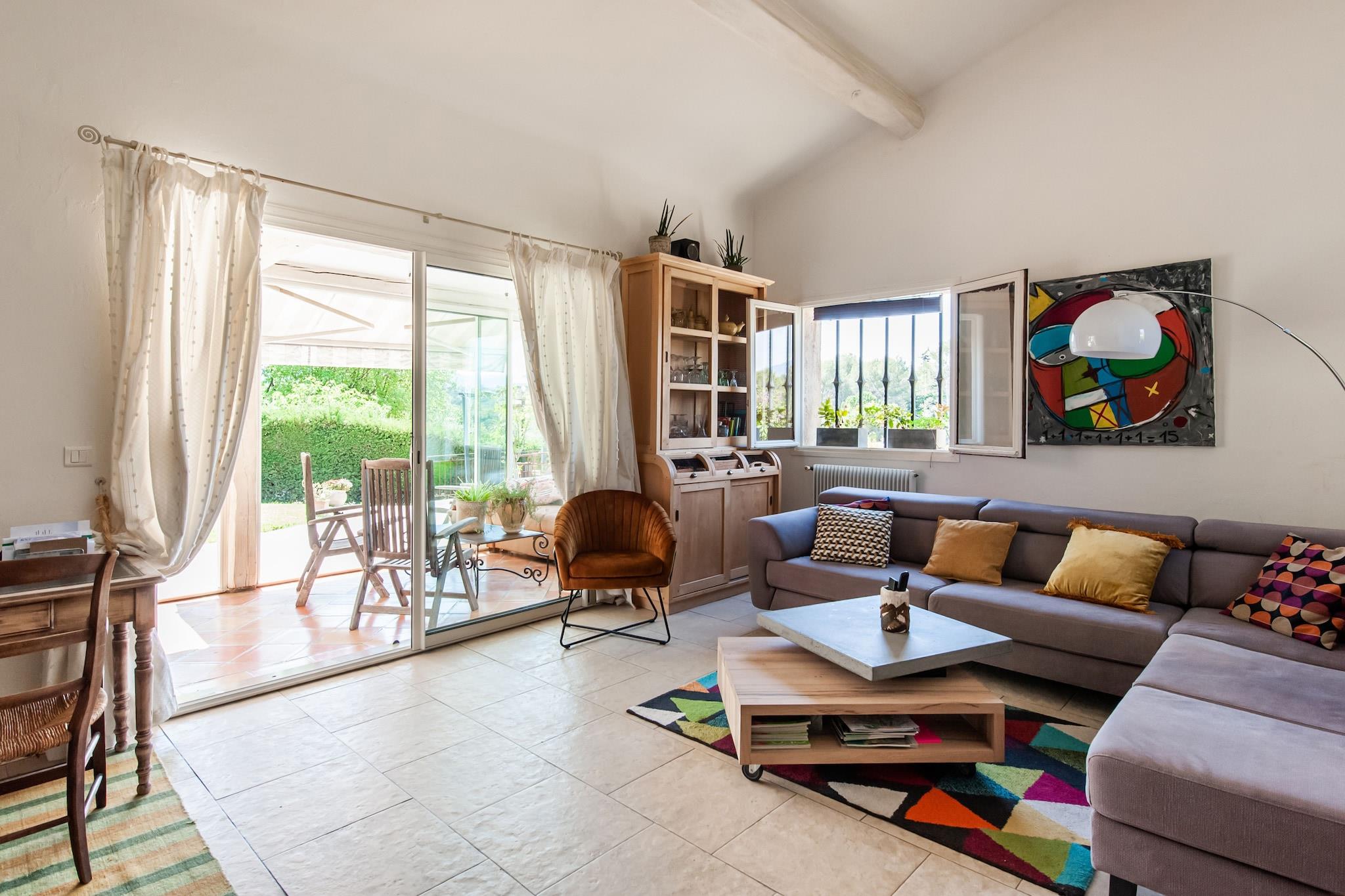 Diese charmante Villa in Mougins bietet einen ruhigen Rückzugsort für bis zu vier Gäste, umgeben von üppigem Grün und provenzalischem Charme. Mit zwei gemütlichen Schlafzimmern, einem geräumigen Wohnzimmer und einer gut ausgestatteten offenen Küche ist sie ideal für kleine Familien oder Freunde, die einen ruhigen Urlaub verbringen möchten. Der private Pool und der umzäunte Garten laden zum Entspannen ein, während die Terrasse und der Grillplatz die perfekte Kulisse für ein Essen im Freien unter dem Sternenhimmel bieten. Dank der günstigen Lage, nur 3 km von erstklassigen Restaurants wie La Place de Mougins und Le Petit Fouet sowie Supermärkten wie Carrefour Market Mougins Blanchisserie und Grand Frais Mougins entfernt, ist alles, was Sie brauchen, bequem zu erreichen. Golfbegeisterte können im renommierten Royal Mougins Golf Resort abschlagen, das nur 1 km entfernt ist, und der goldene Sandstrand Plages du Soleil erwartet Sie nur 8 km von Ihrer Haustür entfernt. Egal, ob Sie auf der Terrasse Wein trinken, mit den Kindern Tischtennis spielen oder die nahe Küste erkunden, diese Villa vereint Komfort, Natur und Bequemlichkeit für einen wirklich erholsamen Urlaub.