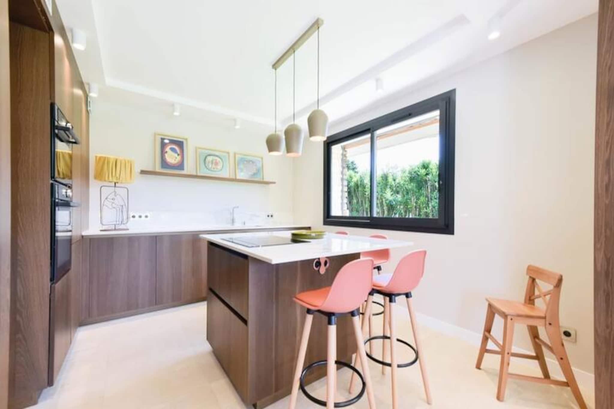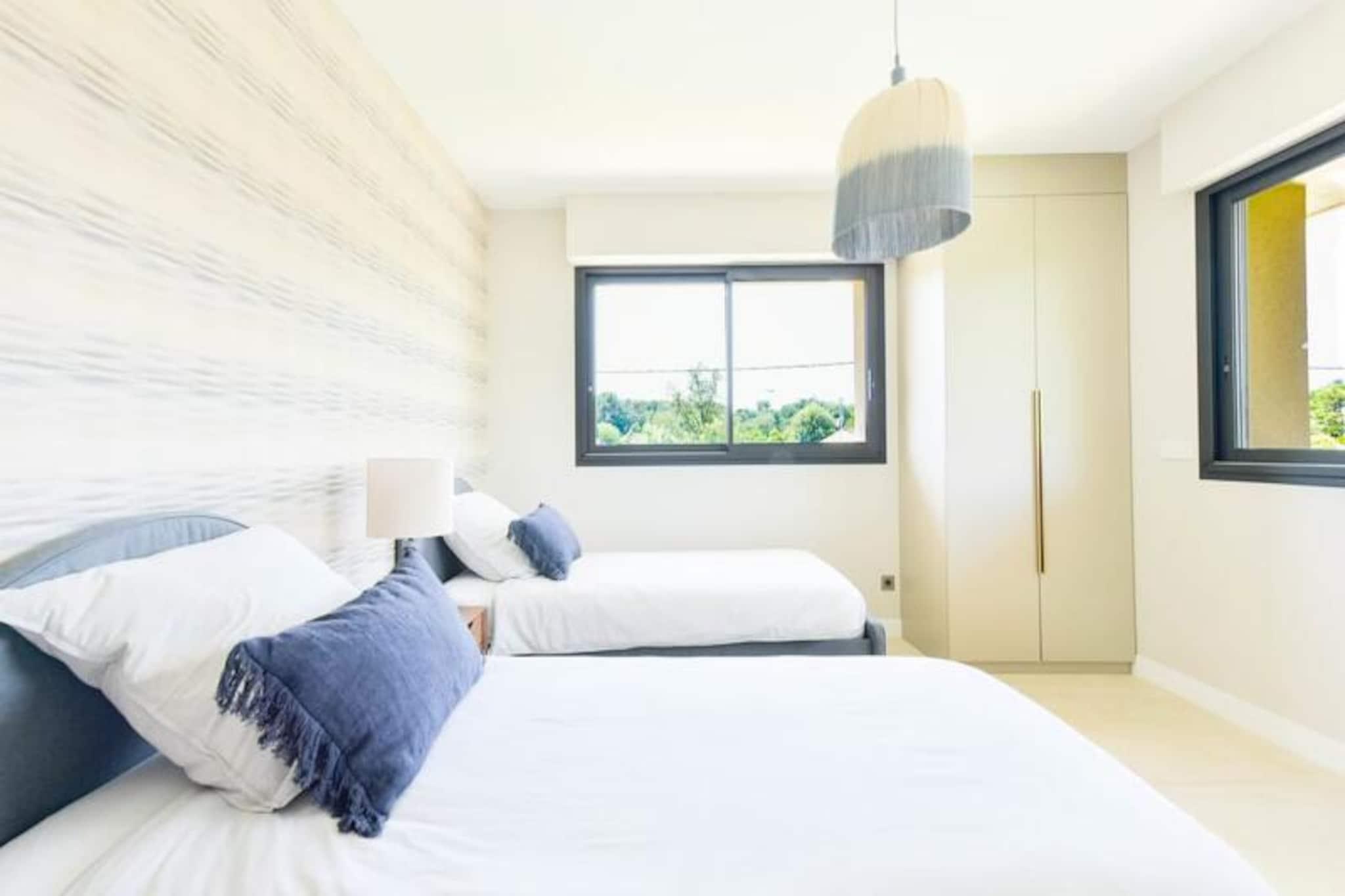 Versteckt in einer ruhigen Sackgasse im Herzen der Côte d’Azur bietet diese atemberaubende Villa mit sechs Schlafzimmern einen luxuriösen Rückzugsort für Familien und Gruppen, die Entspannung und Abenteuer suchen. Umgeben von üppigem Grün und durchflutet von mediterranem Sonnenschein, schaffen das weitläufige Grundstück und das durchdachte Design des Anwesens eine Atmosphäre der Ruhe und des Genusses. Ob Sie am glitzernden 10 x 4 m großen Pool entspannen oder im Essbereich im Freien grillen – jeder Moment hier ist eine Hommage an den Charme der Côte d’Azur. Kinder werden von dem bezaubernden Holzspielhaus zwischen den Bäumen begeistert sein, das ihrem Urlaubserlebnis einen Hauch von Magie verleiht. \n\nIm Inneren der Villa erwarten Sie hochwertige Materialien und moderne Annehmlichkeiten, die keine Wünsche offen lassen. Im Obergeschoss befinden sich fünf wunderschön eingerichtete Schlafzimmer, darunter drei mit eigenem Bad und privaten Terrassen mit Blick auf den Garten. Die Master-Suite im Erdgeschoss bietet einen großzügigen Rückzugsort mit luxuriösem Badezimmer und Ankleidezimmer. Die offene Küche, der Essbereich und das Wohnzimmer bieten mit ihrer stilvollen Einrichtung und dem Smart-TV den perfekten Rahmen für gesellige Stunden. Die vollklimatisierte Villa mit WLAN garantiert Komfort und Bequemlichkeit während Ihres gesamten Aufenthalts. Nur wenige Minuten von Cannes und Nizza entfernt, ist die Villa der ideale Ausgangspunkt, um die Highlights der Region zu entdecken. Naturliebhaber werden den nahegelegenen Valmasque-Park und den Teich von Fontmerle zu schätzen wissen, während Golffreunde eine Runde auf dem nur eine kurze Autofahrt entfernten Golfplatz Cannes/Mougins genießen können. Geschäfte des täglichen Bedarfs und öffentliche Verkehrsmittel sind fußläufig erreichbar, sodass Sie alles Notwendige bequem erreichen können. Mit ihrer Kombination aus Eleganz, Komfort und der Nähe zu den schönsten Orten der Côte d’Azur verspricht diese Villa einen unvergesslichen Aufenthalt, an dem Sie wertvolle Erinnerungen sammeln werden.