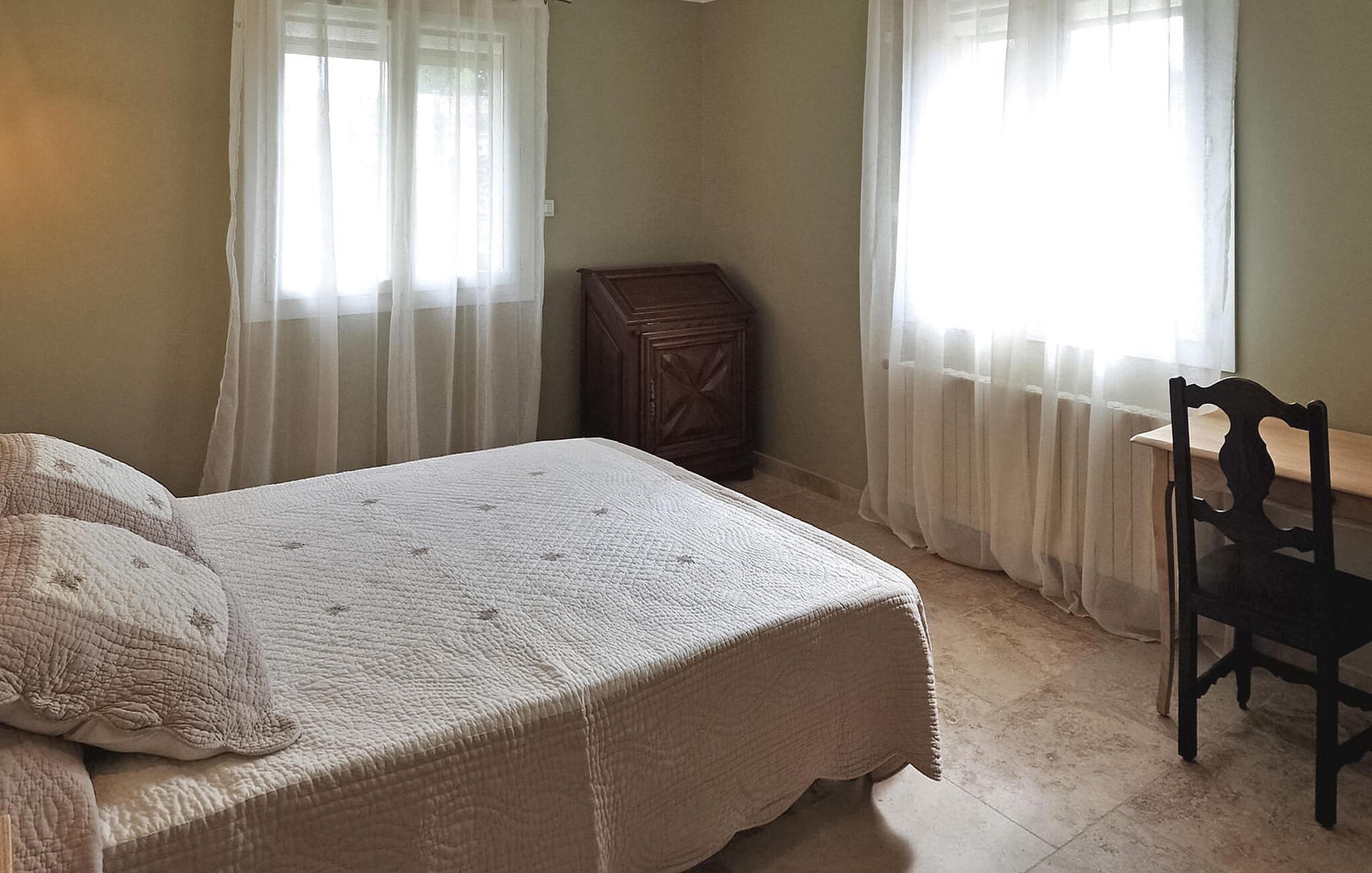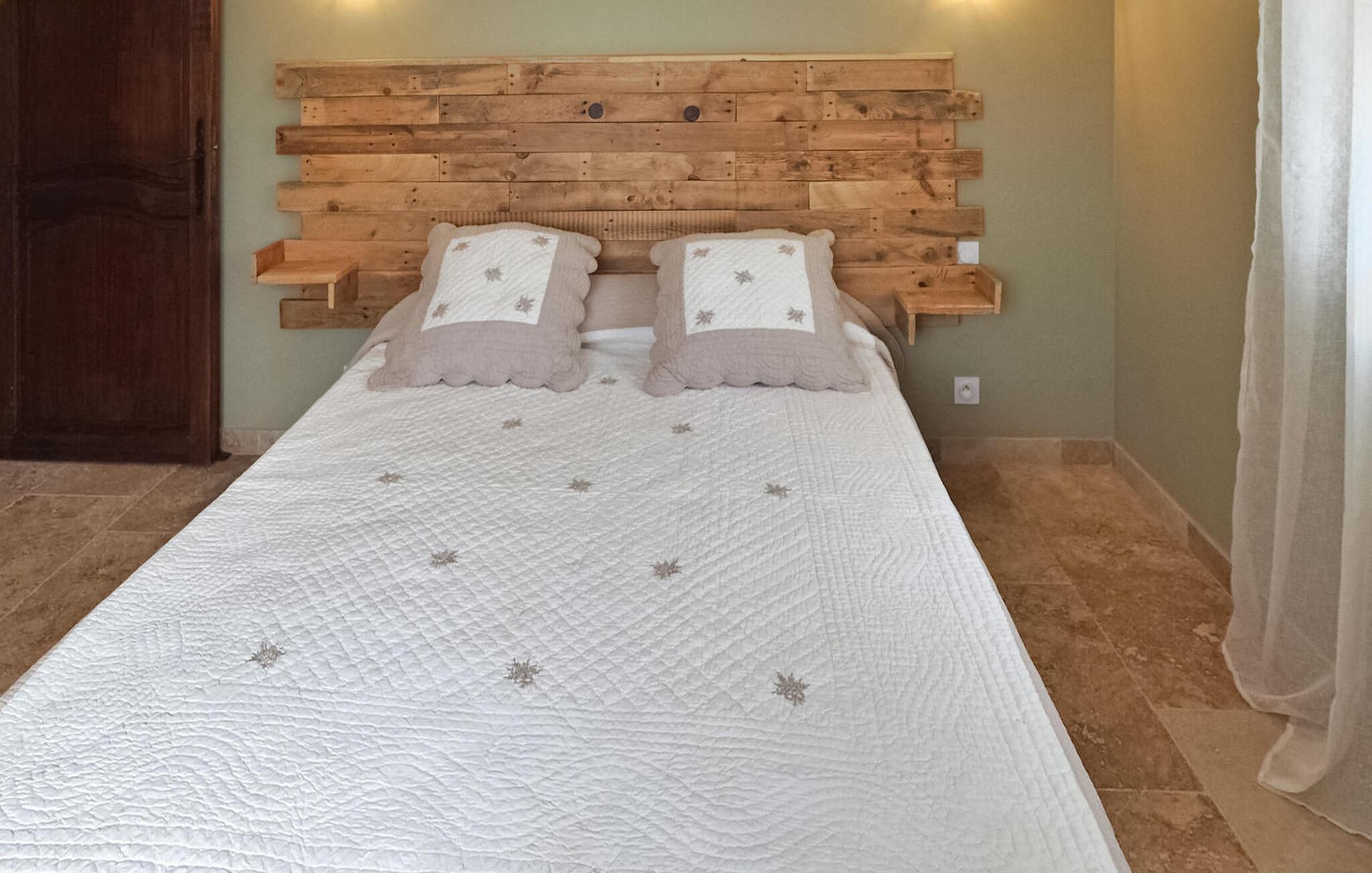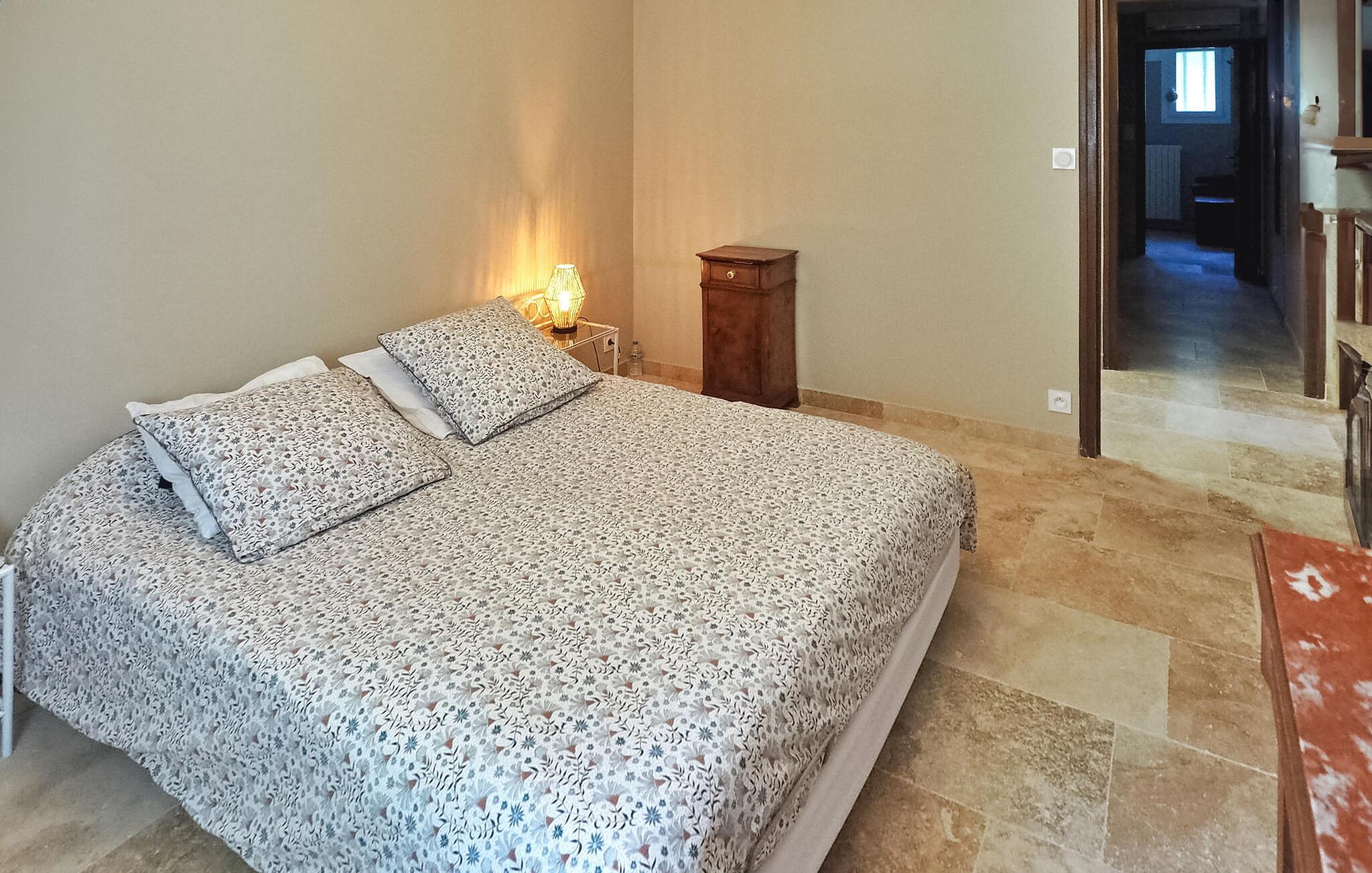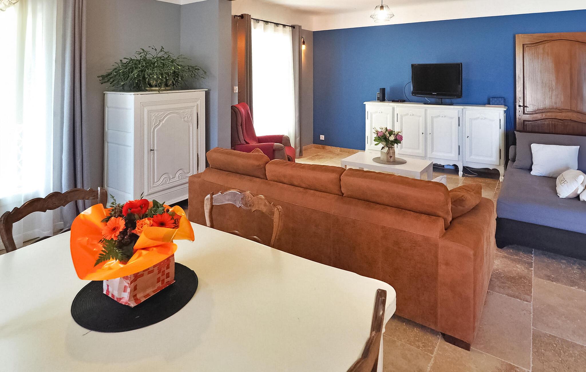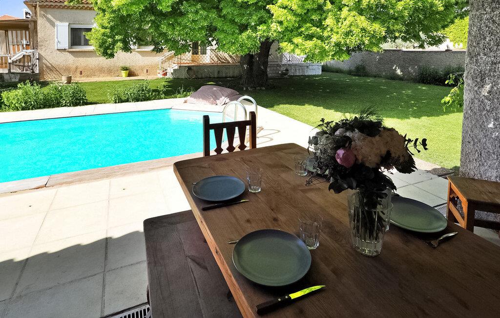 Diese einstöckige Villa, neu renoviert und zentral in Mouriès gelegen, bietet einen angenehmen Aufenthalt mit einem privaten Pool im Garten. Der Garten der Villa liegt nur wenige Gehminuten von allen Geschäften entfernt und wird von einer Linde geschmückt, die von den Urgroßvätern des Eigentümers gepflanzt wurde und erfrischenden Schatten spendet. Die Villa verfügt über eine offene Küche neben dem Wohnbereich, die mit modernen Geräten ausgestattet ist. Der Wohn-/Essbereich verfügt über einen dekorativen Kamin, einen Esstisch mit Stühlen und bequeme Sofas zum Entspannen. Die Schlafzimmer bieten Platz für sechs Personen und verfügen über ein gemeinsames Duschbad und eine separate Toilette. Draußen bietet eine überdachte Terrasse am Pool einen einladenden Raum mit Sitzgelegenheiten und einem praktischen amerikanischen Kühlschrank. Am Pool stehen zwei Liegestühle und große Hocker zur Verfügung. Der private Pool (6m x 4m, 1,6m tief) ist über eine Leiter erreichbar. Bitte beachten Sie: Die Villa liegt verkehrsgünstig in der Nähe von Geschäften und zwei Klimaanlagen in den Fluren sorgen für ein angenehmes Raumklima. Da ein Teil des Zauns niedrig ist, sind nur kleine Hunde erlaubt. Katzen sind aus Allergiegründen nicht erlaubt. Parkmöglichkeiten gibt es auf der öffentlichen Autobahn. Die Villa liegt im Zentrum des Dorfes Mouriès in den Alpilles. Alle Geschäfte fußläufig erreichbar.