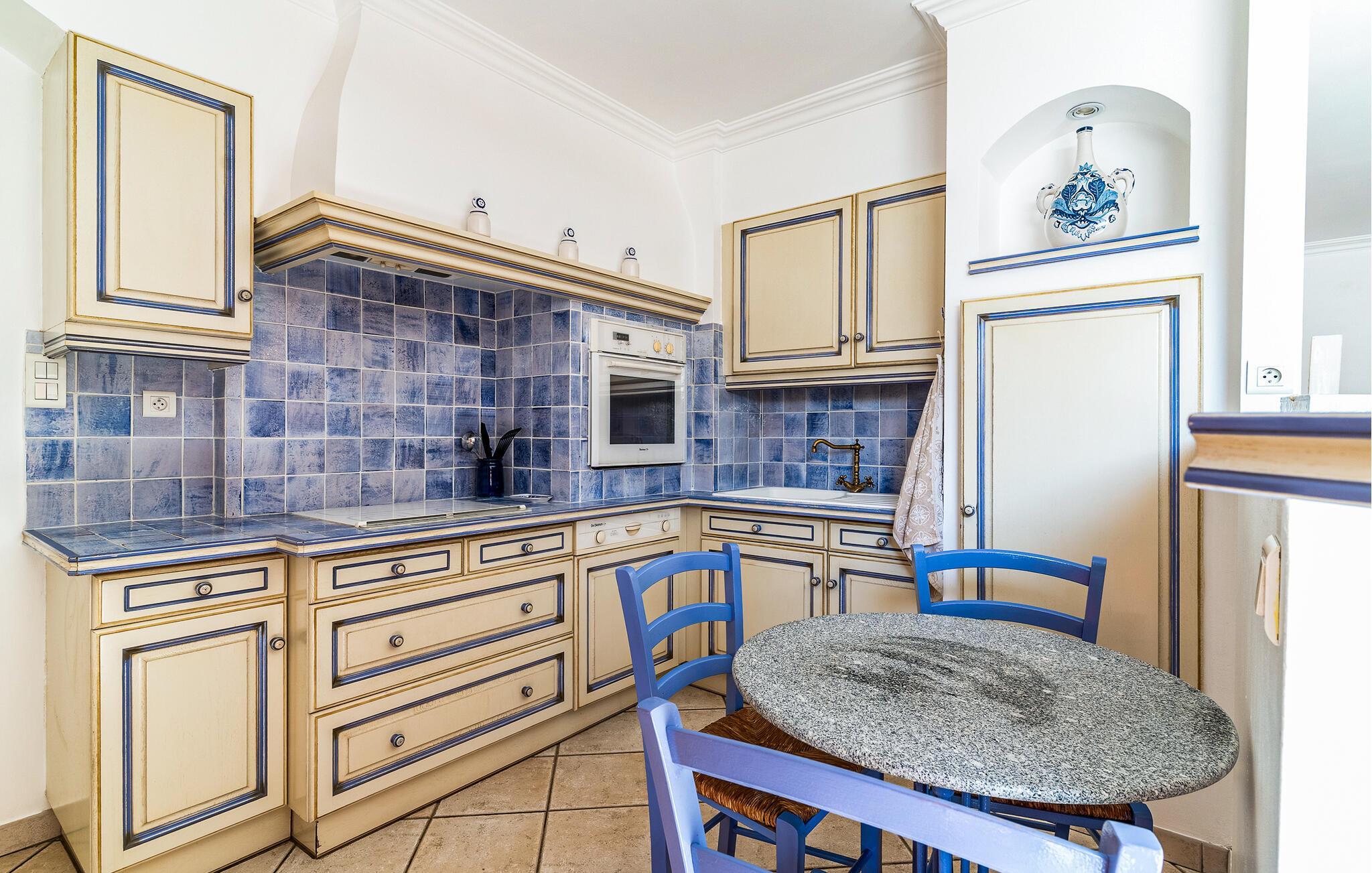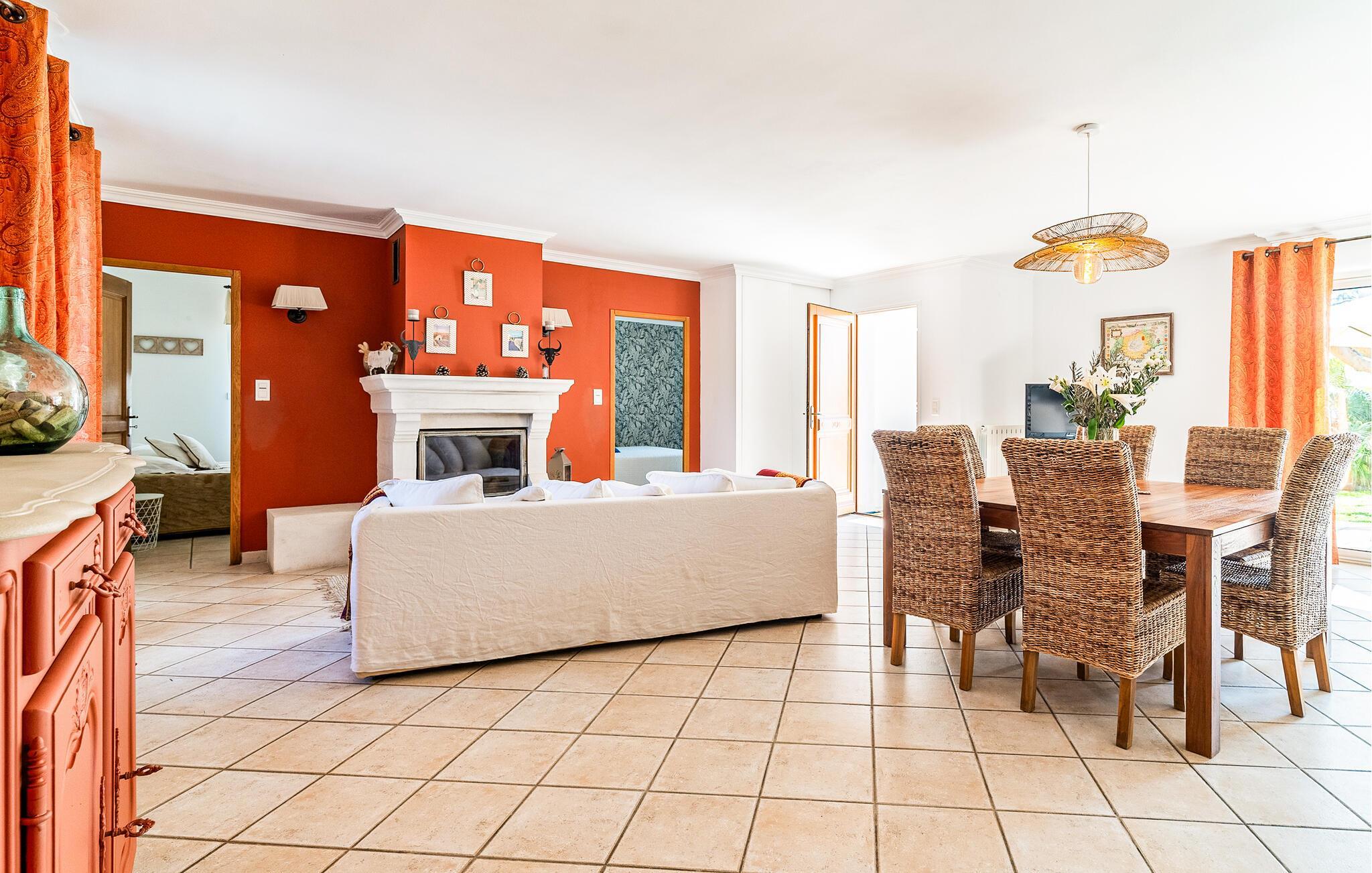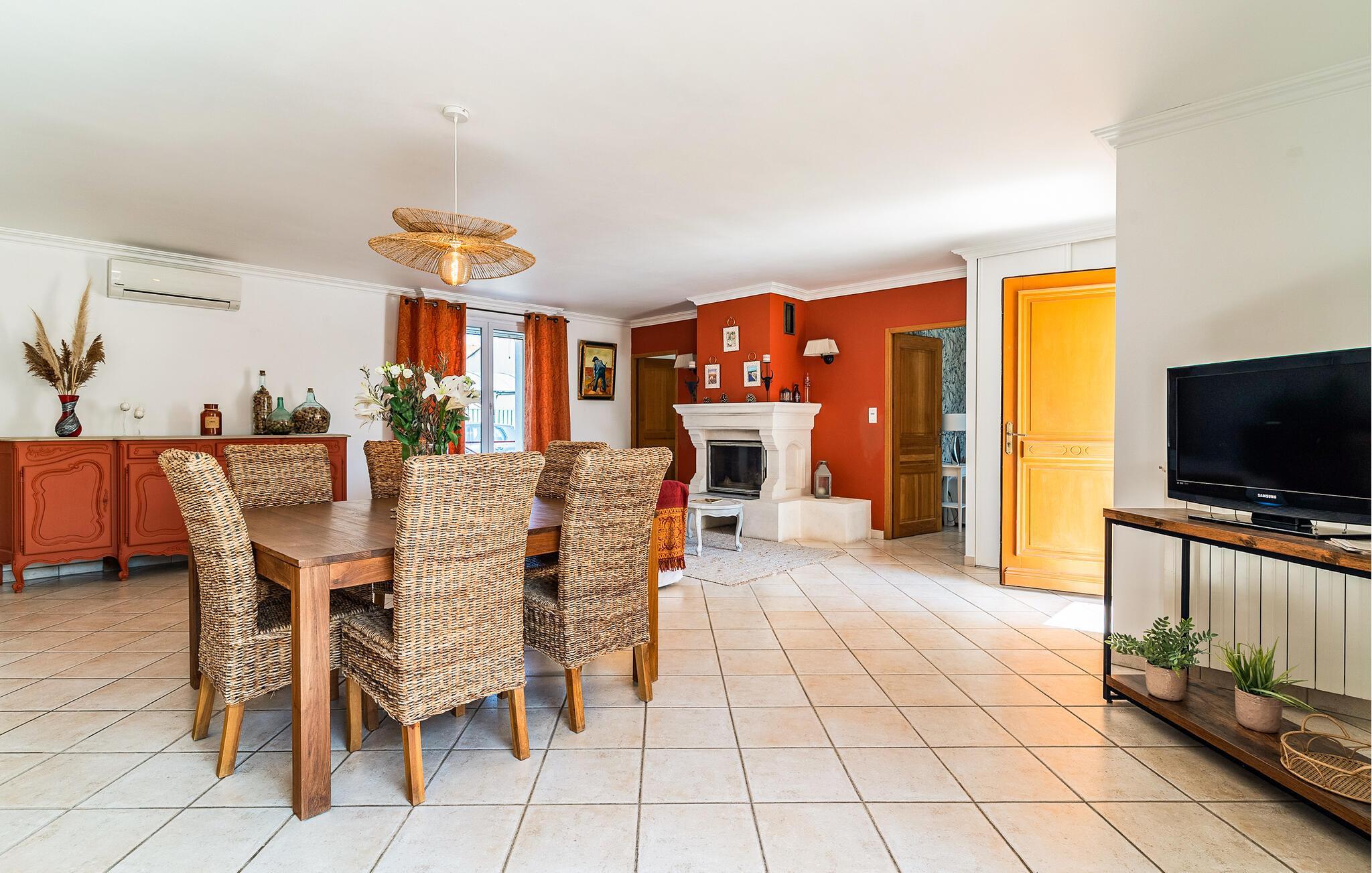 Dieses südorientierte Ferienhaus begrüßt Sie in ruhiger Nachbarschaft und bietet Ihnen eine gemütliche Basis für einen erlebnisreichen Urlaub in der Provence. Zaubern Sie kulinarische Köstlichkeiten in der geräumigen Landhausküche und nehmen Sie am stilvollen Esstisch Platz. Genießen Sie das behagliche Ambiente im Wohnzimmer und entspannen Sie nach einem langen Tag auf dem einladenden Sofa.