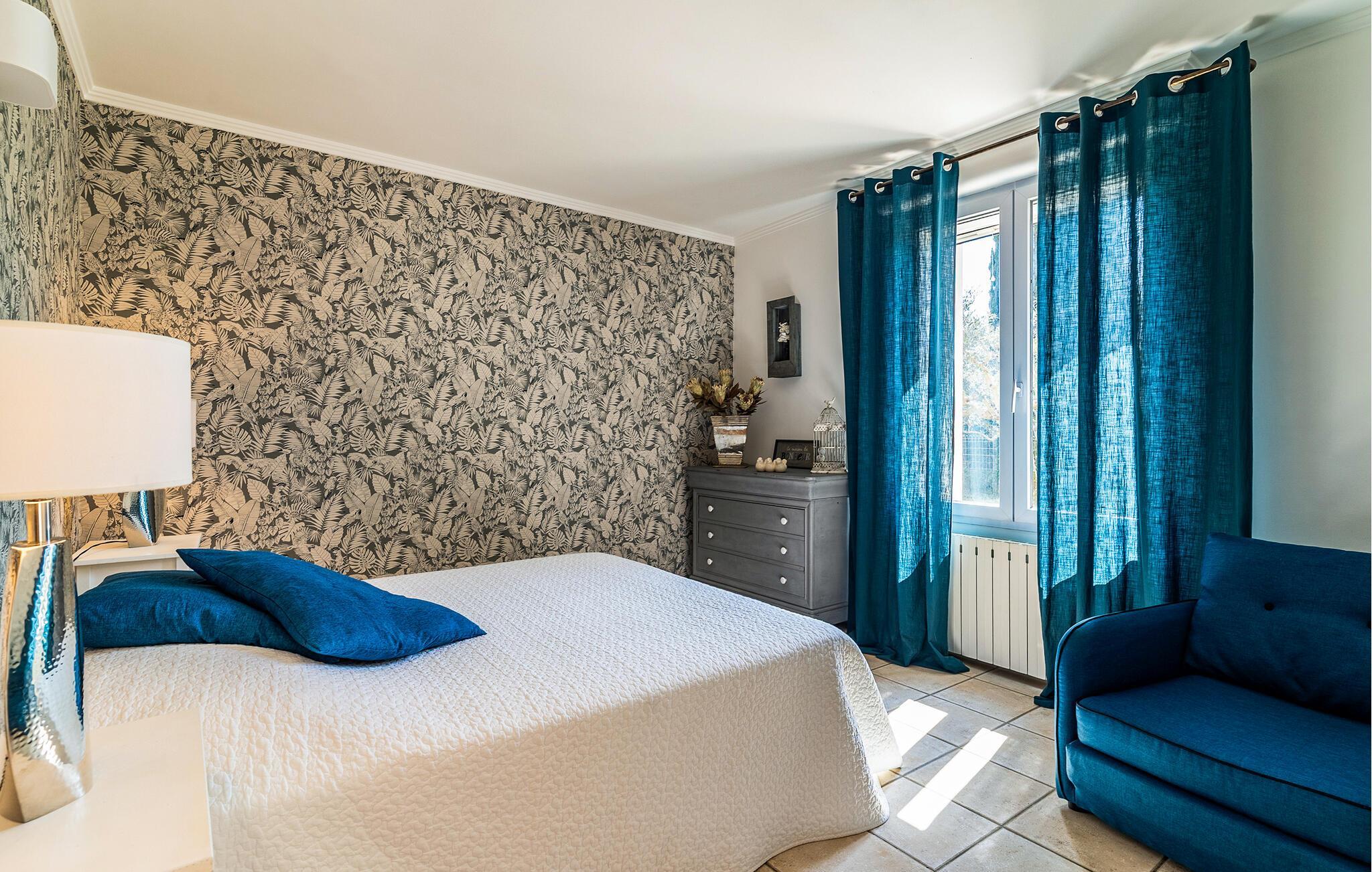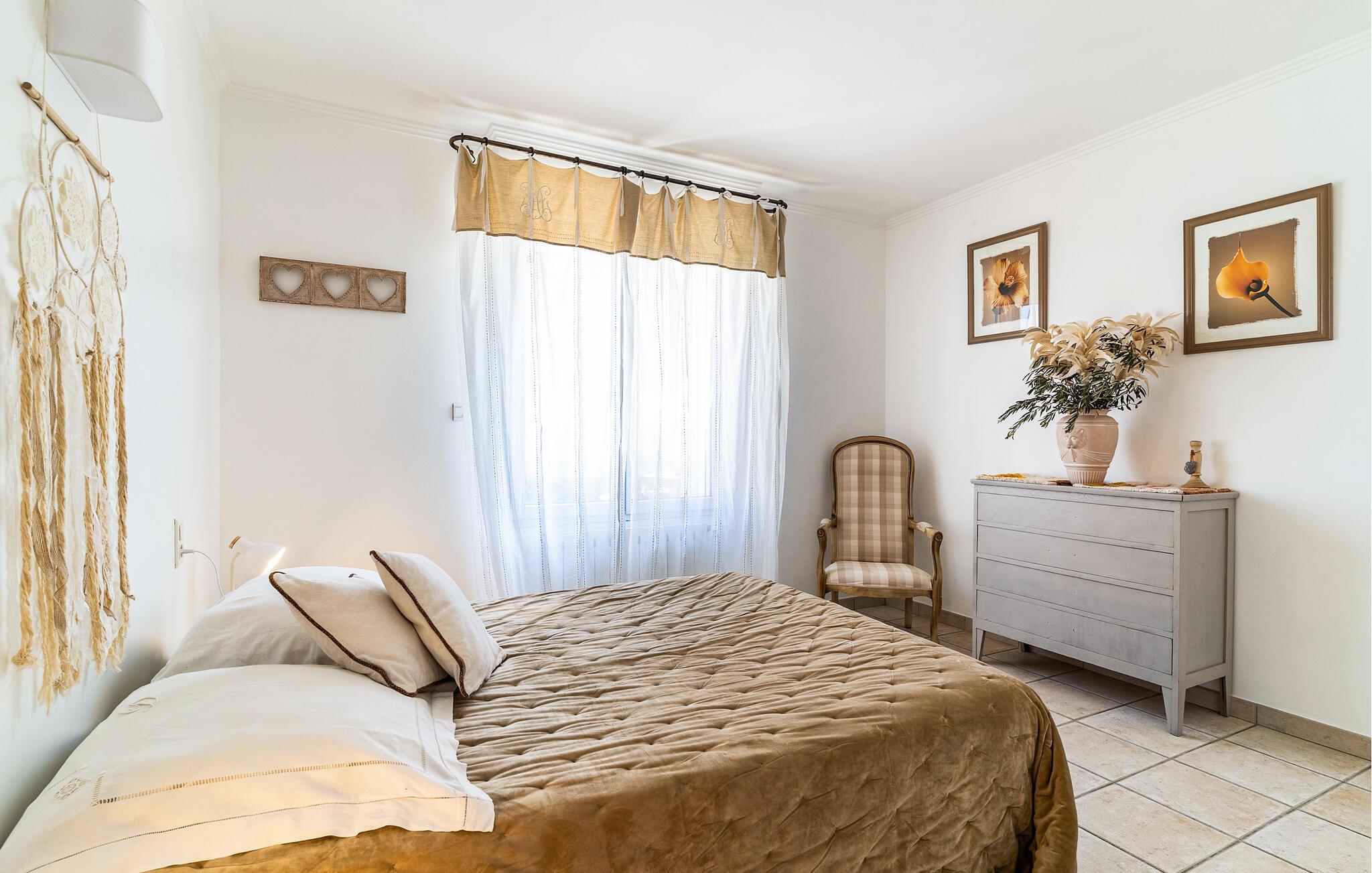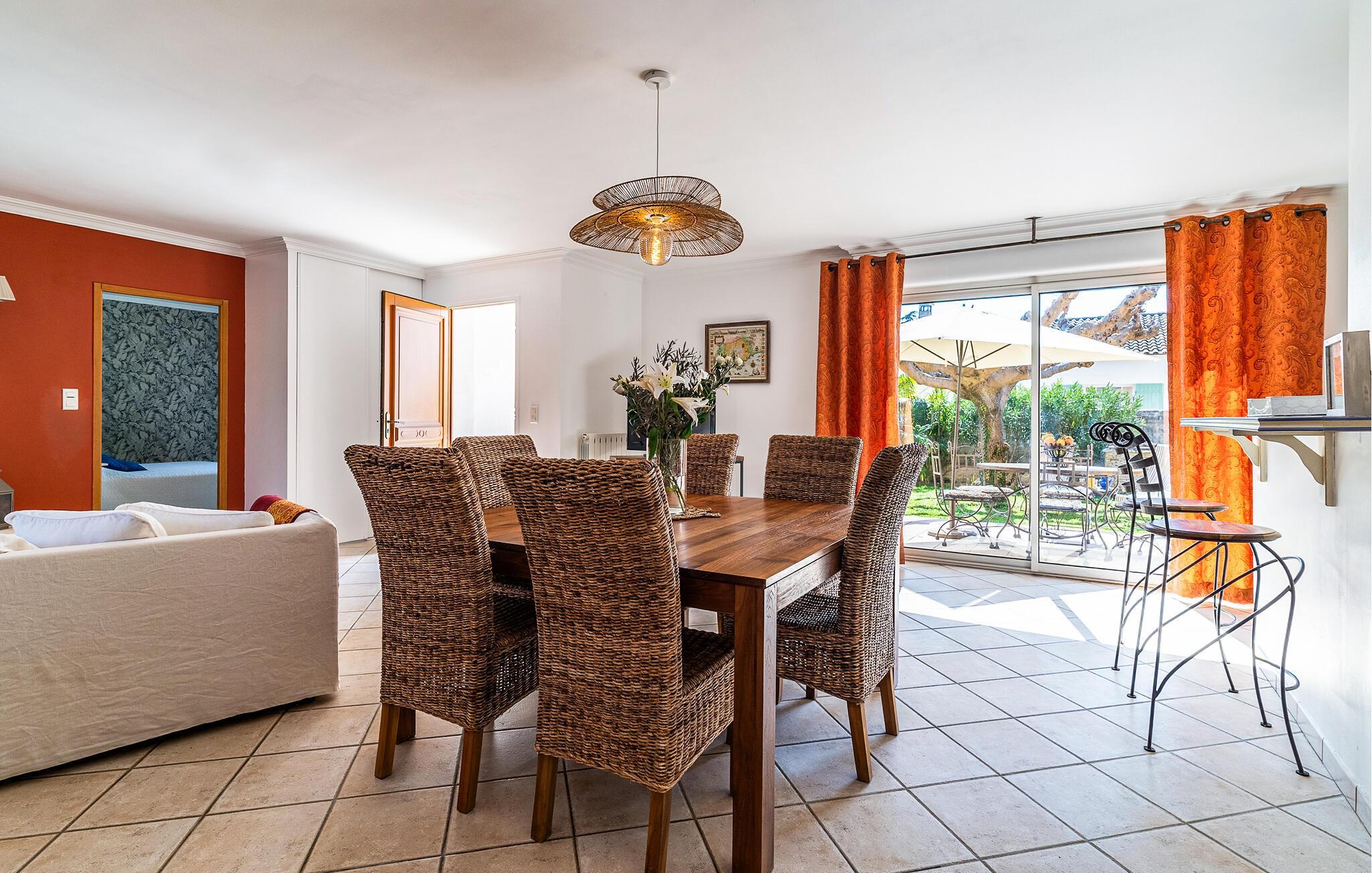 Dieses südorientierte Ferienhaus begrüßt Sie in ruhiger Nachbarschaft und bietet Ihnen eine gemütliche Basis für einen erlebnisreichen Urlaub in der Provence. Zaubern Sie kulinarische Köstlichkeiten in der geräumigen Landhausküche und nehmen Sie am stilvollen Esstisch Platz. Genießen Sie das behagliche Ambiente im Wohnzimmer und entspannen Sie nach einem langen Tag auf dem einladenden Sofa.
