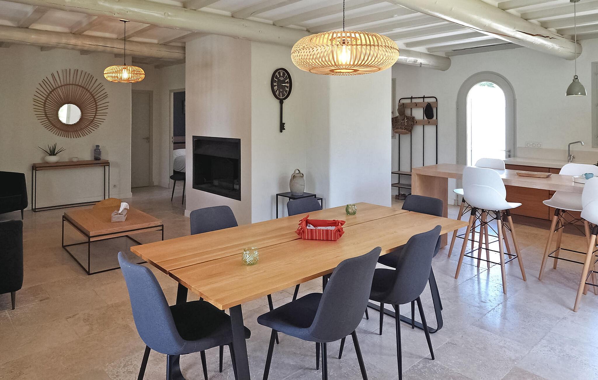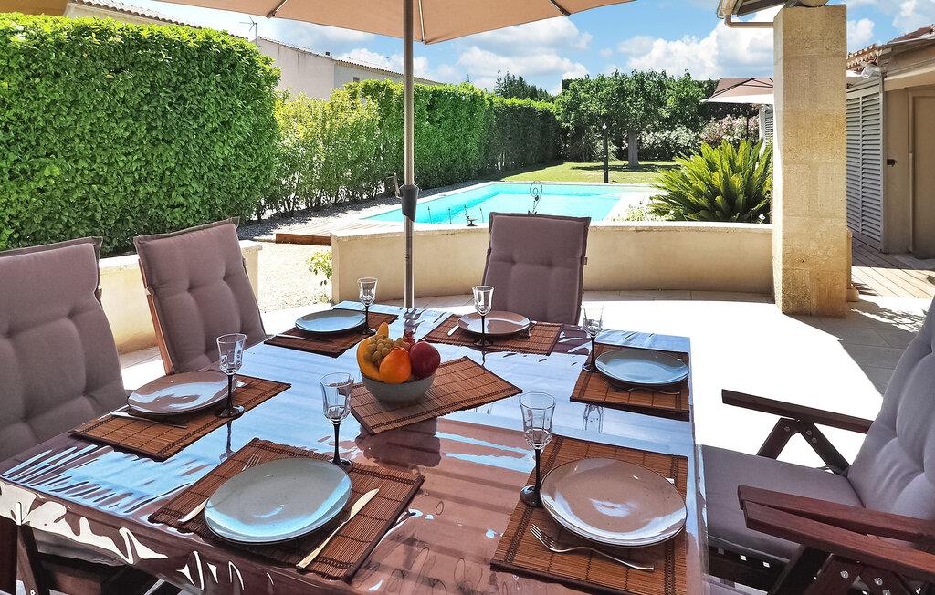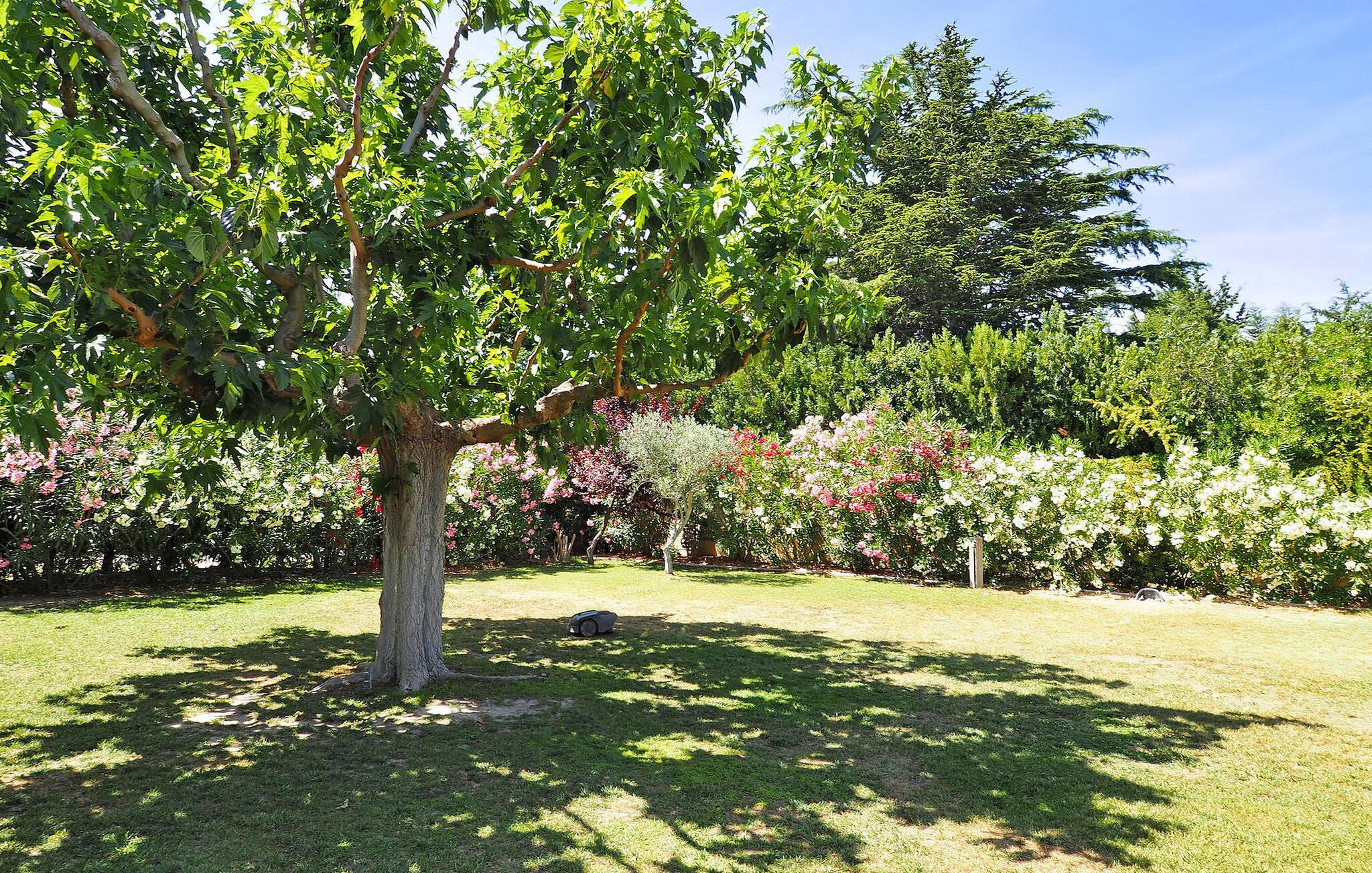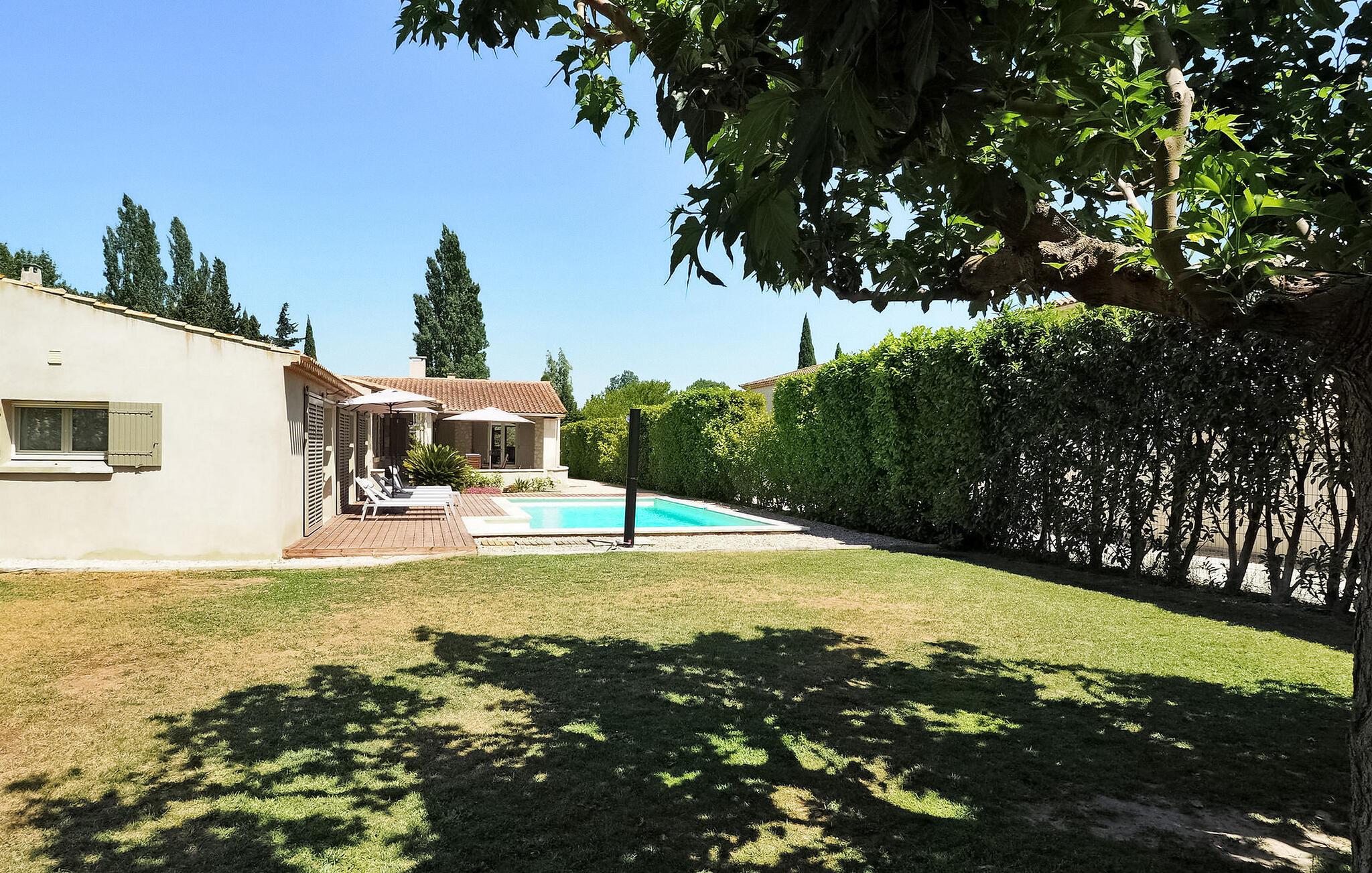 Das Ferienhaus Paradou in Alpilles, Provence, liegt in der Nähe des Dorfzentrums. Dieses einstöckige Anwesen verfügt über große Erkerfenster, die zu einer überdachten Terrasse und einem privaten Poolbereich führen. Das Haus verfügt über eine klimatisierte Küche mit zentraler Kochinsel, einen Essbereich und eine TV-Lounge, die jeweils ebenfalls klimatisiert sind. Die Küche ist mit diversen Geräten ausgestattet. Die klimatisierten Schlafzimmer verfügen alle über ein eigenes Bad. Im Außenbereich verfügt das Anwesen über einen privaten Swimmingpool (9,5 x 4,5 m), Liegestühle, eine Solardusche und eine Speiseterrasse. Bewundern Sie den Brunnen mit seinen Fischen auf dem Parkplatz. Seien Sie jedoch vorsichtig, wenn sich kleine Kinder in der Nähe des Brunnens aufhalten. Der autonome Rasenmäher darf während seiner Mährunde nicht bewegt oder behindert werden, das Besteigen ist selbstverständlich verboten. Das Haus liegt ideal an der Kreuzung aller Gemeinden der Alpilles, um die Alpilles zu entdecken. Paradou ist ein charmantes, renoviertes, ruhiges Dorf, der Verkehr ist dort beruhigt, Radwege und ein Fahrradverleih sind vor Ort. Ausgangspunkt der Wanderung und Zugang zum Alpilles-Massiv vom Dorf aus. Massif du Luberon etwa 1 Autostunde im Osten und Nîmes im Westen. Die Strände von Saintes-Maries-de-la-Mer sind 60 km entfernt. In der Nähe im Ort: Bäcker, Metzger, Supermarkt, Bar, Fahrradverleih, Friseur, Dienstagmorgenmarkt, Veranstaltungen in der Sommersaison.