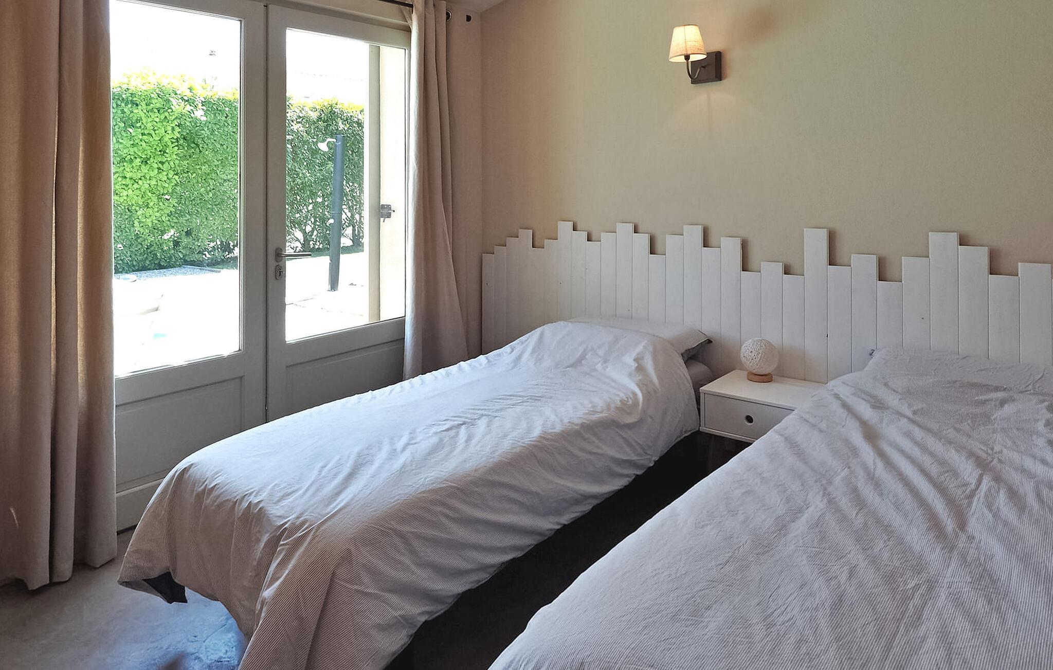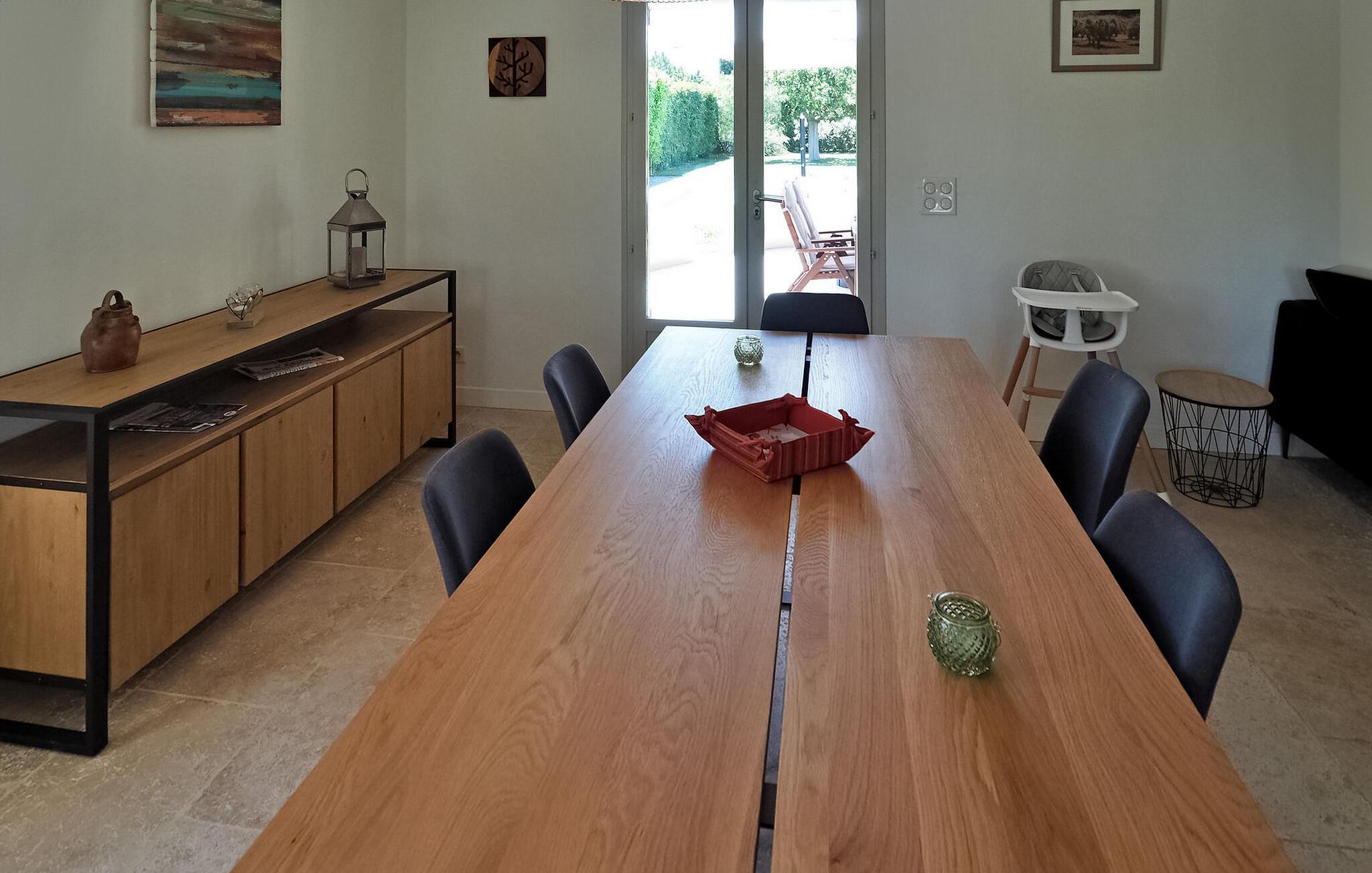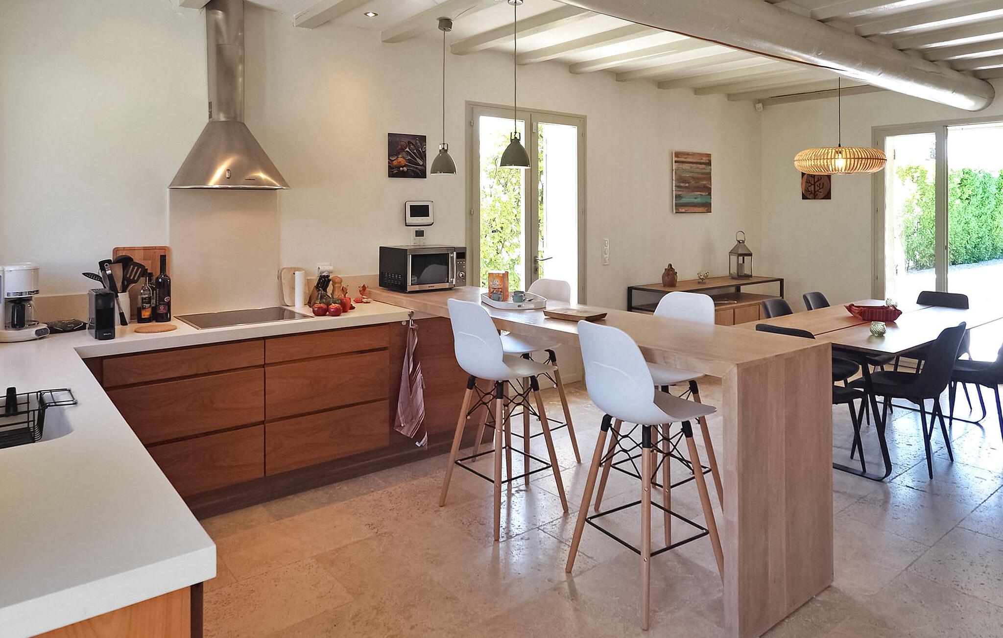 Das Ferienhaus Paradou in Alpilles, Provence, liegt in der Nähe des Dorfzentrums. Dieses einstöckige Anwesen verfügt über große Erkerfenster, die zu einer überdachten Terrasse und einem privaten Poolbereich führen. Das Haus verfügt über eine klimatisierte Küche mit zentraler Kochinsel, einen Essbereich und eine TV-Lounge, die jeweils ebenfalls klimatisiert sind. Die Küche ist mit diversen Geräten ausgestattet. Die klimatisierten Schlafzimmer verfügen alle über ein eigenes Bad. Im Außenbereich verfügt das Anwesen über einen privaten Swimmingpool (9,5 x 4,5 m), Liegestühle, eine Solardusche und eine Speiseterrasse. Bewundern Sie den Brunnen mit seinen Fischen auf dem Parkplatz. Seien Sie jedoch vorsichtig, wenn sich kleine Kinder in der Nähe des Brunnens aufhalten. Der autonome Rasenmäher darf während seiner Mährunde nicht bewegt oder behindert werden, das Besteigen ist selbstverständlich verboten. Das Haus liegt ideal an der Kreuzung aller Gemeinden der Alpilles, um die Alpilles zu entdecken. Paradou ist ein charmantes, renoviertes, ruhiges Dorf, der Verkehr ist dort beruhigt, Radwege und ein Fahrradverleih sind vor Ort. Ausgangspunkt der Wanderung und Zugang zum Alpilles-Massiv vom Dorf aus. Massif du Luberon etwa 1 Autostunde im Osten und Nîmes im Westen. Die Strände von Saintes-Maries-de-la-Mer sind 60 km entfernt. In der Nähe im Ort: Bäcker, Metzger, Supermarkt, Bar, Fahrradverleih, Friseur, Dienstagmorgenmarkt, Veranstaltungen in der Sommersaison.