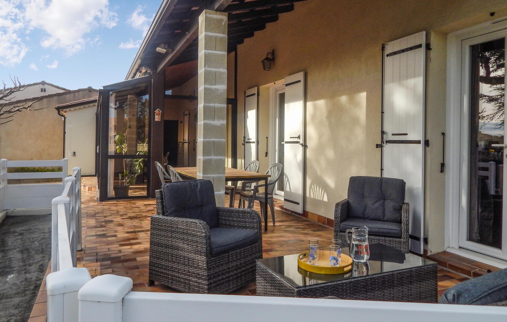 Freuen Sie sich auf einen erholsamen Urlaub in diesem komfortablen Ferienhaus mit Pool.