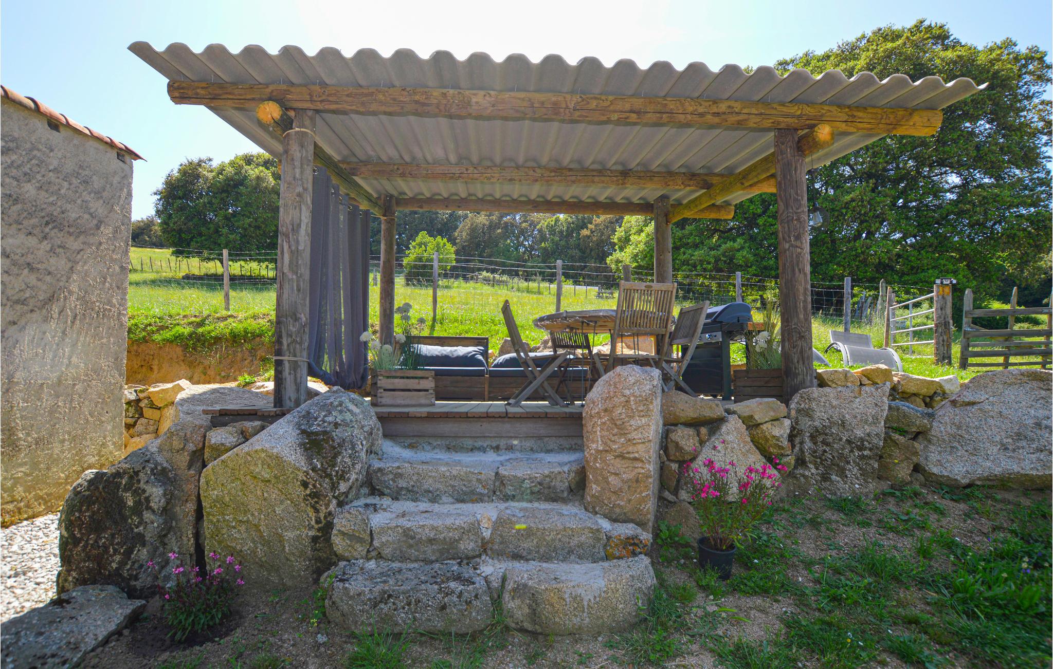 Entspannen Sie in den Gartenmöbeln auf der überdachten Terrasse und genießen Sie viele angenehme Stunden im Freien. Das Haus liegt ideal im Herzen der Macchia, umgeben von Feldern. In unmittelbarer Nähe des Hauses finden Sie verschiedene Aktivitäten, wie Schwimmen im Fluss oder im Meer, Wandern, Reiten oder Golf. Erleben Sie das Vergnügen der Energieunabhängigkeit dank einer Solaranlage. Alles wurde so konzipiert, dass Sie einige Ihrer kleinen Gewohnheiten durchkreuzen können, ohne den Alltag zu stören.