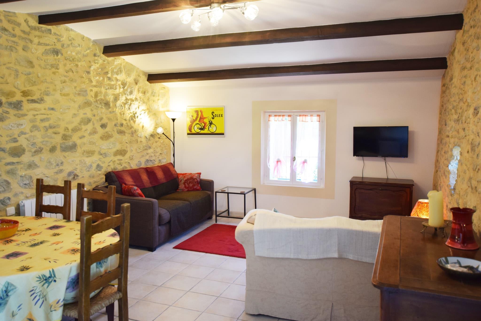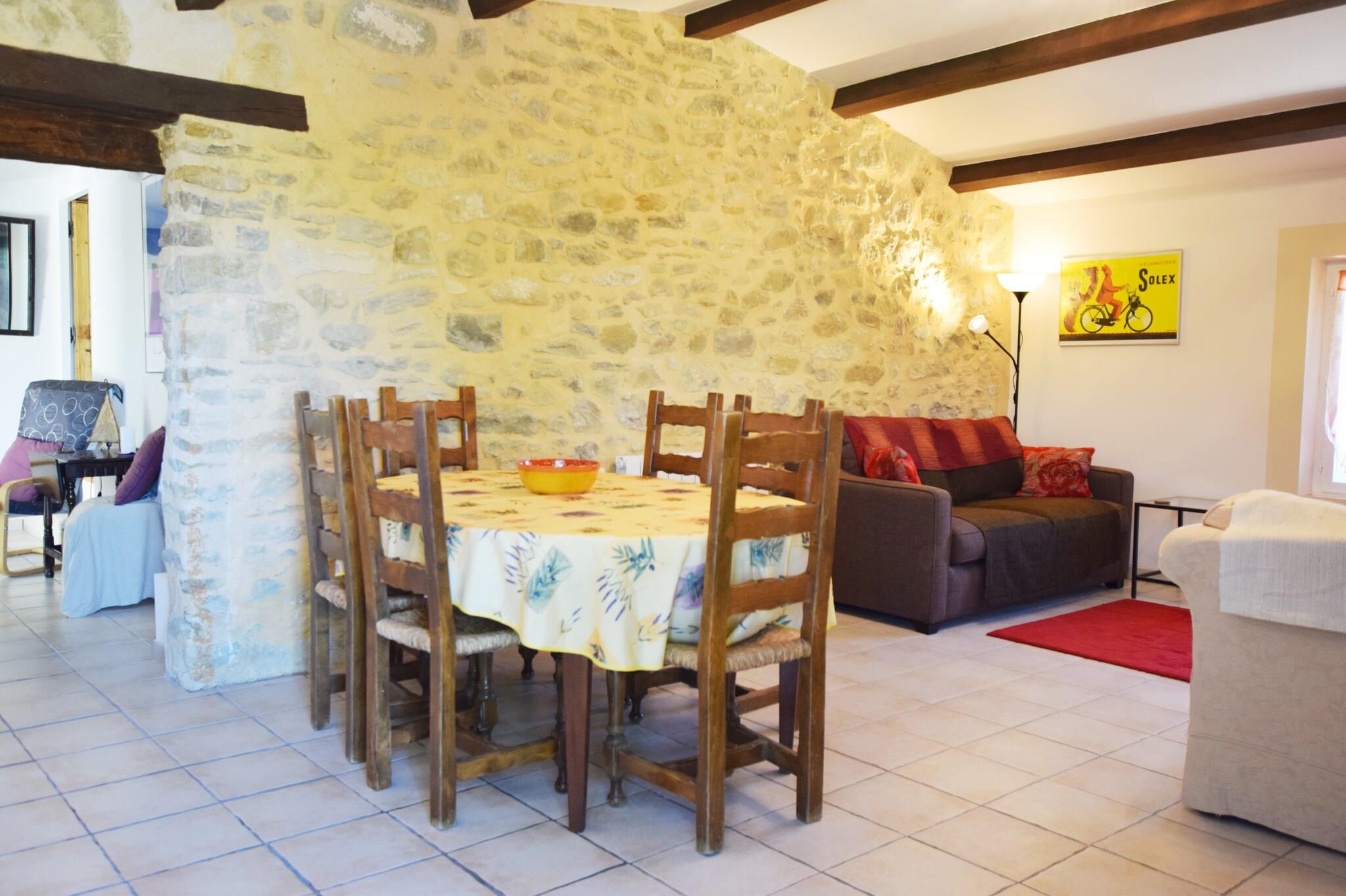 Kleine Domäne mit charakteristischen Stein Mas, das komplett mit drei charmanten Steinhütten renoviert, jedes mit seiner eigenen Terrasse und einem gemeinsamen Pool.Diese Hütte, geeignet für 4, befindet sich im ersten Stock über eine Steintreppe führt zu der erhöhten Terrasse mit der gite.Uitkijkend den Eingang zum Garten und den Pool, den Sie hier kann ein Glas Rosé schlürfen die Ruhe und schöne omgeving. Lust auf ein wenig Abkühlung und einen Sprung in den Pool? Das ist möglich! Auf dem großen Landgut finden Sie einen herrlichen Pool, den Sie mit den Gästen der anderen Häuschen teilen. Die sehr freundlichen und hilfsbereiten Eigentümer wohnen, zusammen mit ihrem Hund, ihren Katzen und Eseln auf dem gleichen Grundstück, sind aber sehr diskret. Wenn Sie wünschen, können Sie Ihnen Tipps zu allen tollen Aktivitäten und Dörfern in der Nähe geben und Sie mit dieser sonnenverwöhnten Region bekannt machen. Pont de Barret ist ein schönes typisch Französisch Dorf im sonnigen Region La Drome. Sie können hier für die notwendigen grundlegenden Notwendigkeiten gehen. In unmittelbarer Nähe finden Sie malerische Dörfer und Städte wie Dieulefit, Sauo, Rochebaudin, Crest, Die und Montelimar, diese Stadt ist weltweit bekannt als die Stadt die Nougat!