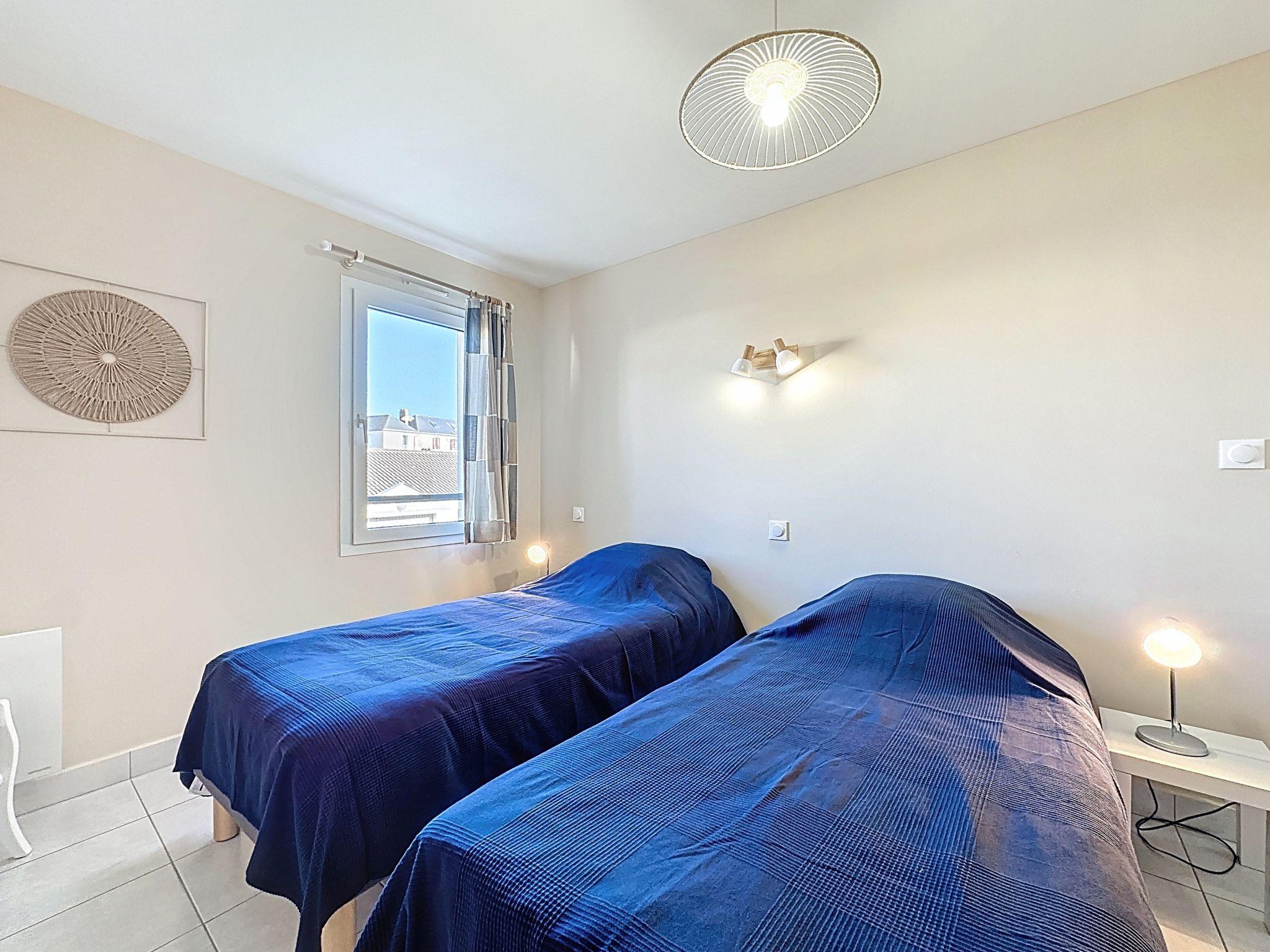 "Le Cabestan - Appt n°5", 3-Zimmer-Wohnung 60 m2 im 1. Stock. Schön und modern eingerichtet: Wohn-/Esszimmer mit TV (Flachbildschirm). 1 Zimmer mit 1 franz. Bett (1 x 160 cm, Länge 200 cm). 1 Zimmer mit 2 Betten (90 cm, Länge 190 cm). Küche (Backofen, Geschirrspüler, 3 Induktionskochplatten, Toaster, Wasserkocher, Mikrowelle, elektrische Kaffeemaschine, Kapseln für die Kaffeemaschine (Nespresso) extra). Dusche, sep. WC. E-Heizung. Balkon 10 m2, Südlage. Balkonmöbel, Liegestühle (2). Zur Verfügung: Waschmaschine, Kinderhochstuhl, Babybett, Haartrockner. Internet (WLAN, gratis). Parkplatz Nr. 2 (eingezäunt, 1 Auto). Bitte beachten: Nichtraucher-Unterkunft. Rauchmelder. Inserat einer Privatperson nach Artikel 155, IV, CGI. 441310013819A