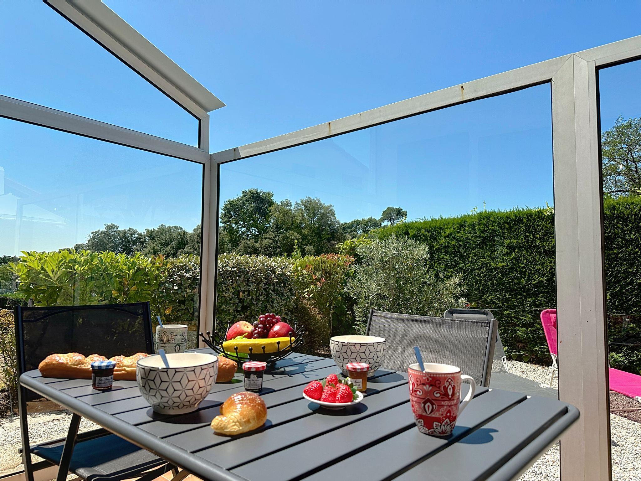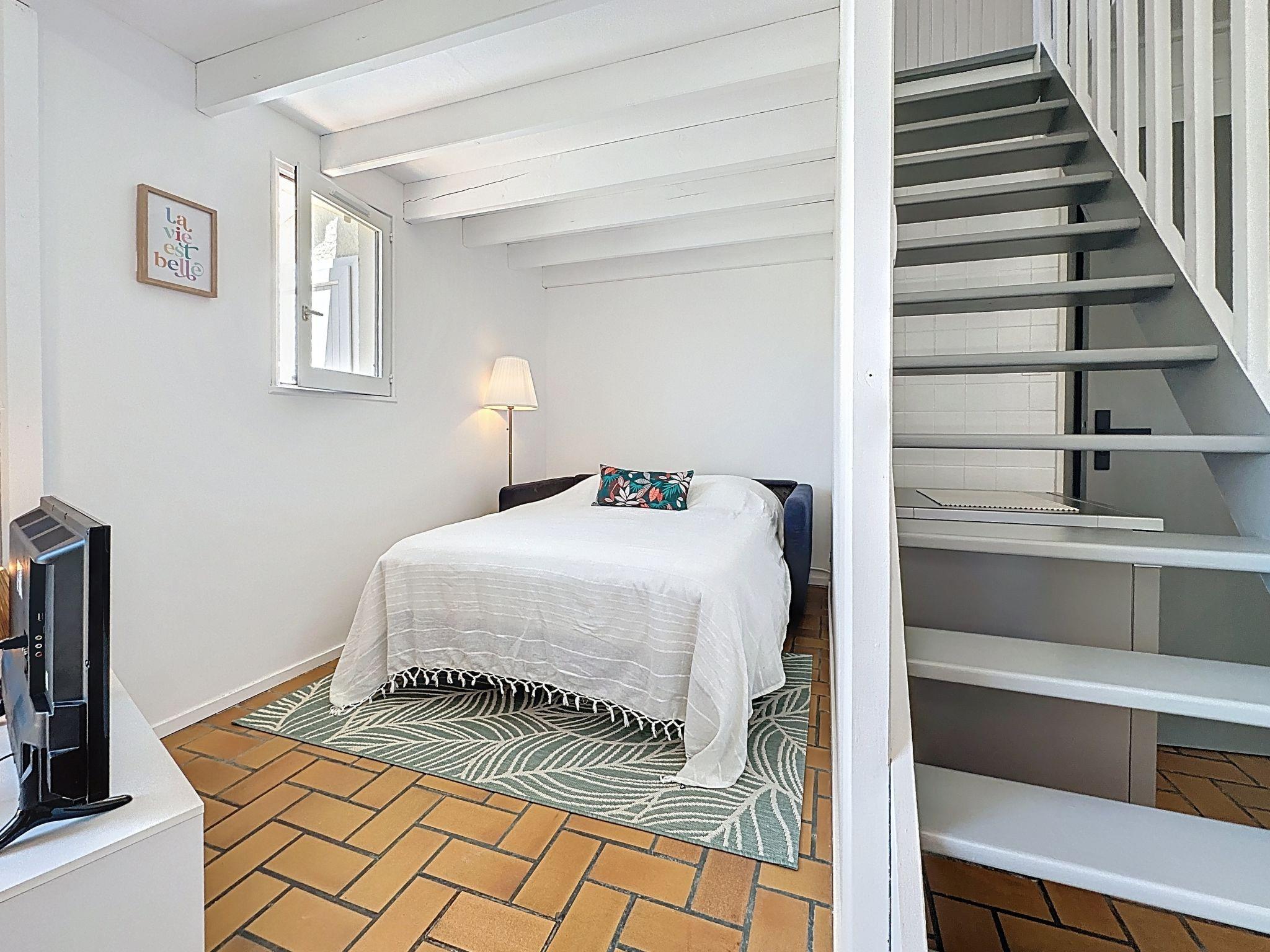 "Ker Ch'ti", 2-Zimmer-Reihenhaus 35 m2 auf 2 Stockwerken, Westlage. Renoviert im Jahre 2025, modern eingerichtet: Wohn-/Esszimmer mit 1 Doppeldiwanbett (1 x 160 cm, Länge 200 cm), TV (Flachbildschirm). Ausgang zur Terrasse, Richtung Westen. Offene Küche (Backofen, Geschirrspüler, 4 Induktionskochplatten, Toaster, Wasserkocher, Mikrowelle, Tiefkühler, elektrische Kaffeemaschine). Dusche/WC. Obergeschoss: (steile Treppe) abgeschrägte, offene Galerie mit 2 Betten (70 cm, Länge 190 cm). E-Heizung. Terrasse 10 m2, Westlage, kleiner Garten. Terrassenmöbel, Gartengrill, Liegestühle (4). Seitliche Sicht auf das Meer. Zur Verfügung: Waschmaschine, Bügeleisen, Haartrockner. Internet (WLAN, gratis). Parkplatz Nr. 41 (1 Auto). Bitte beachten: Nichtraucher-Haus. Maximal 1 kleines Haustier/Hund erlaubt. Rauchmelder. Inserat eines gewerblichen Vermieters nach Artikel 155, IV, CGI 44131001262GT