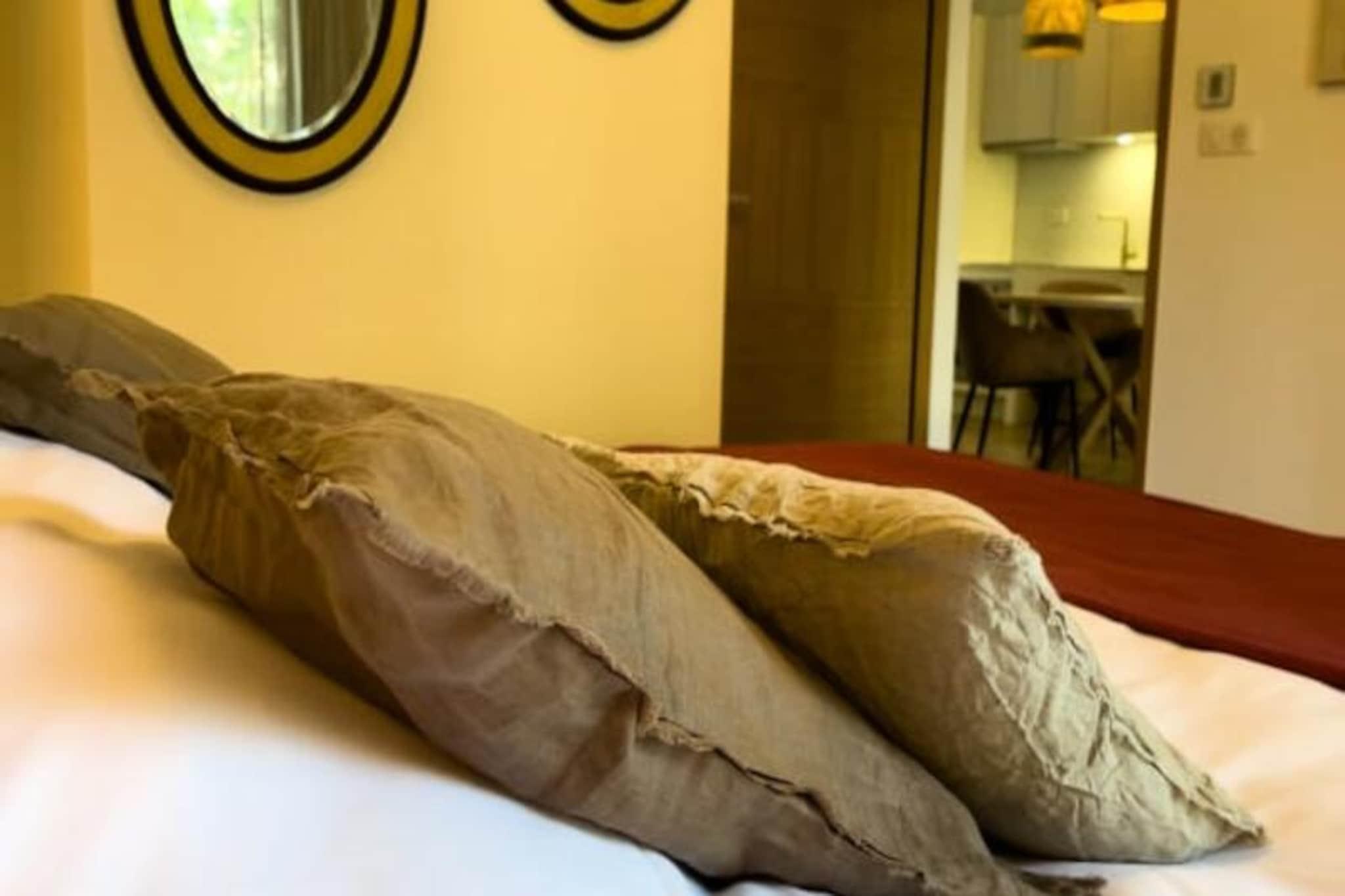 Im Herzen des charmanten Küstenortes Pornichet bietet dieses elegante Apartment mit einem Schlafzimmer einen ruhigen Rückzugsort nur wenige Schritte vom Strand entfernt. Umgeben von üppigen Pinien und malerischen Villen vereint die Unterkunft modernen Komfort mit zeitlosem Küstencharme. Ob romantischer Kurzurlaub oder erholsame Auszeit – die friedliche Atmosphäre und die atemberaubende Aussicht schaffen den perfekten Rahmen zum Entspannen. Genießen Sie von Ihrem privaten Balkon aus den Blick auf die umliegenden Gärten und die charakteristische Architektur dieses lebendigen Ortes. Dieses Apartment im Erdgeschoss ist durchdacht gestaltet und bietet Platz für bis zu vier Gäste. Das Schlafzimmer verfügt über ein eigenes Duschbad und einen Balkon, während das Wohnzimmer zusätzliche Schlafmöglichkeiten bietet. Die voll ausgestattete Küche lässt keine Wünsche offen: Backofen, Mikrowelle, Geschirrspüler und Kochutensilien stehen Ihnen zur Verfügung. Eine Klimaanlage sorgt ganzjährig für angenehme Temperaturen, und WLAN ist im gesamten Apartment verfügbar. Barrierefreiheit wird großgeschrieben: Das Apartment ist rollstuhlgerecht und ebenerdig zugänglich. Zusätzliche Annehmlichkeiten wie ein Waschtrockner und optionale Services wie Parkplatz, Spa-Zugang und Massagen runden Ihren Aufenthalt ab. Das Apartment liegt nur zwei Gehminuten vom Strand entfernt und ist somit ideal gelegen, um den lebhaften Yachthafen, das Casino und die berühmten Sehenswürdigkeiten von Pornichet zu erkunden.