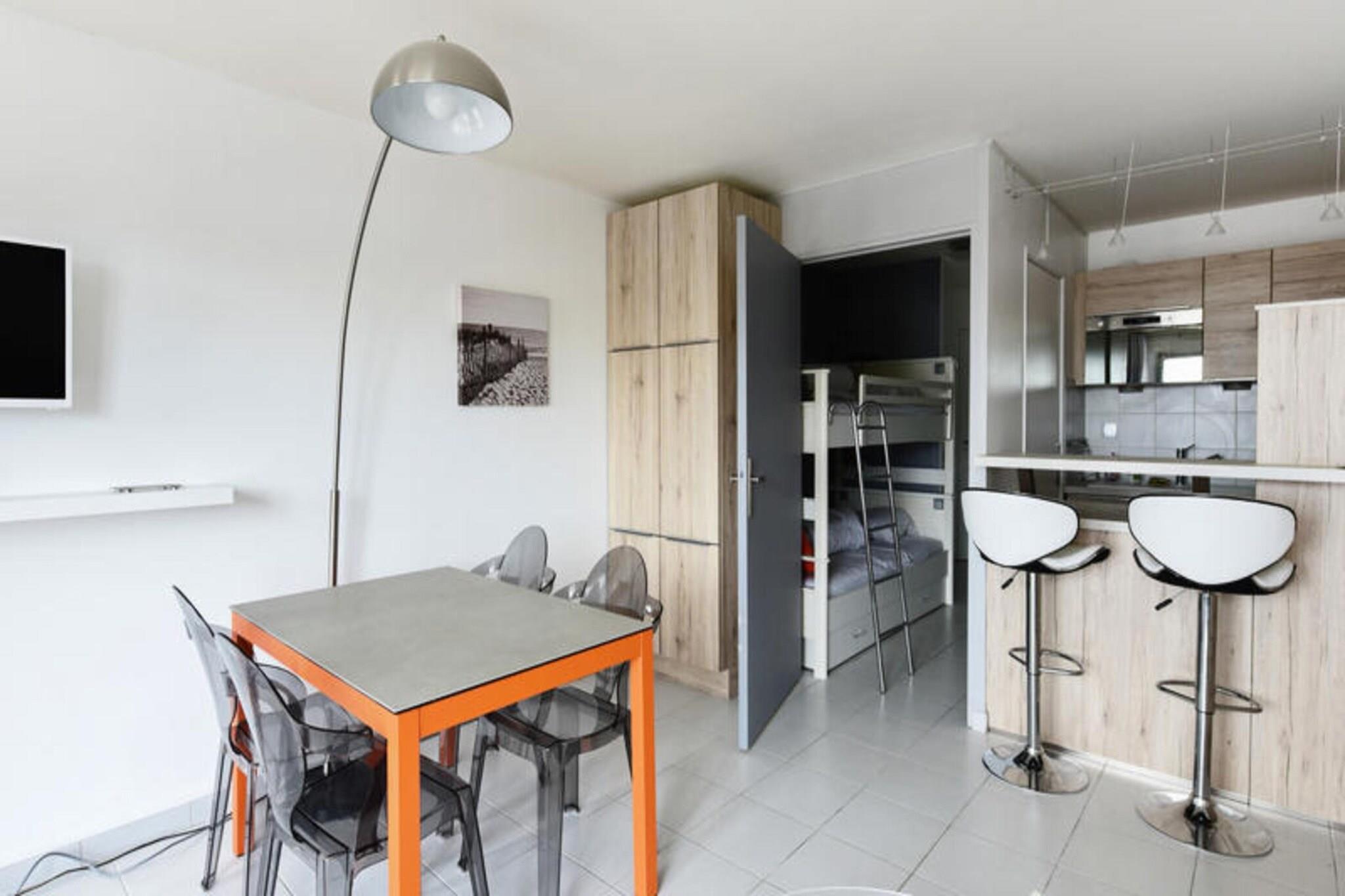 Dieses charmante Studio-Apartment in Pornichet bietet einen perfekten R?ckzugsort f?r bis zu vier Personen. Es verf?gt ?ber ein gem?tliches Wohnzimmer mit einem Doppelschlafsofa, einen Kabinenbereich mit Etagenbetten und ein modernes Badezimmer mit Badewanne und Dusche sowie ein separates WC. Die Unterkunft ist haustierfreundlich und erlaubt gegen eine zus?tzliche Geb?hr Ihre pelzigen Begleiter. G?ste genie?en den Komfort eines Balkons mit Meerblick, auf dem sie sich entspannen und die wundersch?ne Umgebung genie?en k?nnen. Das Studio verf?gt ?ber wesentliche Annehmlichkeiten wie einen Fernseher, WLAN (gegen Aufpreis verf?gbar) sowie Bettw?sche und Handt?cher (gegen Aufpreis erh?ltlich). Die Wohnung liegt ideal in der N?he von drei Sandstr?nden, die zum Schwimmen und Sonnenbaden sowie zu erholsamen Spazierg?ngen entlang des K?stenwegs einladen. Erkunden Sie das lebendige lokale Erbe, kaufen Sie auf dem Markt ein oder genie?en Sie einen Tag auf der Pferderennbahn oder im Casino. F?r Entspannungssuchende gibt es in der N?he zwei Thalassotherapie-Zentren, die verj?ngende Behandlungen anbieten. Dar?ber hinaus bieten Outdoor-Aktivit?ten wie Wassersport und familienfreundliche Ausfl?ge reichlich Unterhaltungsm?glichkeiten. Im Inneren ist das Apartment mit einer voll funktionsf?higen K?che ausgestattet, in der die G?ste ihre eigenen Mahlzeiten zubereiten k?nnen. Die K?che verf?gt ?ber die wichtigsten Ger?te f?r einen angenehmen Aufenthalt. F?r gem?tliche Mahlzeiten steht Ihnen ein Esstisch mit vier St?hlen zur Verf?gung. Das Apartment verf?gt au?erdem ?ber einen privaten Balkon mit Sitzgelegenheiten, ideal, um das sonnige Wetter und den Meerblick zu genie?en.