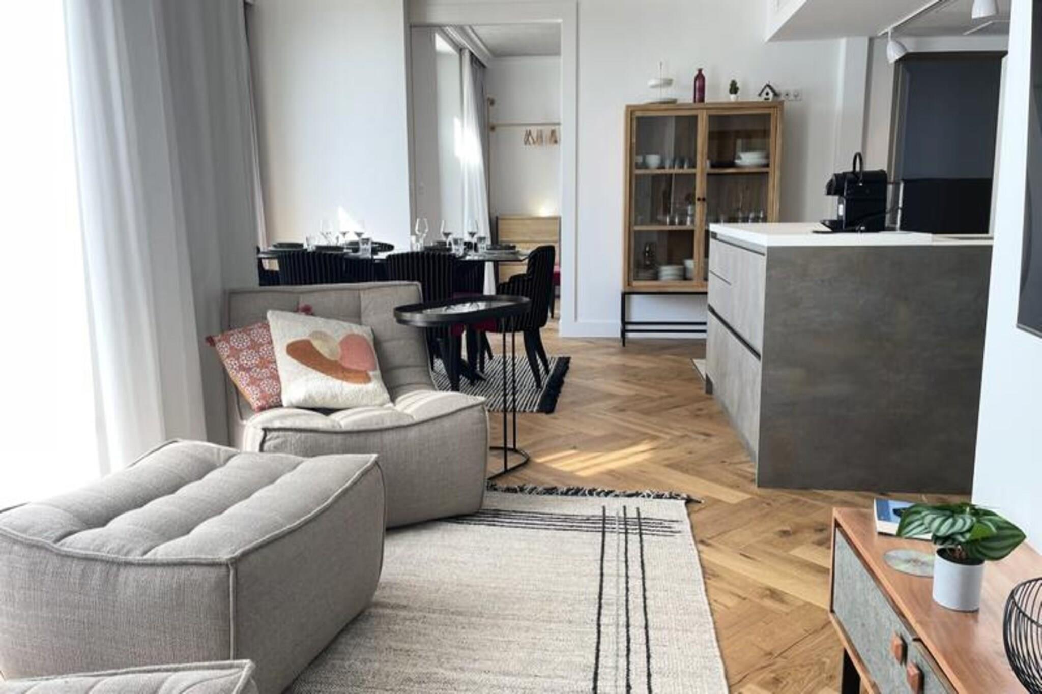 Dieses T4-Apartment bietet hotel?hnlichen Komfort mit einem ger?umigen, klimatisierten Innenraum und einem wundersch?nen Meerblick. Es befindet sich im zweiten Stock eines jahrhundertealten Geb?udes und verf?gt ?ber drei Schlafzimmer, zwei davon mit Balkon mit Meerblick, und eine Master-Suite mit eigenem Bad. Das Apartment bietet Platz f?r bis zu sechs Personen und ist mit bequemen Betten und hochwertiger Bettw?sche ausgestattet. Ein Waschtrockner und WLAN sind vorhanden. Haustiere sind willkommen. Pers?nlicher Service sorgt f?r einen angenehmen Aufenthalt. Das Apartment liegt in Pornichet, einem lebhaften, familienfreundlichen Badeort, in der N?he von Attraktionen wie dem Strand, dem Yachthafen und dem Casino. Die Gegend bietet auch lokale Caf?s, Gesch?fte und lebhafte Viertel. Erkunden Sie nahegelegene Orte wie die Salzwiesen von Gu?rande, den Regionalpark Bri?re und die Schiffbaustadt Saint-Nazaire. Auch der Golf von Morbihan und Le Croisic sind f?r Tagesausfl?ge gut erreichbar. Das Apartment verf?gt ?ber eine voll ausgestattete K?che mit Mikrowelle, Backofen, Geschirrsp?ler, K?hlschrank und Gefrierschrank. Ein modernes Badezimmer, Balkone mit Meerblick und Zusatzleistungen wie ein Spa-Hammam, Massageservice und Parkpl?tze (gegen Geb?hr) sorgen f?r einen erholsamen Aufenthalt. Genie?en Sie die perfekte Mischung aus Charme der alten Welt und modernem Komfort.