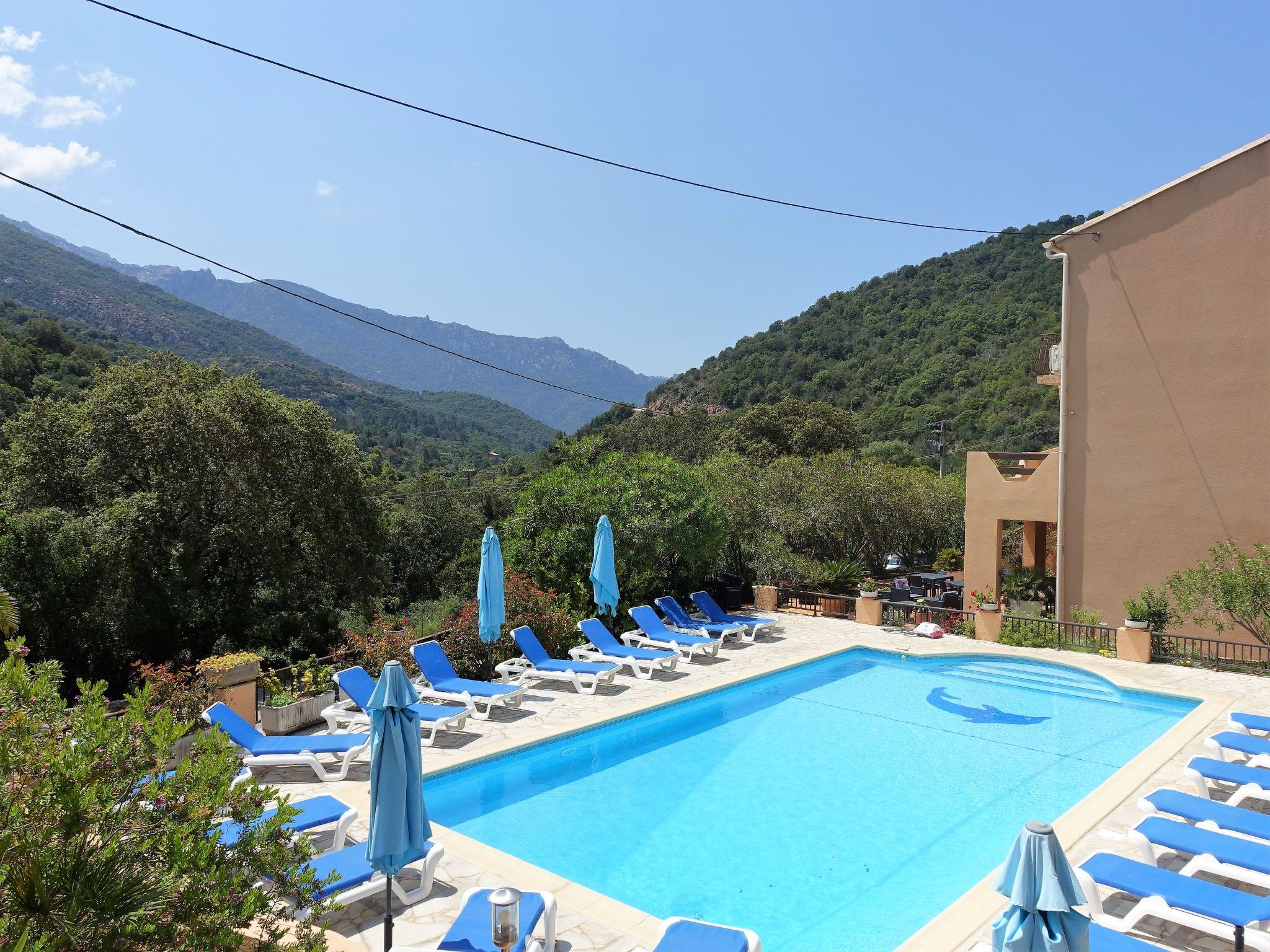Serriera 6 km von Porto: Feriensiedlung "Cabannaccia". Am Ortsrand Serriera, ruhige Lage, 1.5 km vom Meer, 1.5 km vom Strand. Zur Mitbenutzung: Schwimmbad (14 x 8 m, 100 - 130 cm tief, saisonale Verfügbarkeit: 01.Jun. - 30.Okt.). Im Hause: Empfang, Bar, Bistro, Wireless LAN, Einstellraum für Fahrräder, Waschmaschine (zur Mitbenutzung). Brötchenservice und Frühstück (extra). Parkplatz. Einkaufsgeschäft 6 km, Lebensmittelgeschäft 6 km, Restaurant 1.5 km, Bushaltestelle "Porto" 5.7 km, Steinstrand 1.5 km. Bitte beachten: Fahrzeug empfohlen. Babyausstattung (extra). Das Foto ist nur ein Hausbeispiel. Weitere Unterkünfte sind buchbar. Die Ferienanlage "Cabanaccia" setzt sich aus einem Hotel sowie mehreren Gebäuden mit Ferienwohnungen zusammen. Die Gebäude sind über Stufen erreichbar.