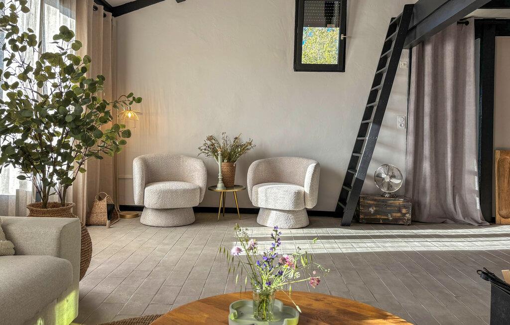 Vom Wohnzimmer aus haben Sie Zugang zur Terrasse, die mit einem Steingrill ausgestattet ist, auf dem Sie im Sommer lokale Spezialitäten zubereiten können. Das Hauptschlafzimmer öffnet sich direkt auf die Terrasse, und das Zwischengeschoss, das vom Wohnzimmer aus zugänglich ist, verfügt über ein Doppelbett für Gäste. Zu den jüngsten Neuerungen gehören ein stilvolles Wohnzimmer mit Holzofen, ein renovierter Flur, eine Dachisolierung und Klimaanlagen in beiden Schlafzimmern. Diese Merkmale sorgen für einen komfortablen Aufenthalt zu jeder Jahreszeit.